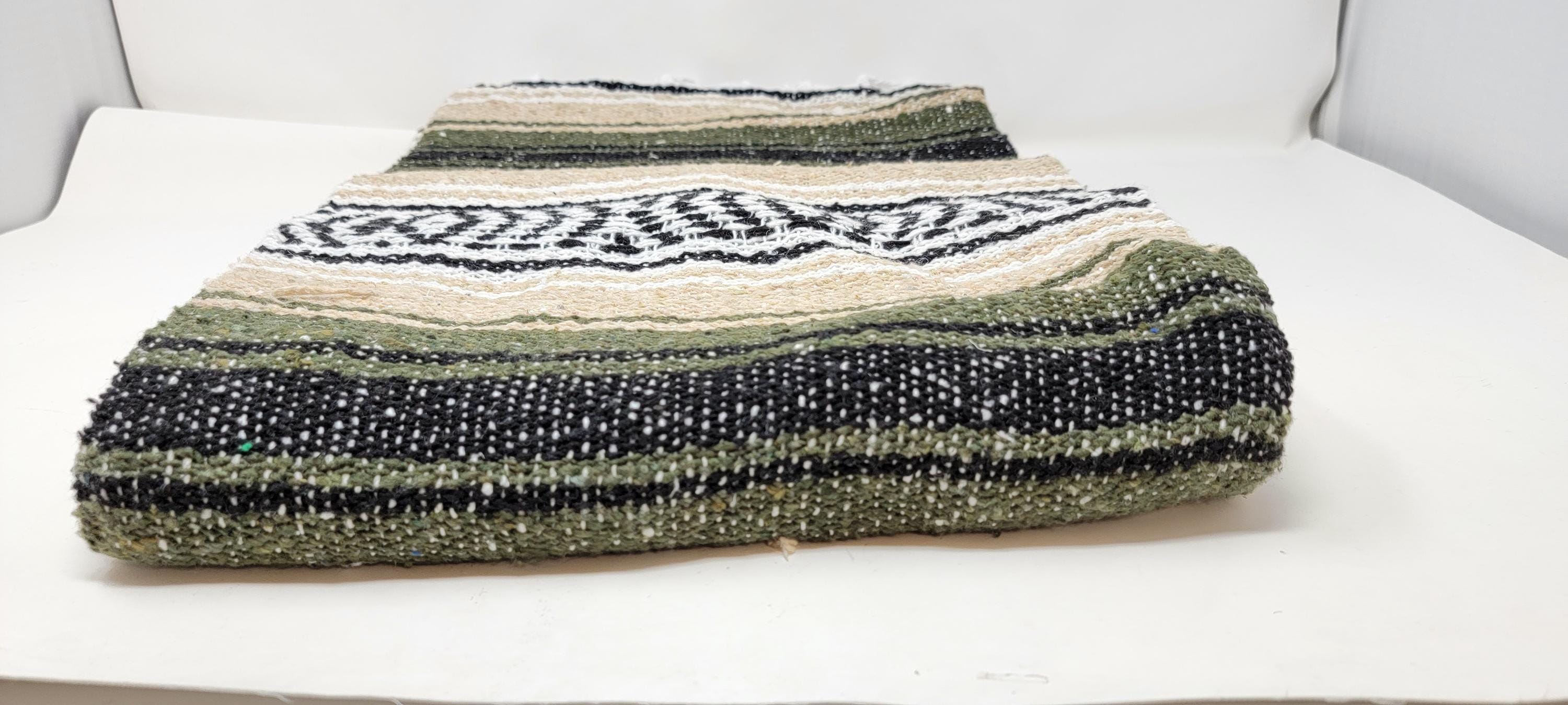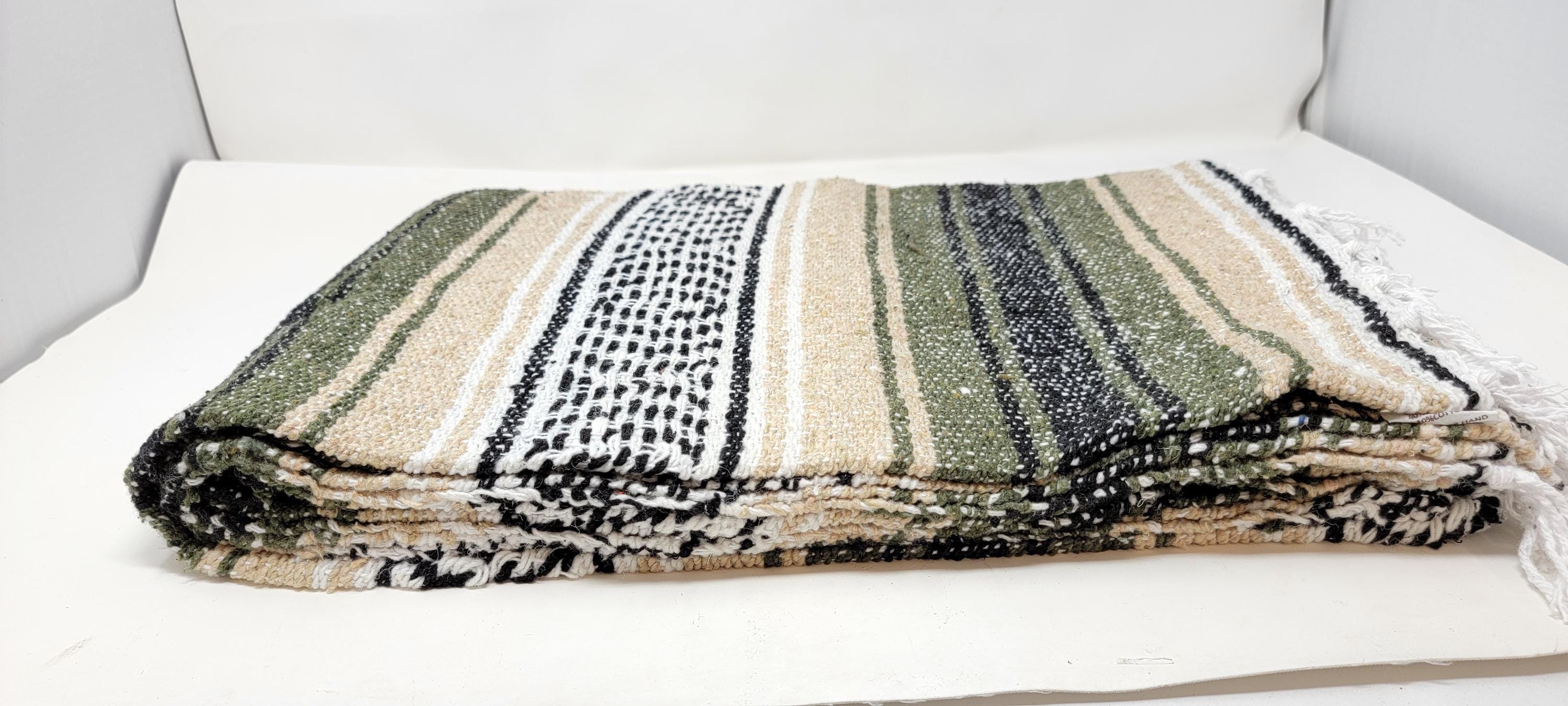 Handloomed Mexican Falsa Blanket: Green, Beige & White Striped Throw (76" x 53")