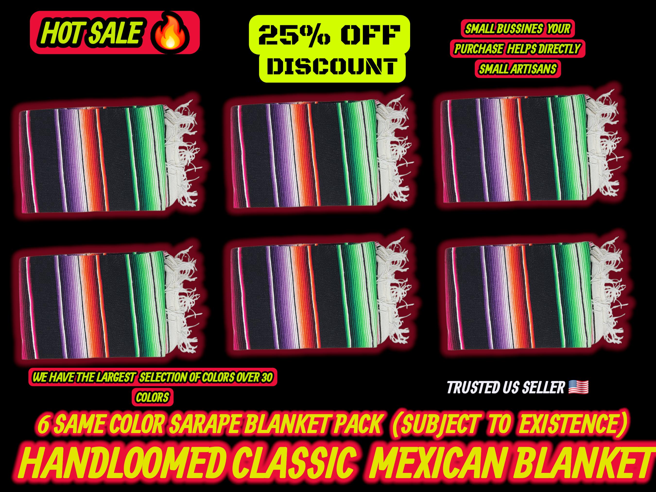Bring the vibrant spirit of Mexico into your home with this authentic, hand-woven serape (or zarape) blanket. Perfect as a cozy throw, a stunning wall hanging, a unique picnic blanket, or even a stylish rug, these blankets are known for their rich colors, intricate stripe patterns, and exceptional durability. Each blanket tells a story, crafted by skilled artisans using traditional weaving techniques.