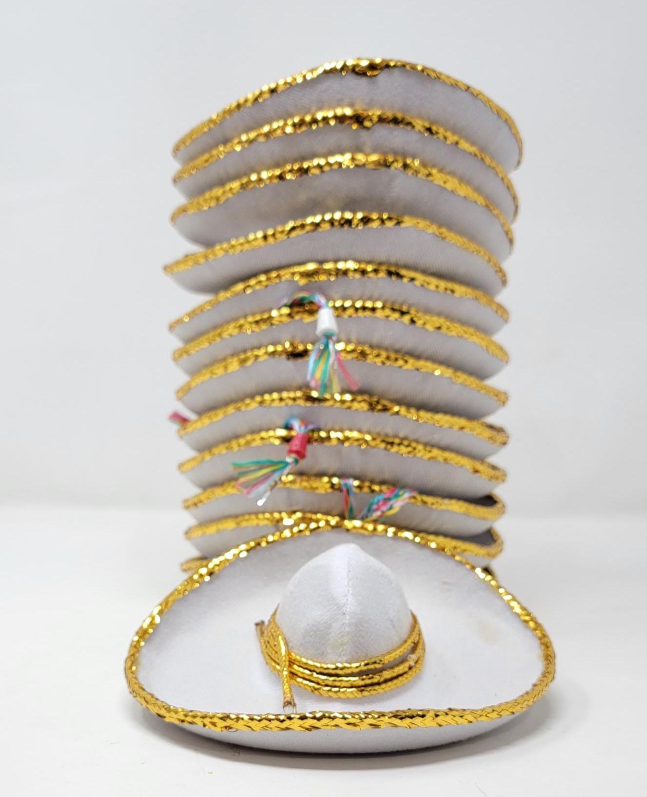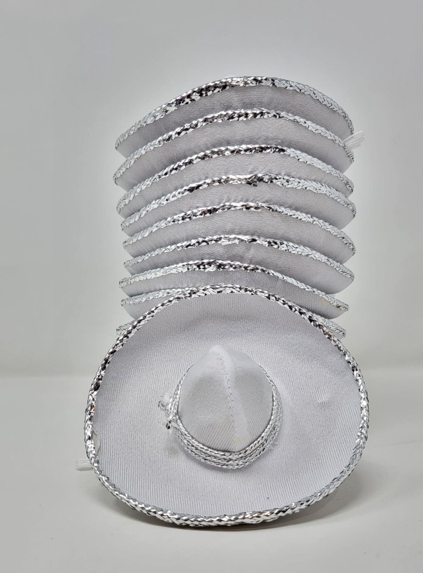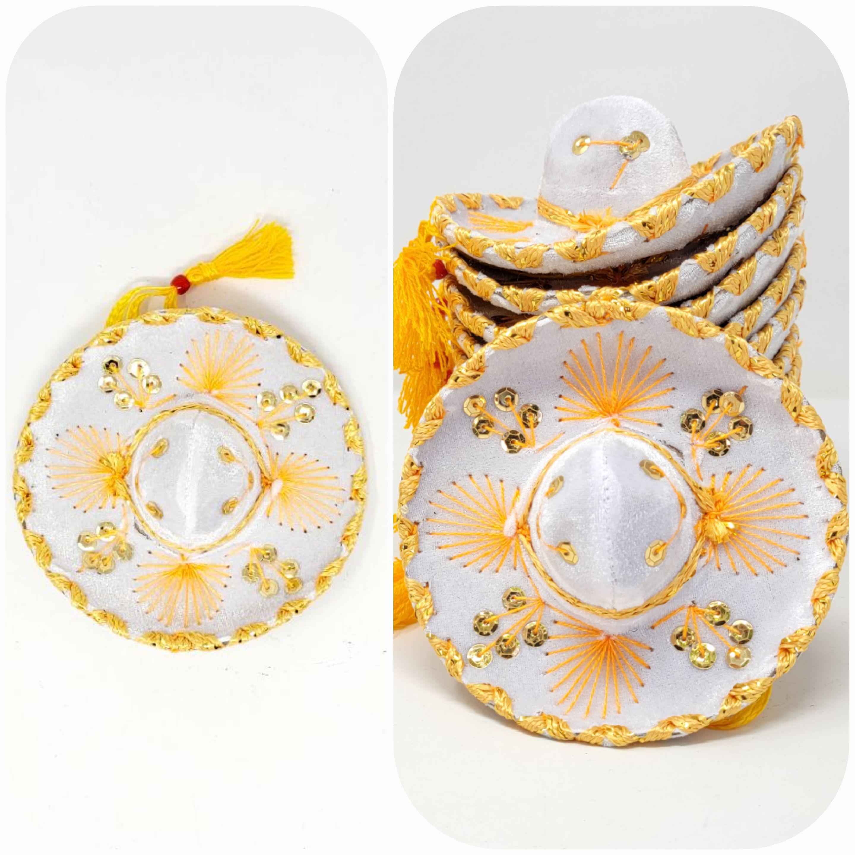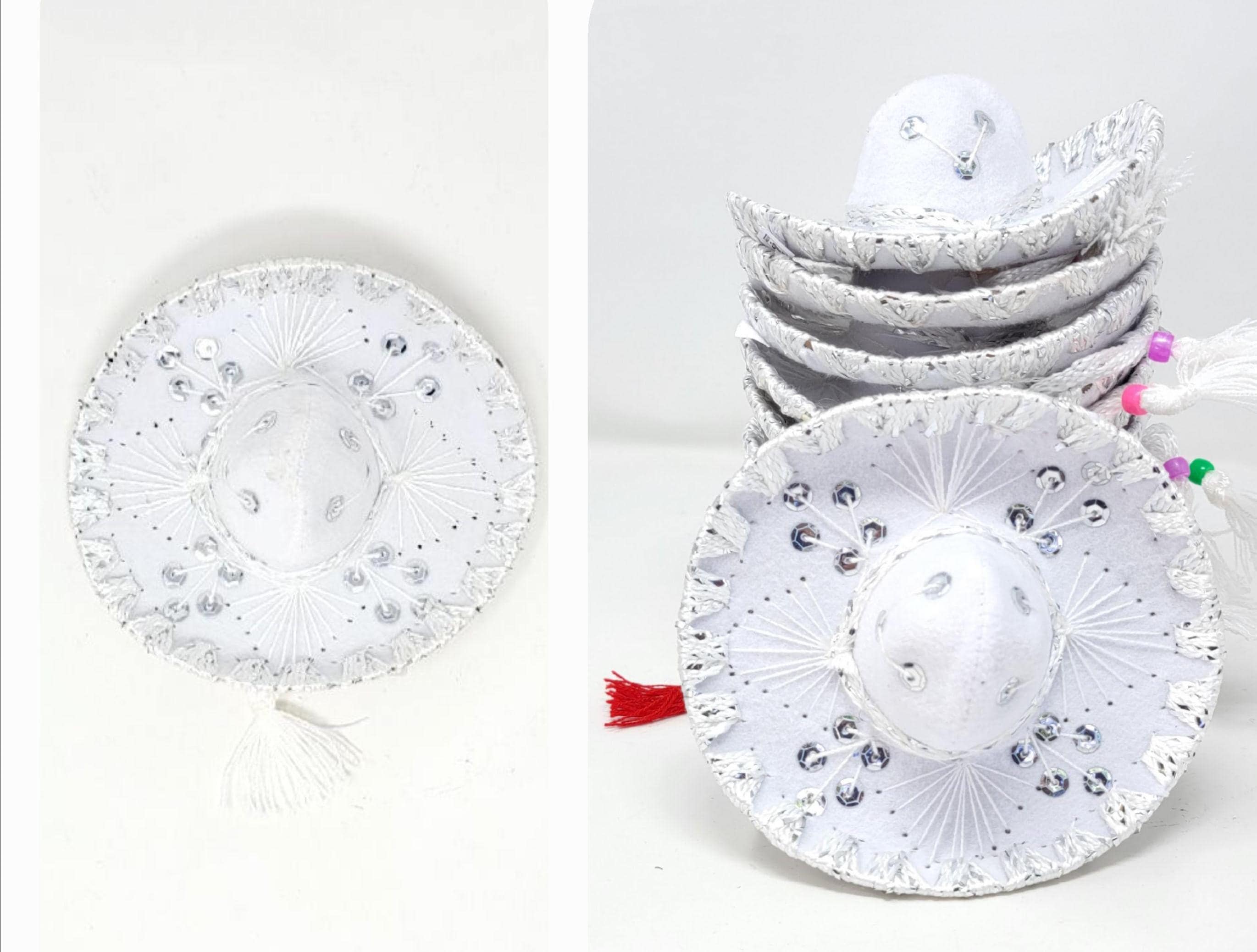 Mini hats for fiesta charro white little hat , this fiesta hat measures 6 inches in diameter . traditional mexican charro sombrero