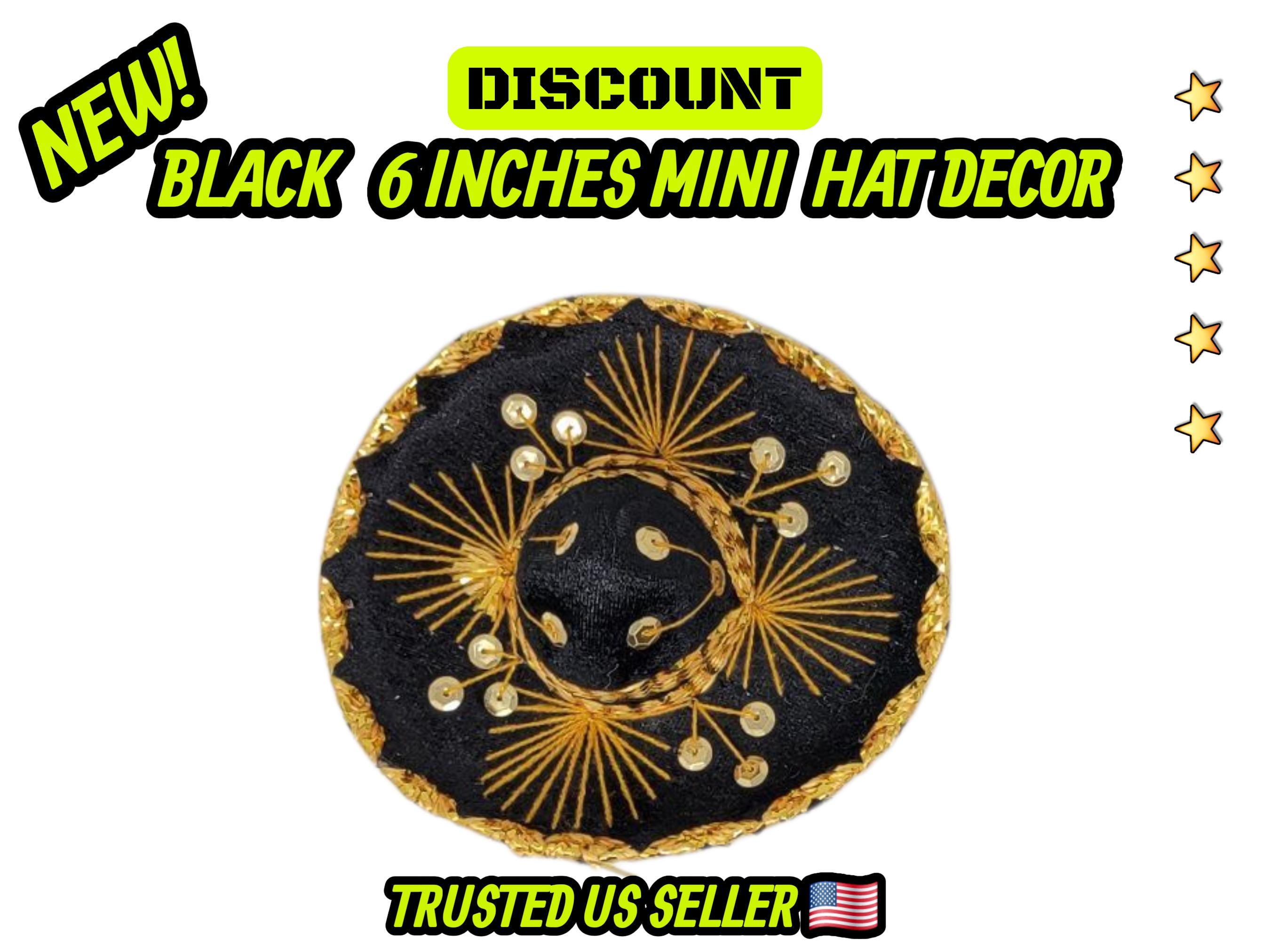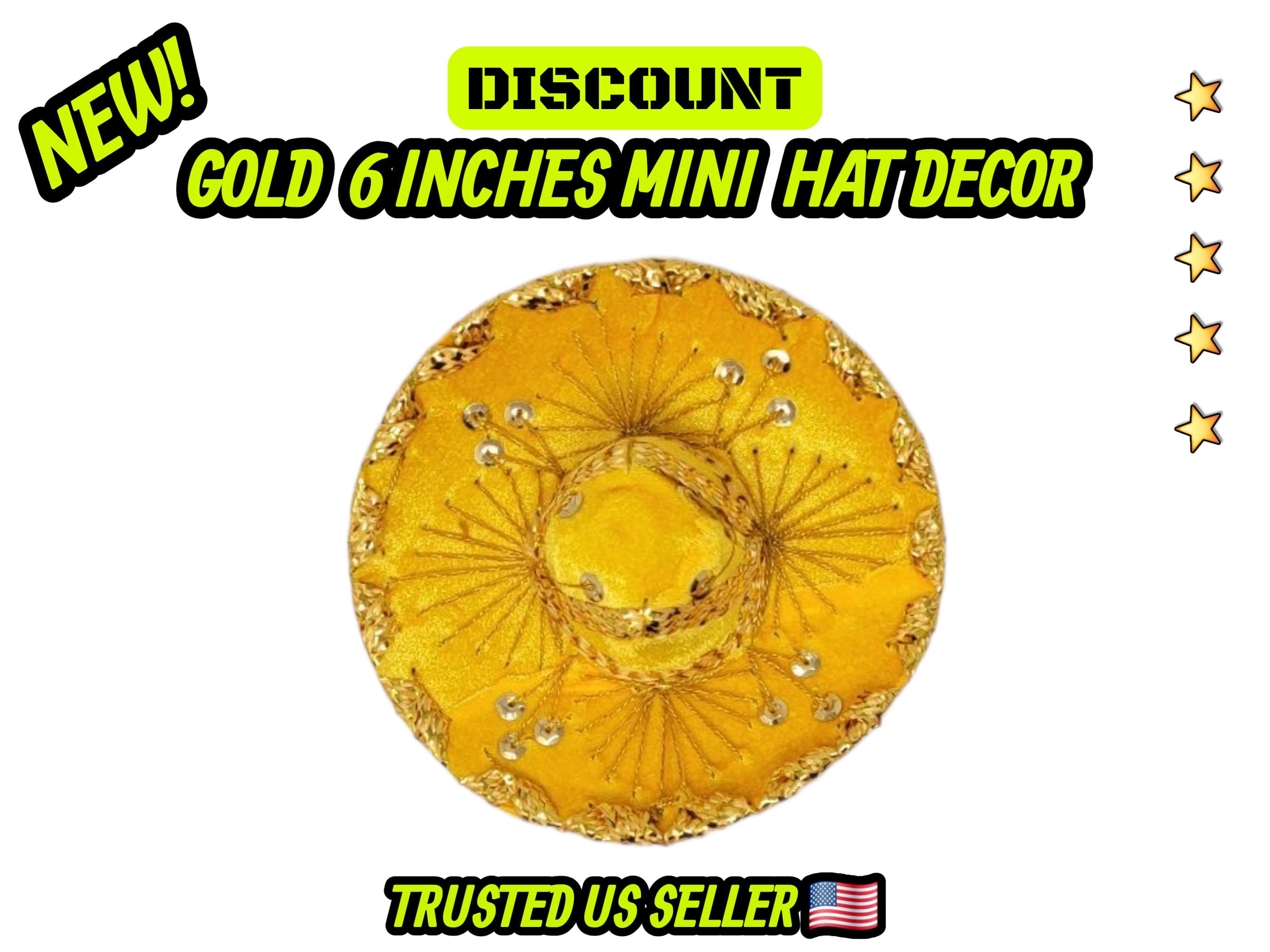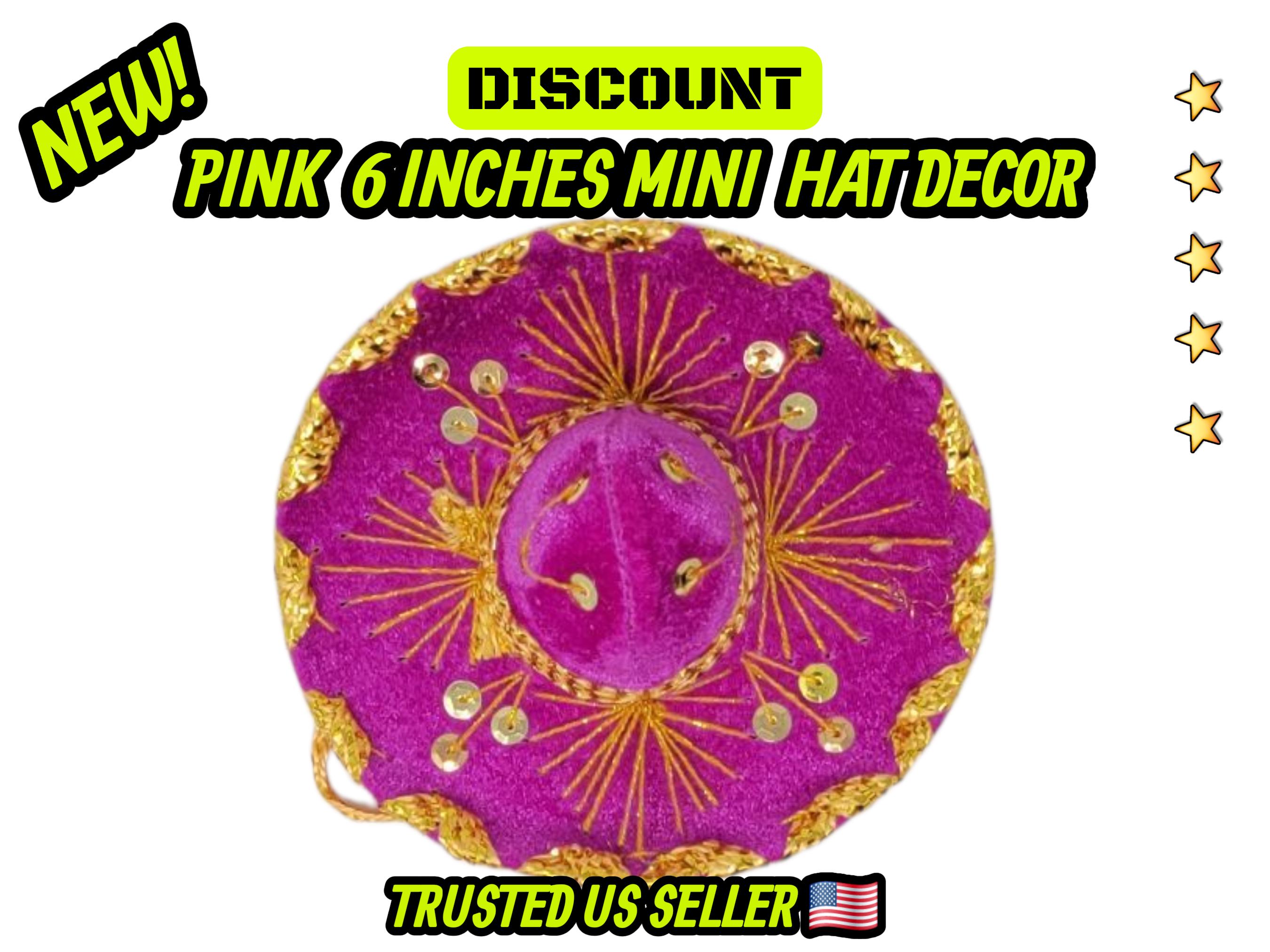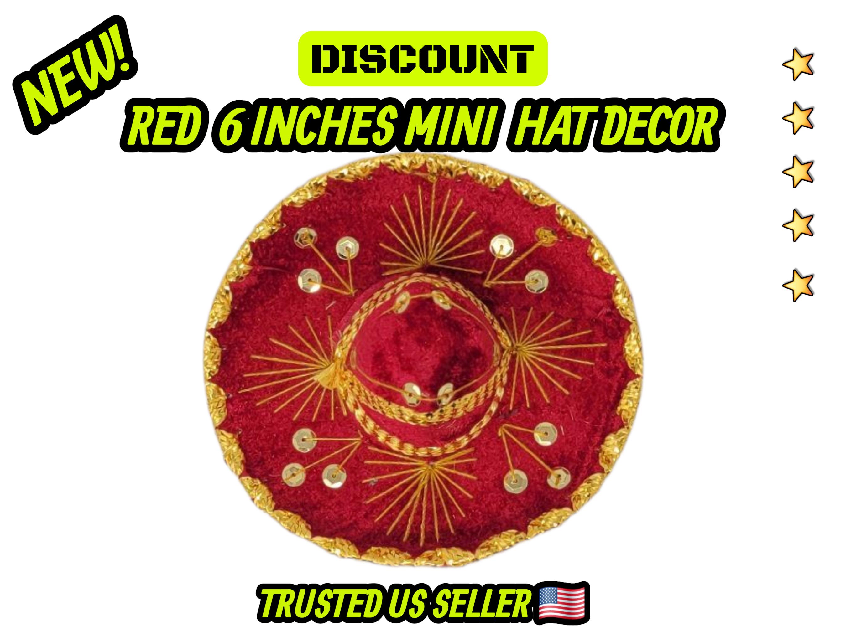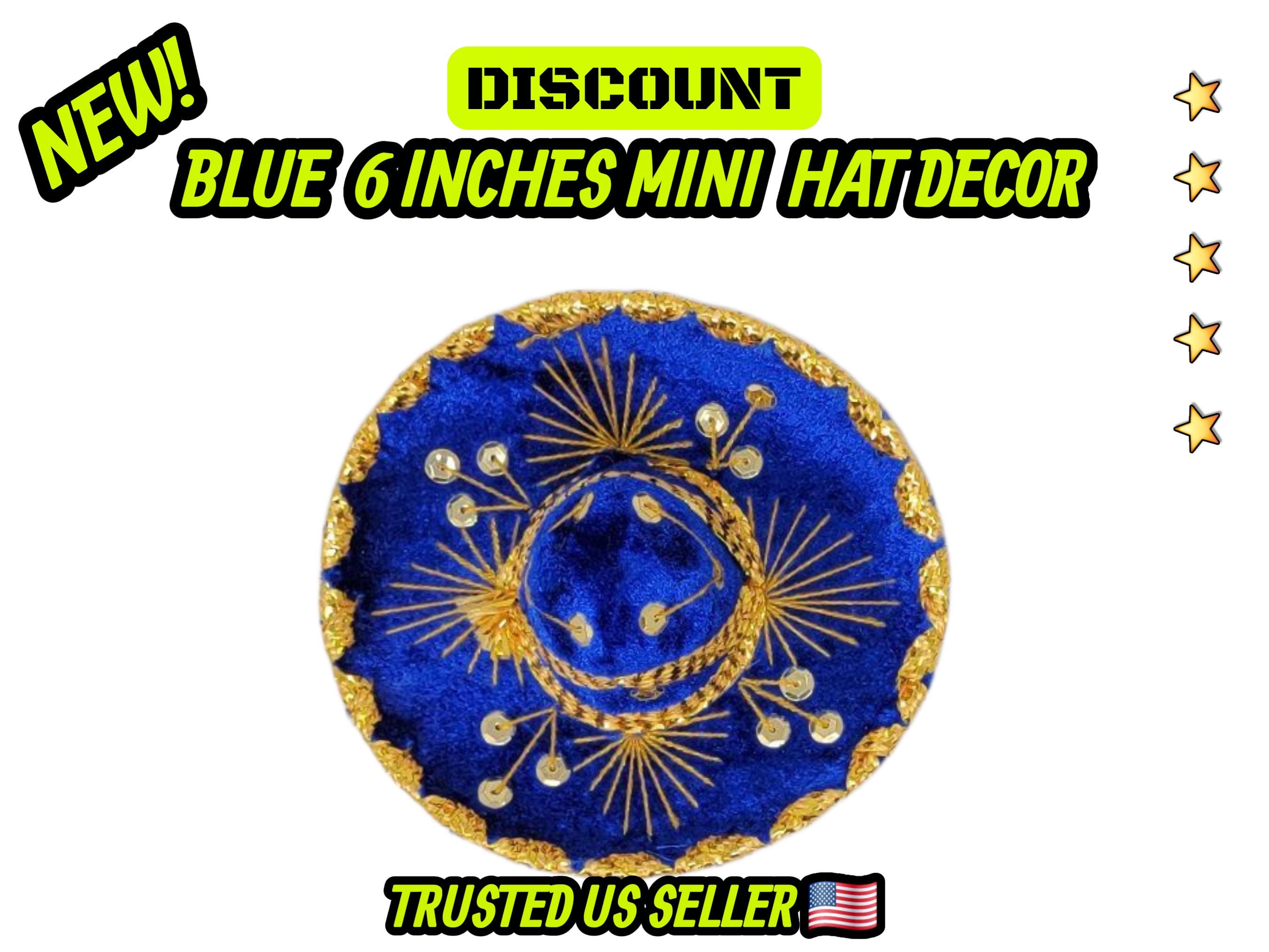 m selling 6 fiesta assorted sombreros charro hat assorted colors , these fiesta hats measures 5 inches in diameter . made in velvet and decorated with gold sequin sequence traditional mexican charro sombrero