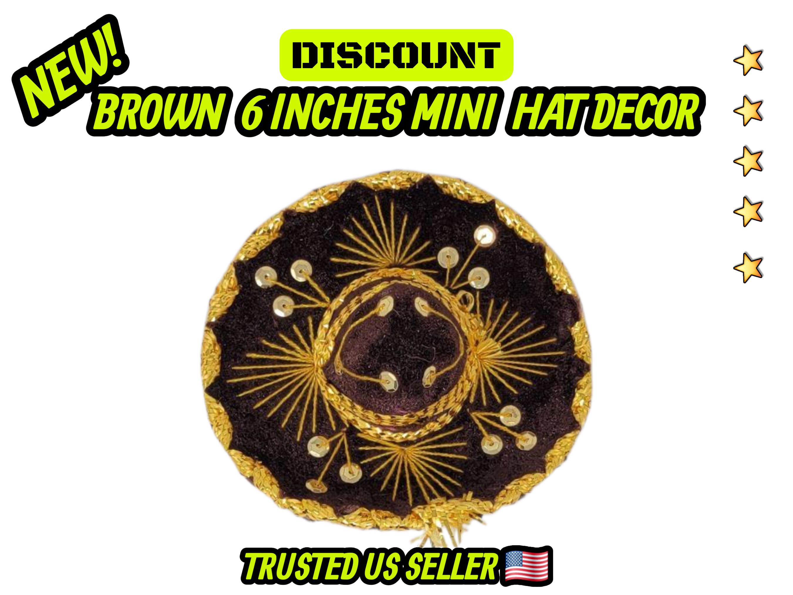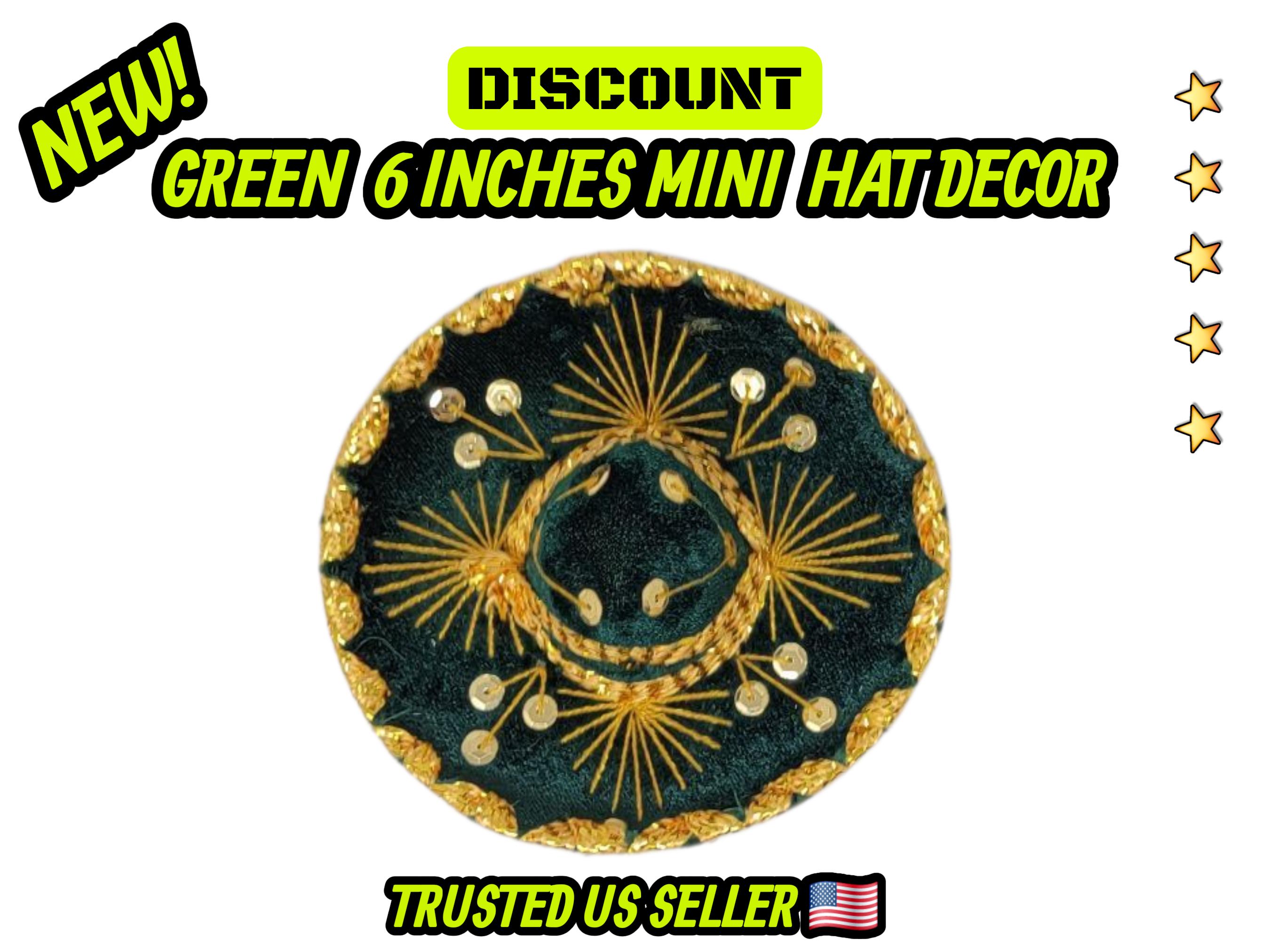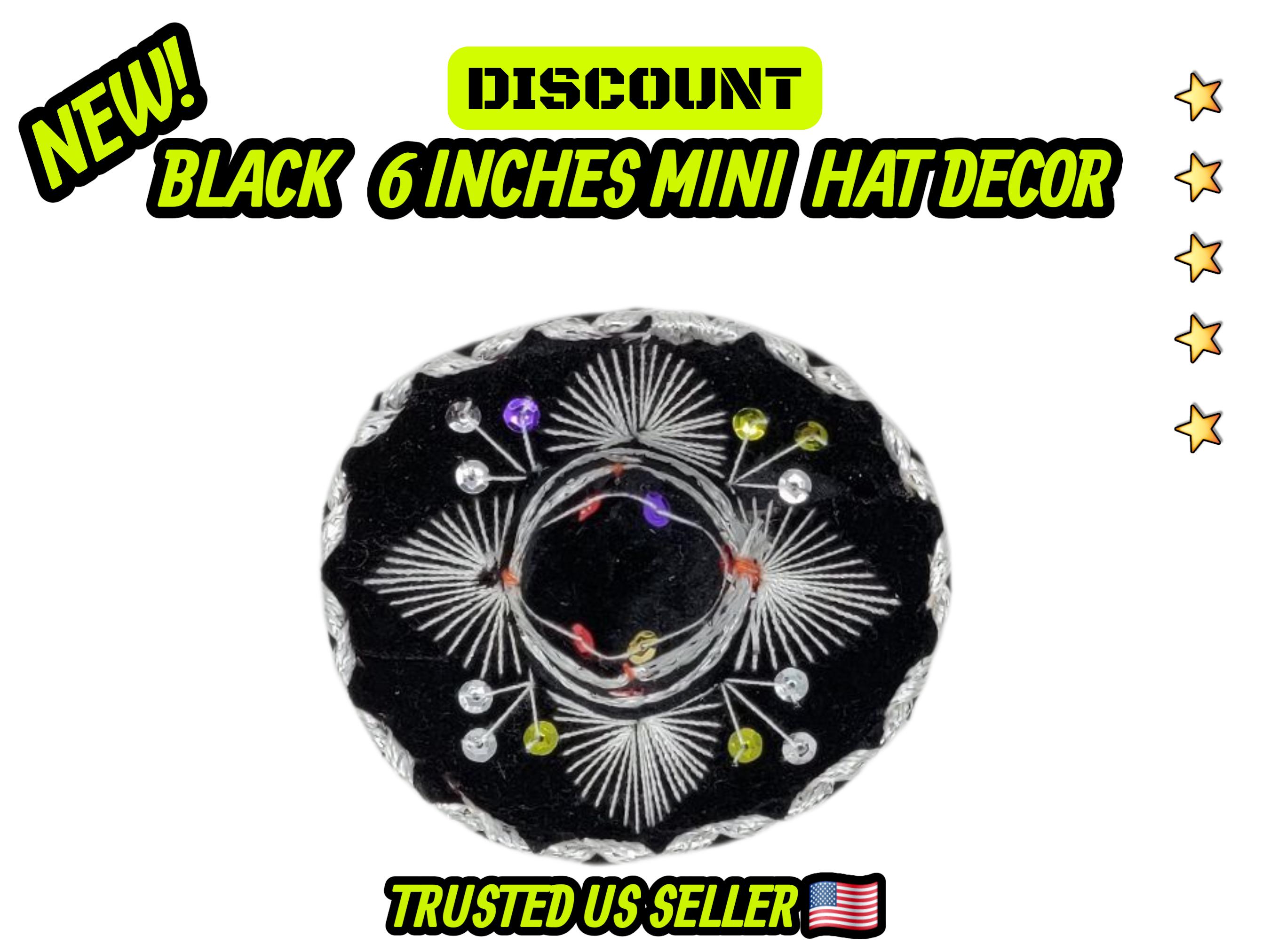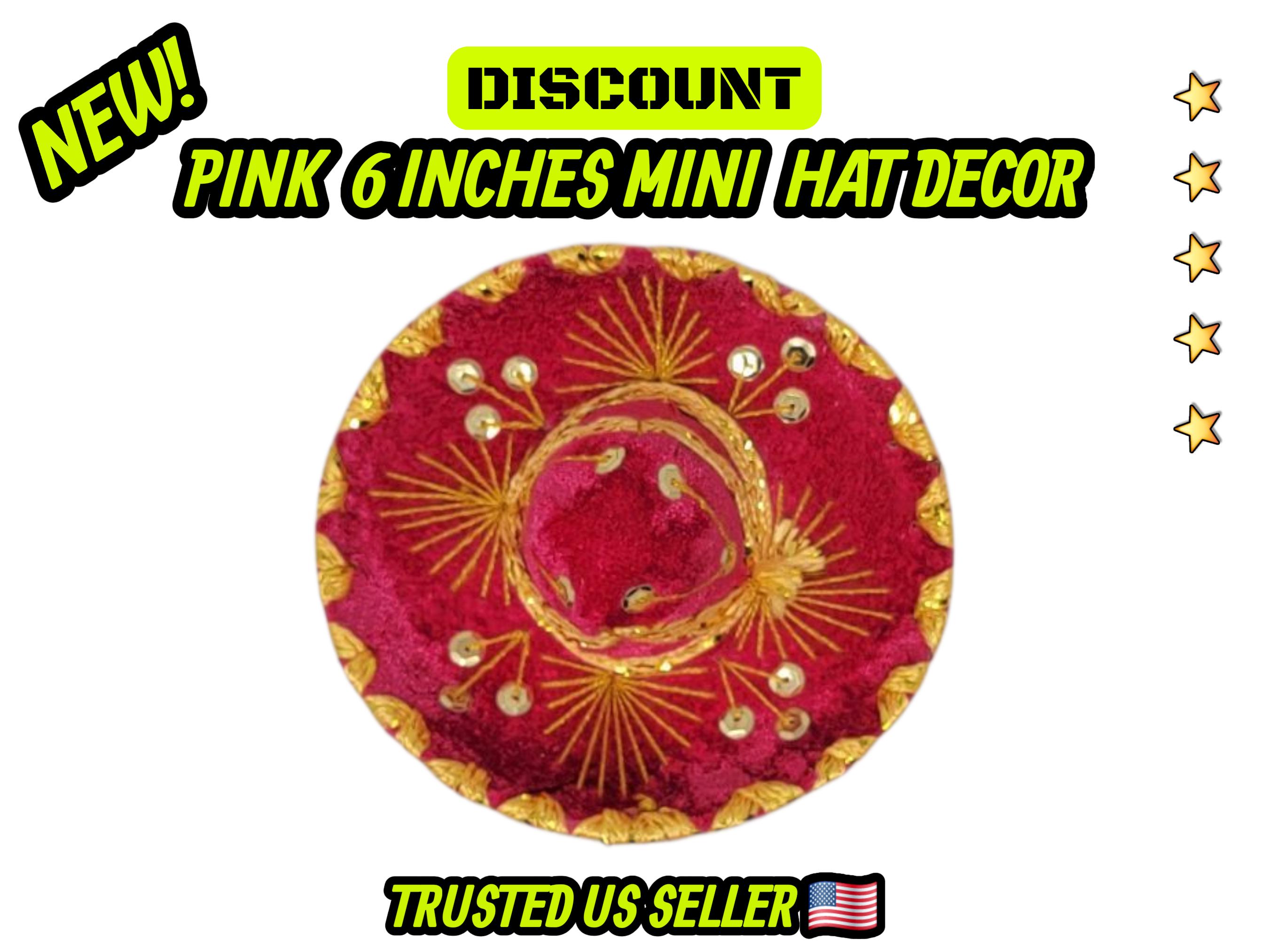 m selling 6 fiesta assorted sombreros charro hat assorted colors , these fiesta hats measures 5 inches in diameter . made in velvet and decorated with gold sequin sequence traditional mexican charro sombrero