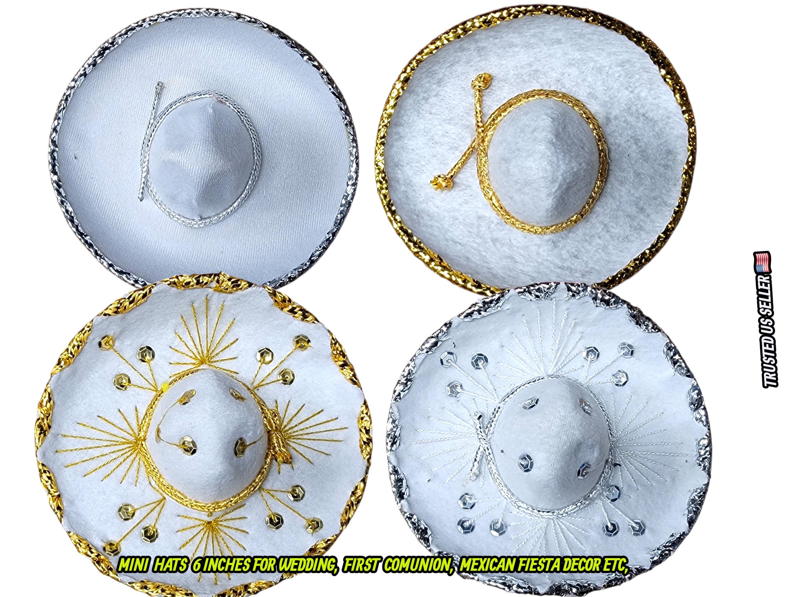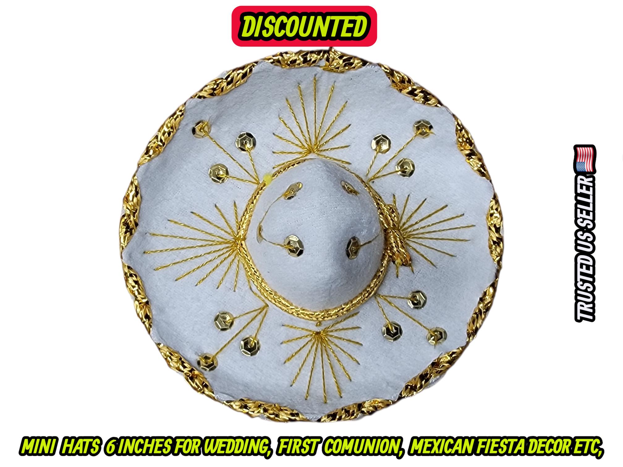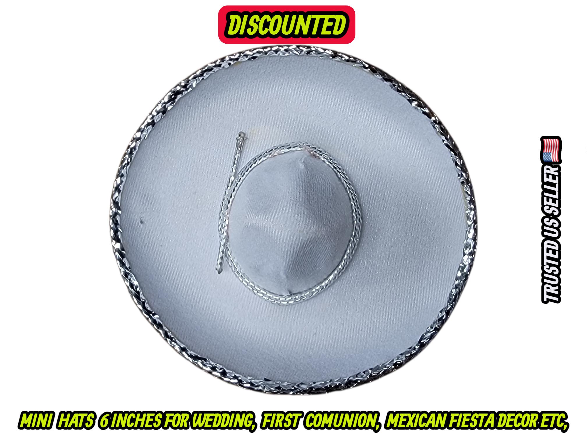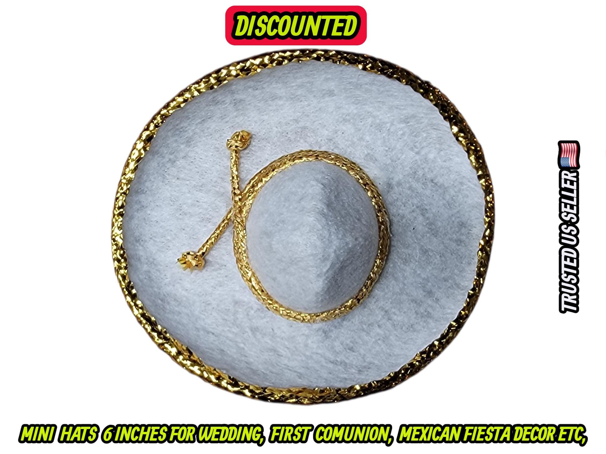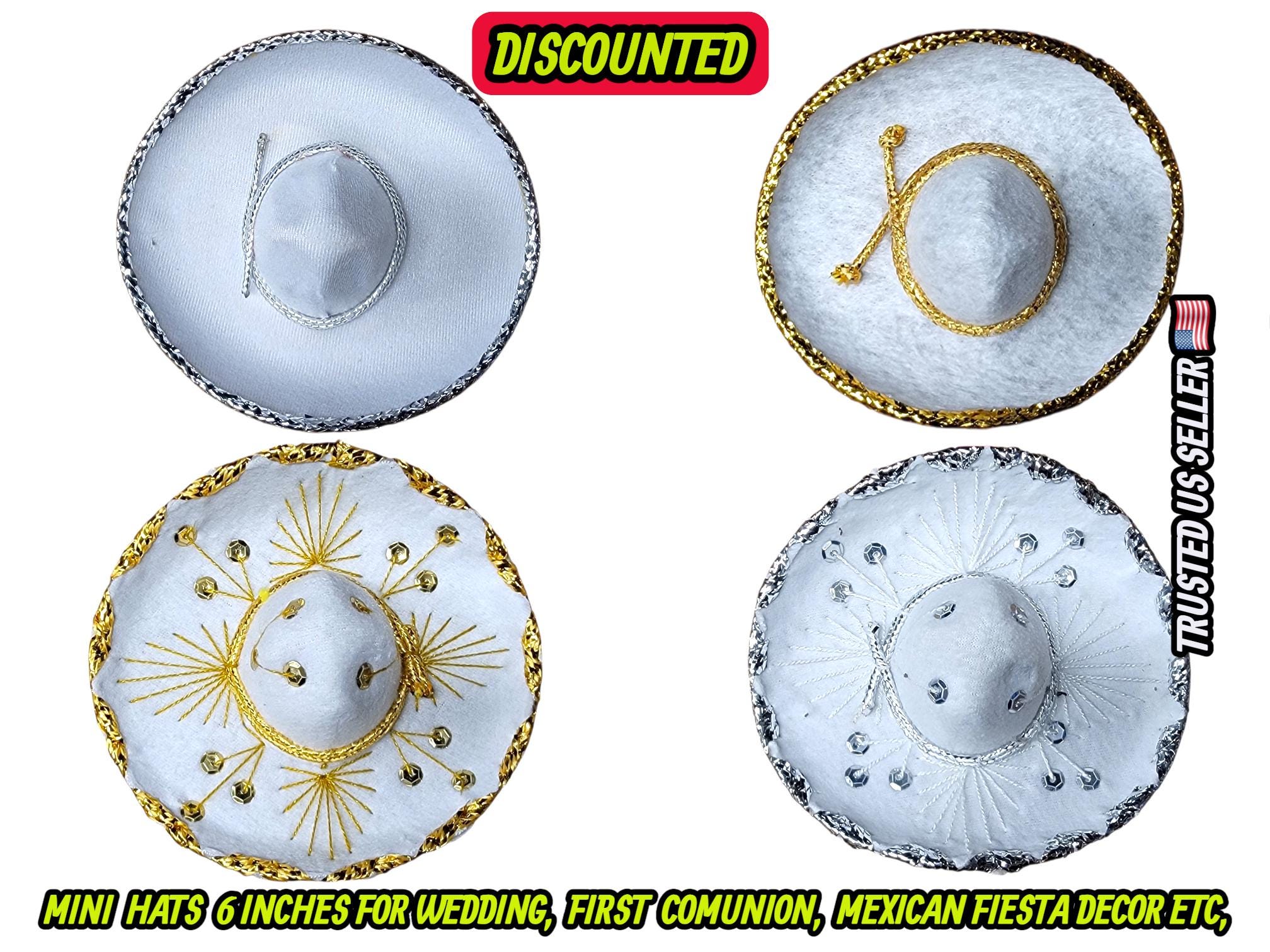 Mini hats for fiesta charro white little hat , this fiesta hat measures 6 inches in diameter . traditional mexican charro sombrero