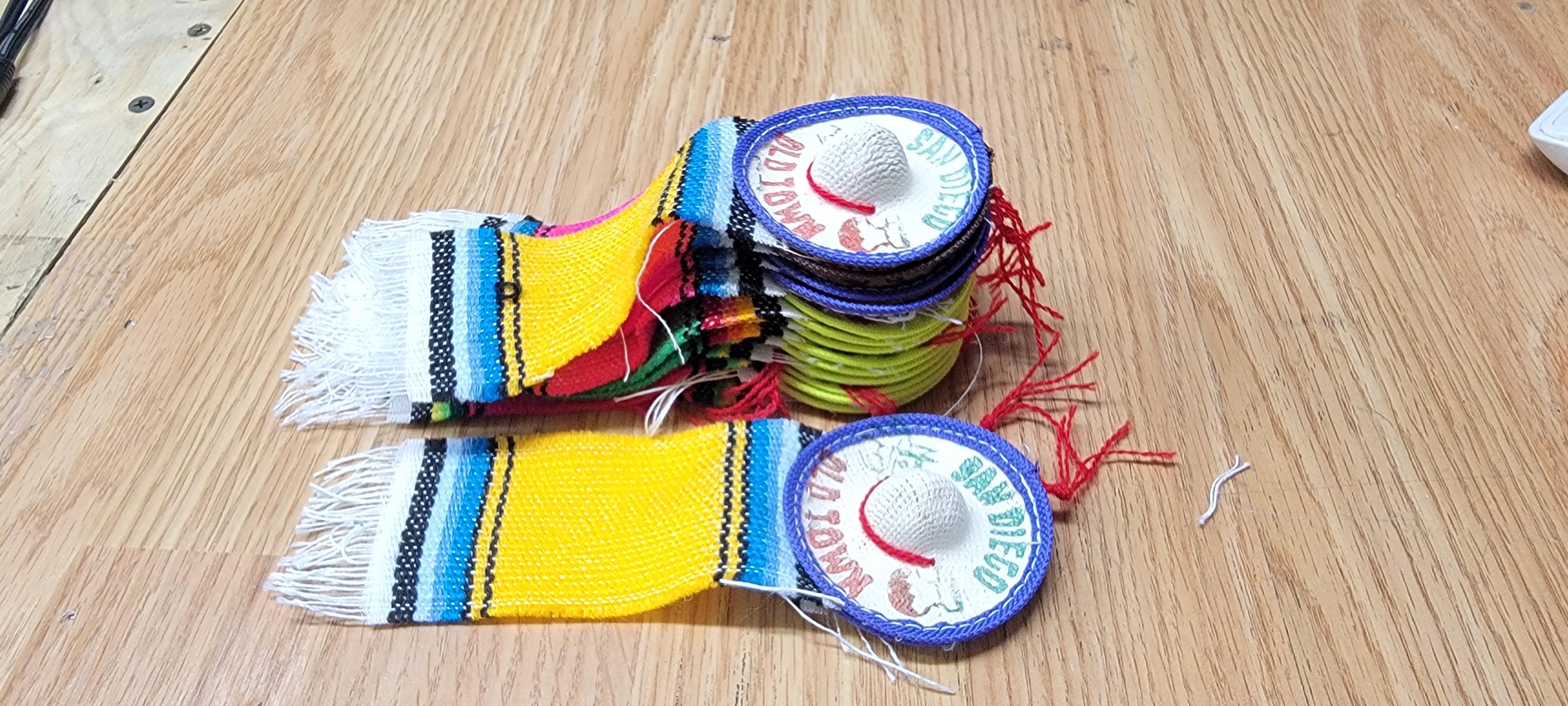 cute mini sombreros wholesale 1 dozen made in mexico wih a sarape blanket , for decoration purposes super cheap , 3 inches in diameter