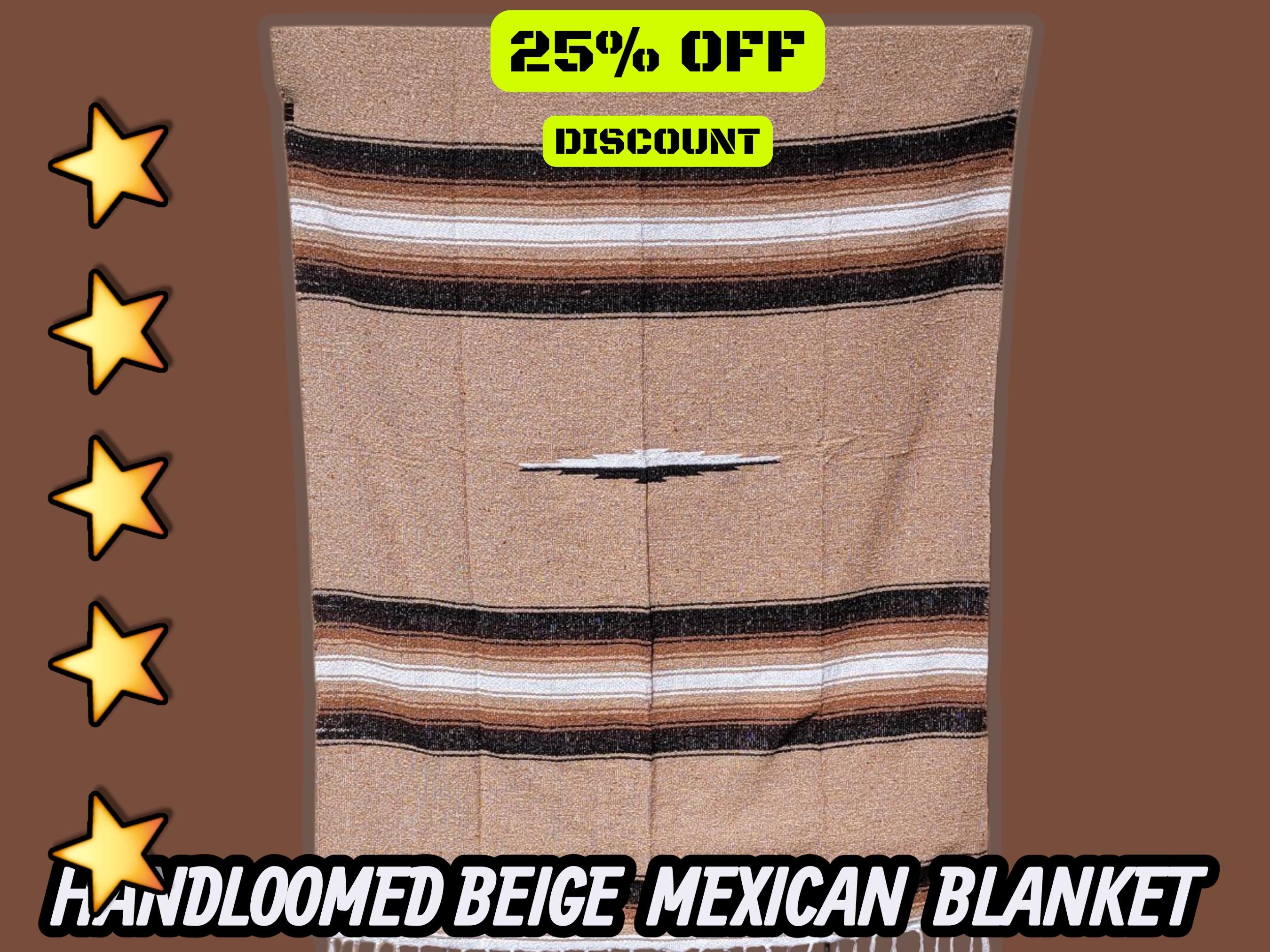This handloomed Mexican blanket is a beautiful example of traditional craftsmanship. The blanket is made with a blend of polyester and acrylic, making it both soft and durable. The diamond pattern in the center is a classic Mexican design, and the colors are bright and vibrant. This blanket is perfect for adding a touch of Mexican style to your home.