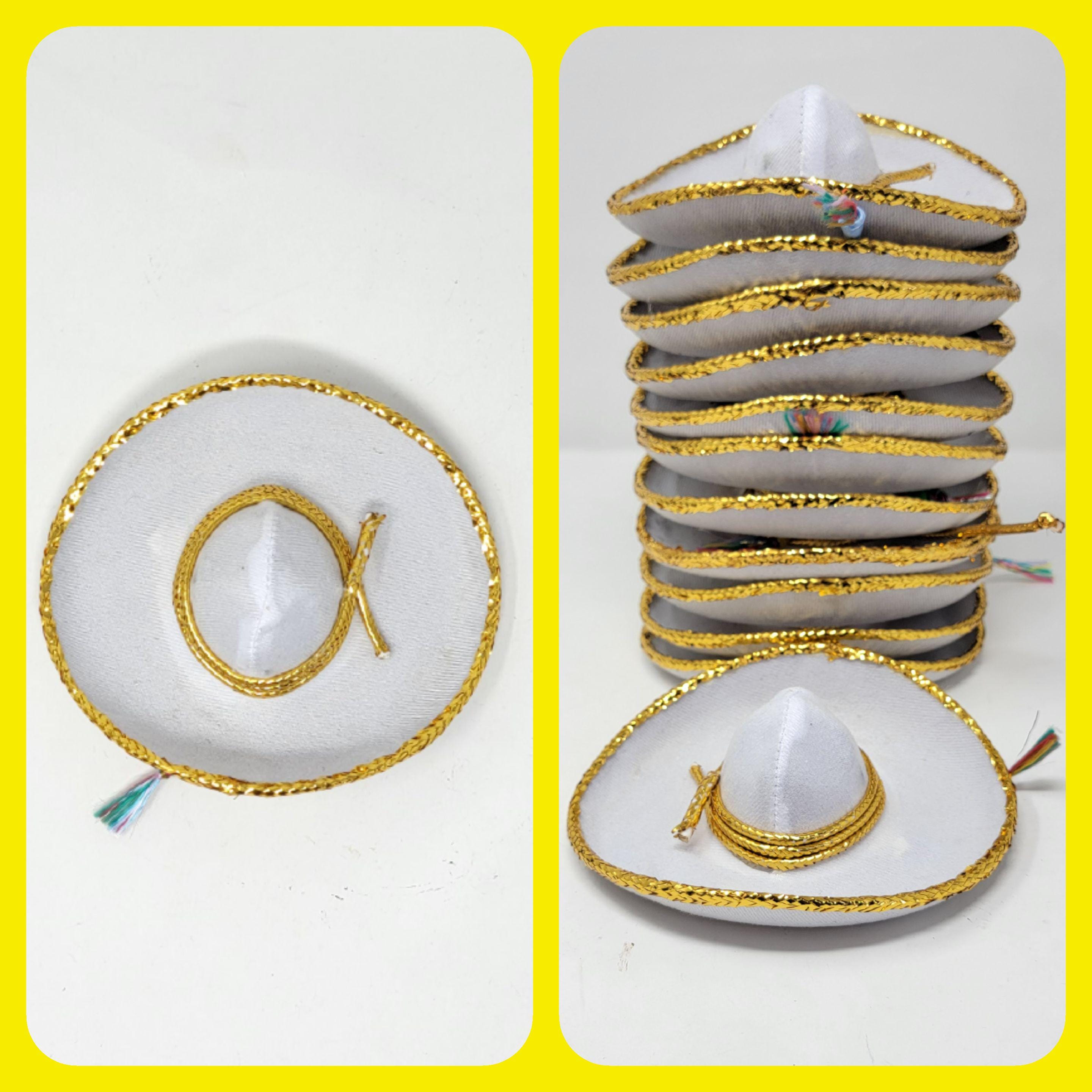fiesta charro white little hat , this fiesta hat measures 6 inches in diameter . traditional mexican charro sombrero