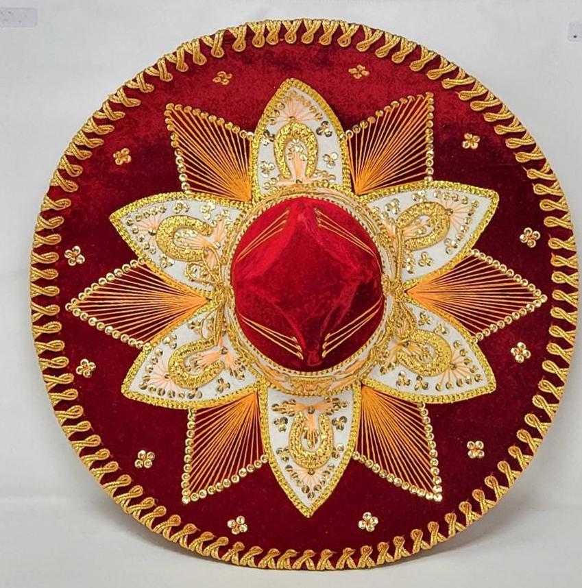 The sombrero is finished with a touch of golden trim, adding a touch of sparkle and luxury. The overall effect is a stunning piece that is both stylish and authentic.