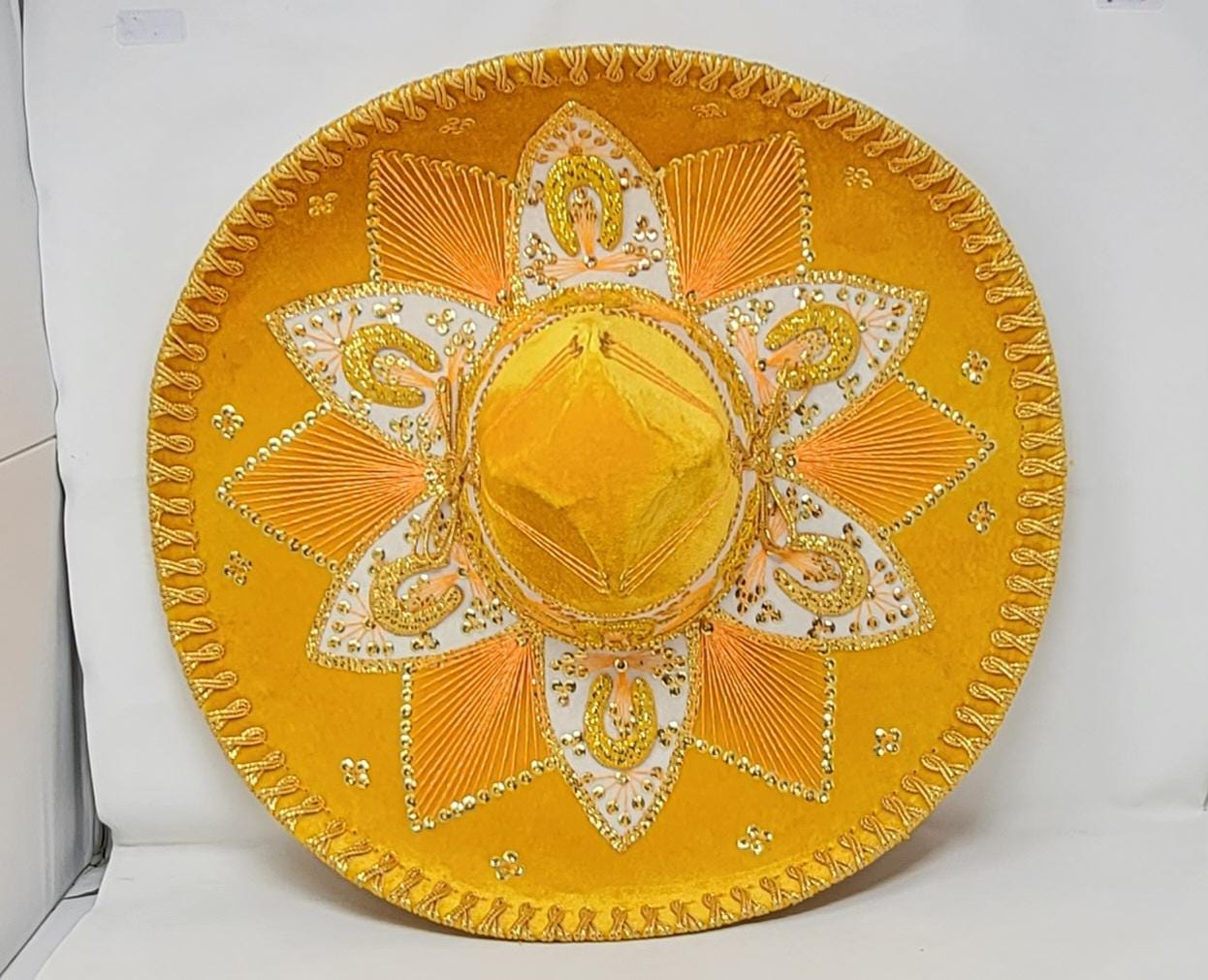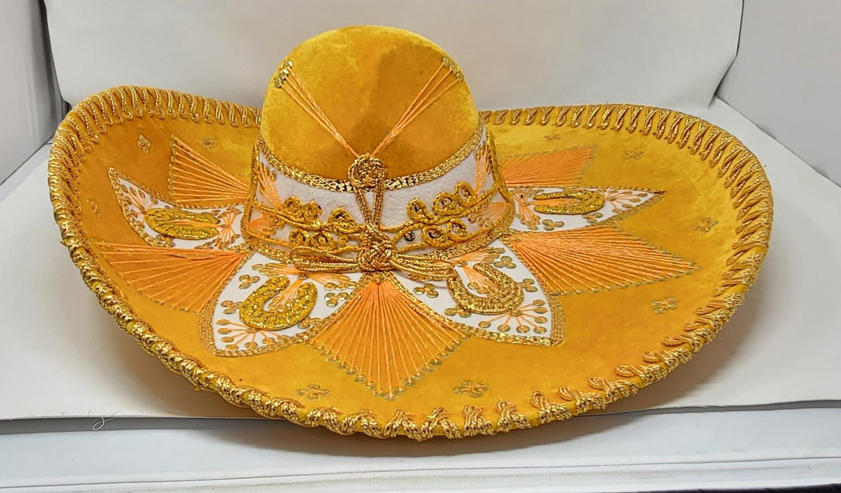 The sombrero is finished with a touch of golden trim, adding a touch of sparkle and luxury. The overall effect is a stunning piece that is both stylish and authentic.