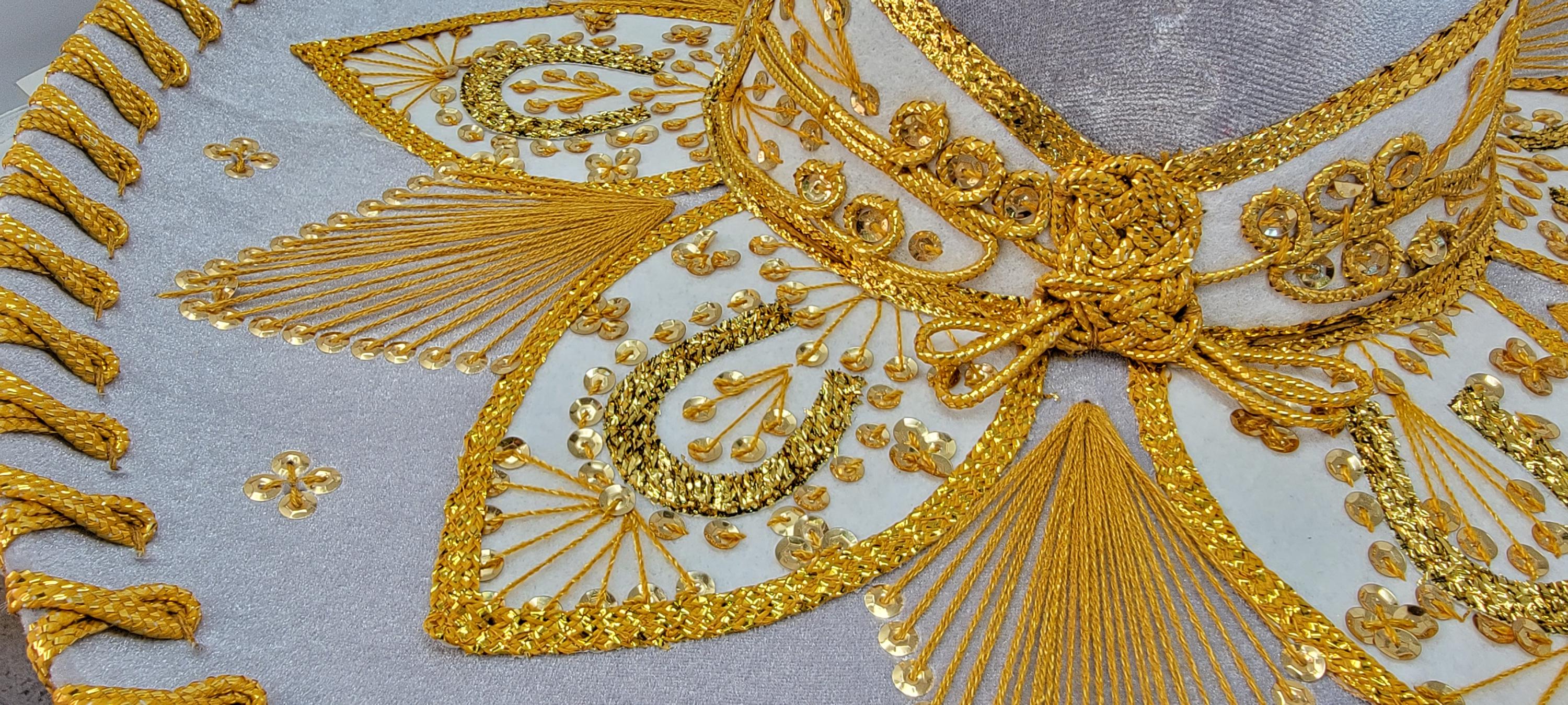 by wearing our hats you will gets lots of positive compliments from the public about the embroidery and the beautifull shinny metallic decorations of the hat , we use bright and vivid fabrics