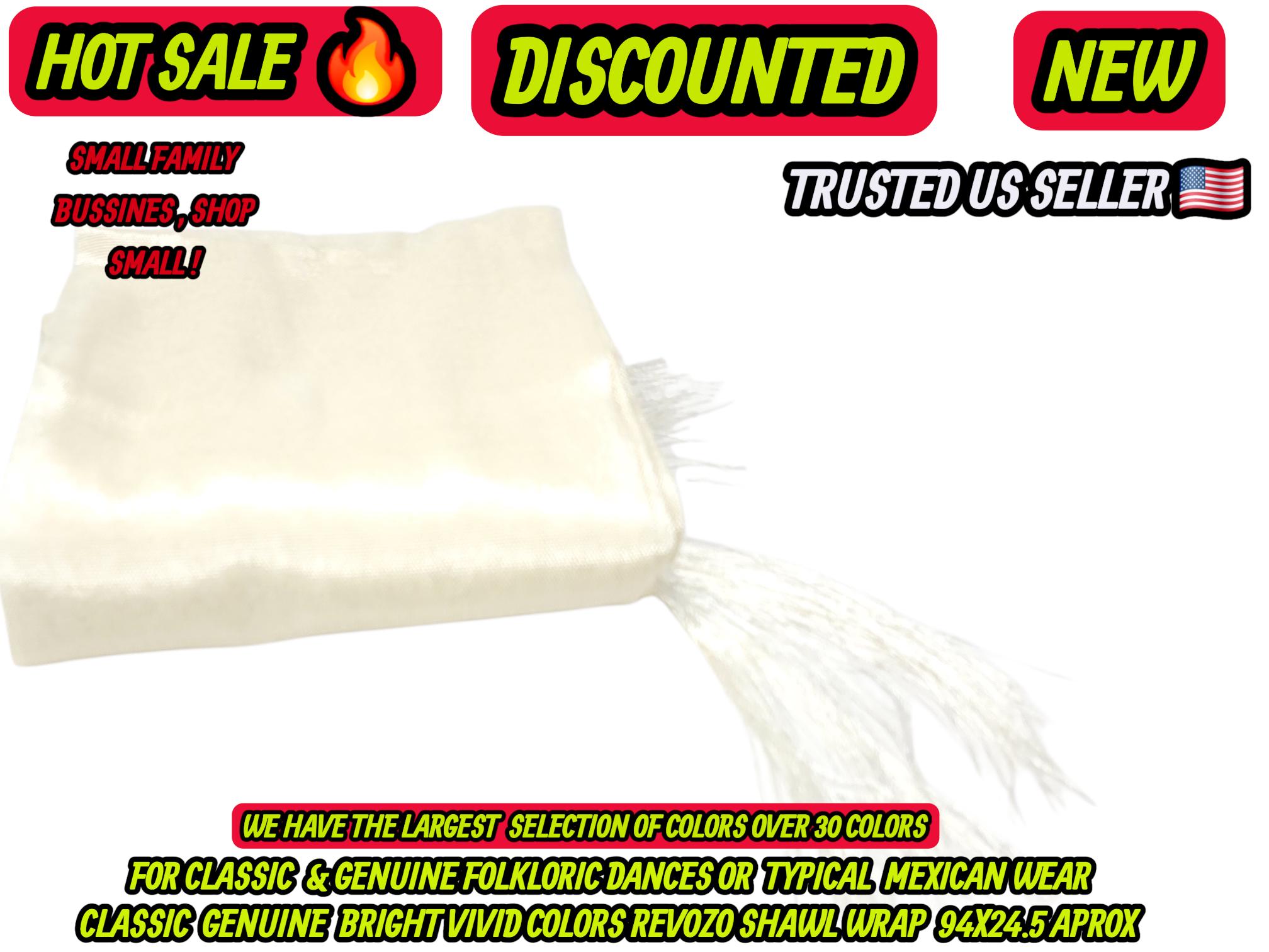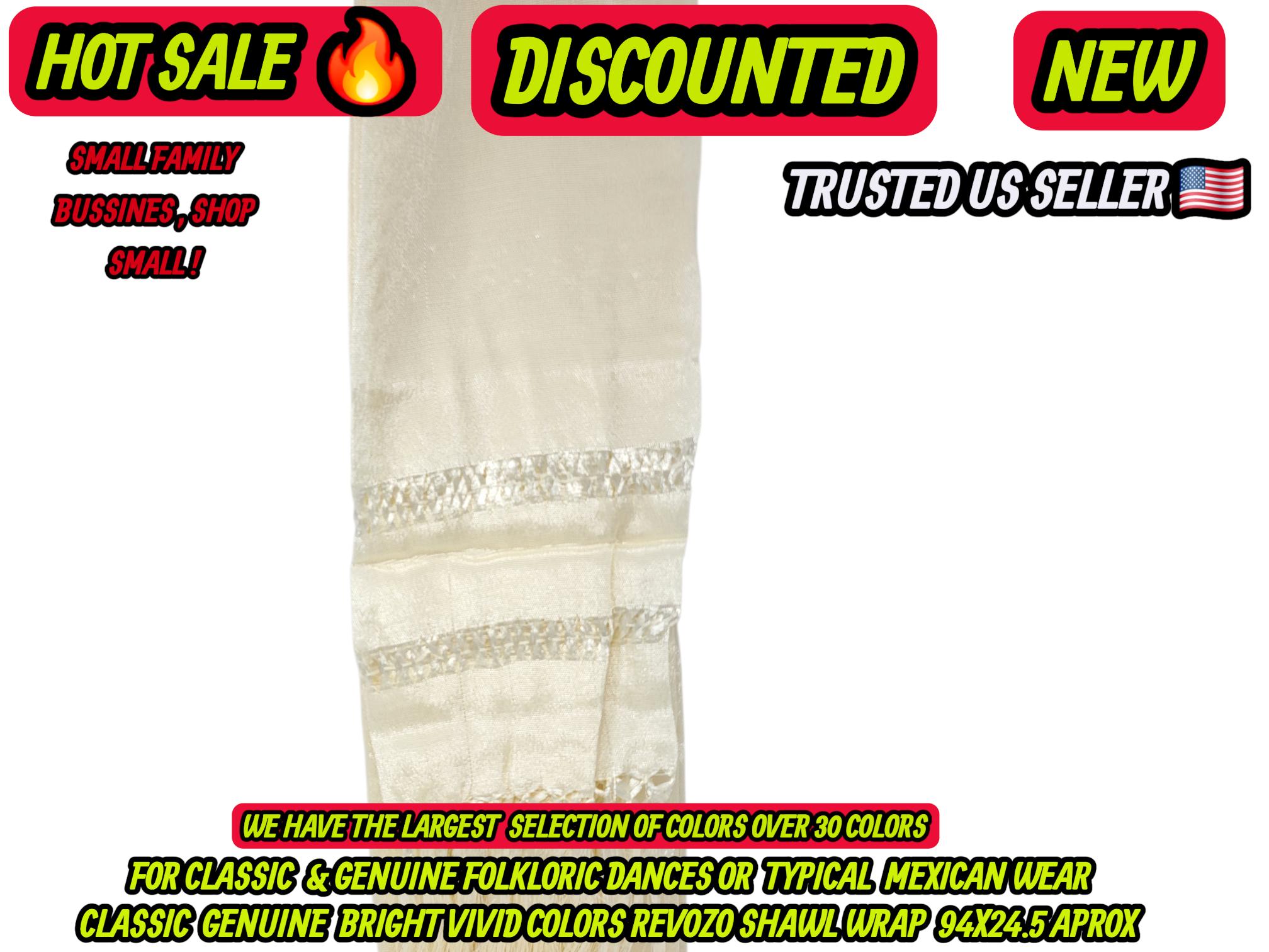 Pearl Artisela Mexican Rebozo Shawl: Traditional Fringed Chalina (94" x 24.5")