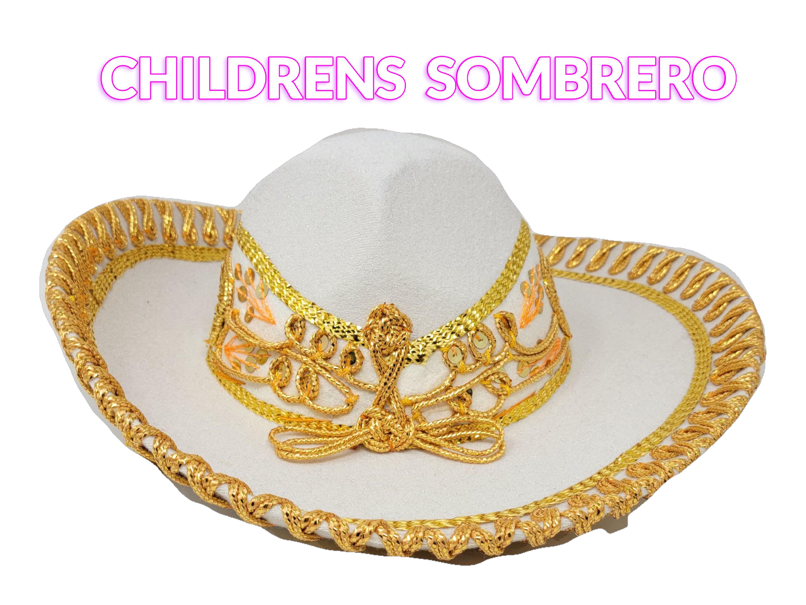The brim and crown are adorned with a radiant golden trim, adding a touch of sophistication and highlighting the hat's classic design. Intricate hand-embroidered details, showcasing traditional Mexican motifs, embellish the hat, demonstrating the skill and artistry of the artisan.