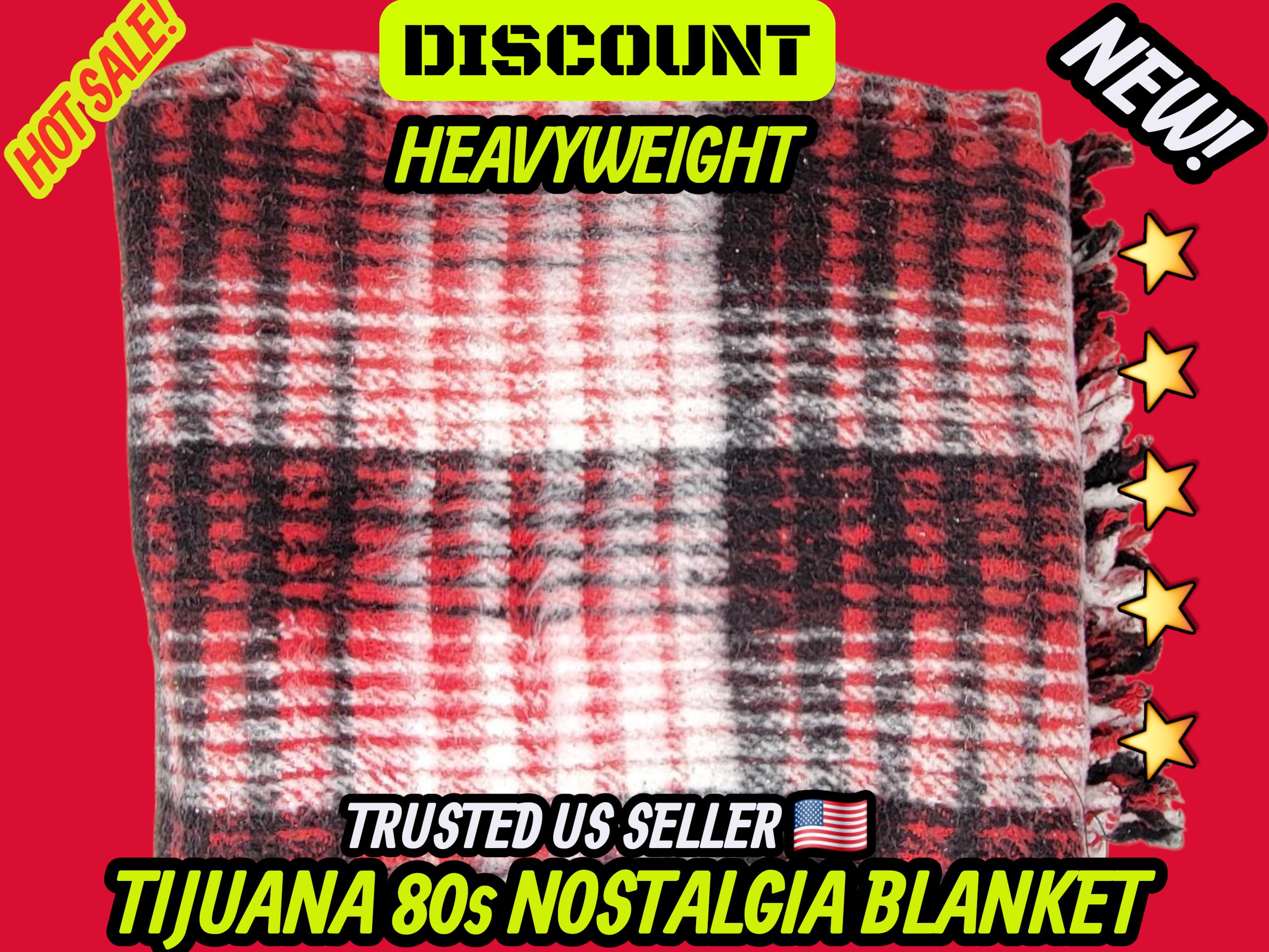 Red Plaid Mexican Blanket: Heavy Reversible Recycled Fiber Manta
