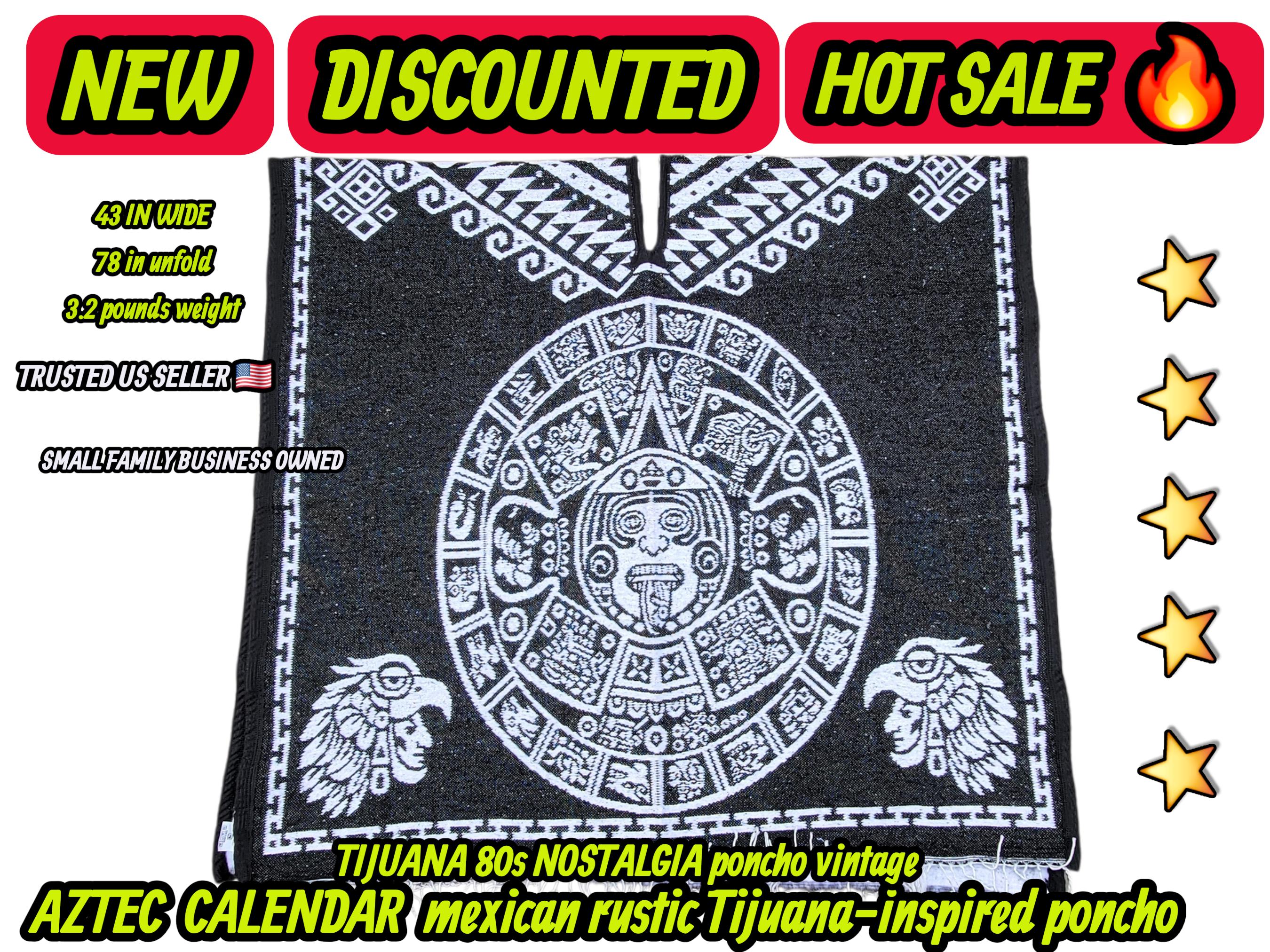 Adults Aztec calendar mexican poncho traditional poncho gavan jorongo 5 de mayo