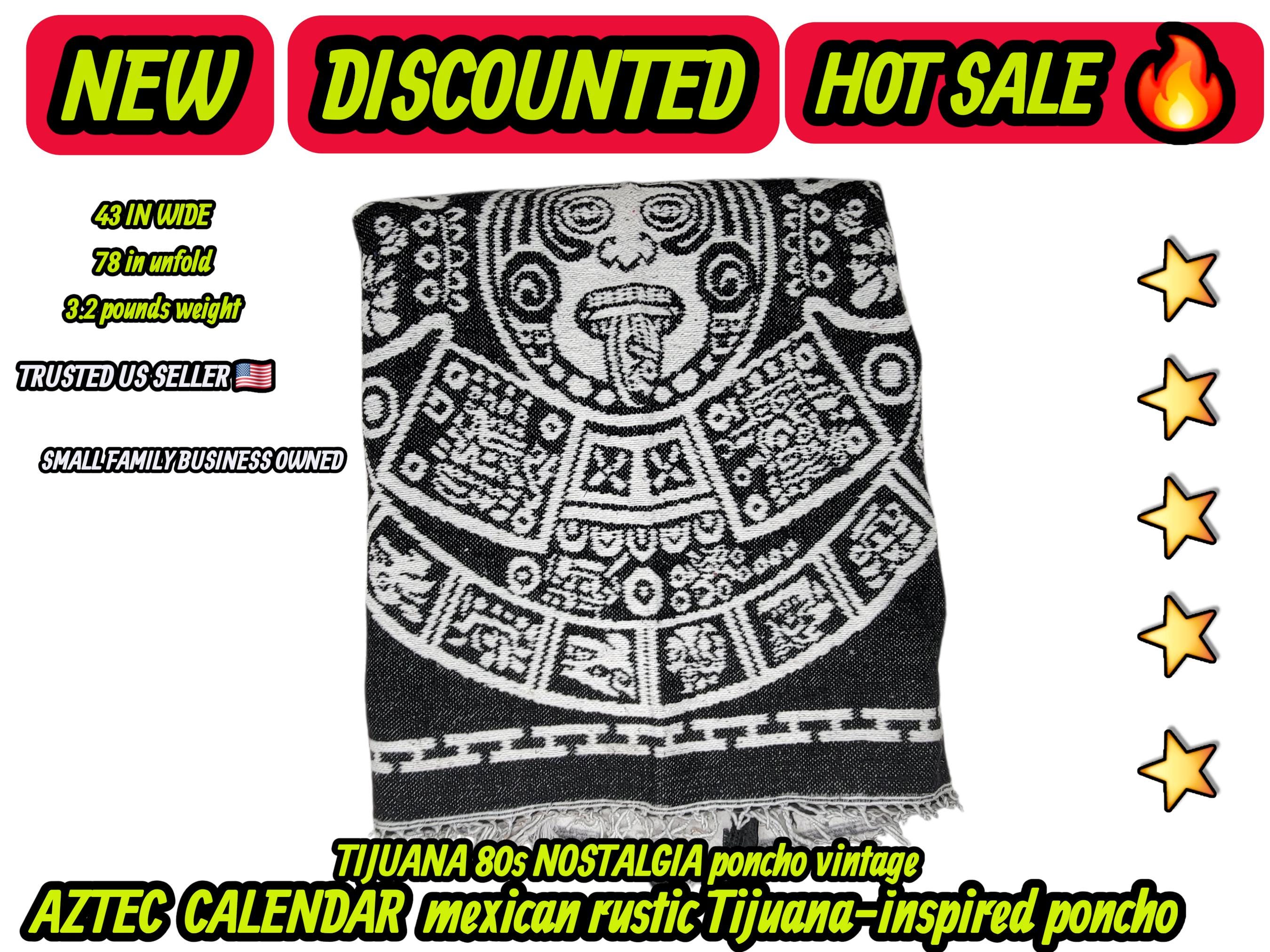 * "Wrapped in the spirit of ancient Mexico, this thick poncho is a testament to the enduring power of tradition. The intricate Aztec designs, woven with care and reverence, evoke a sense of history and mystery. This is not just a garment; it's a connection to the past, a celebration of culture, and a source of enduring warmth."
