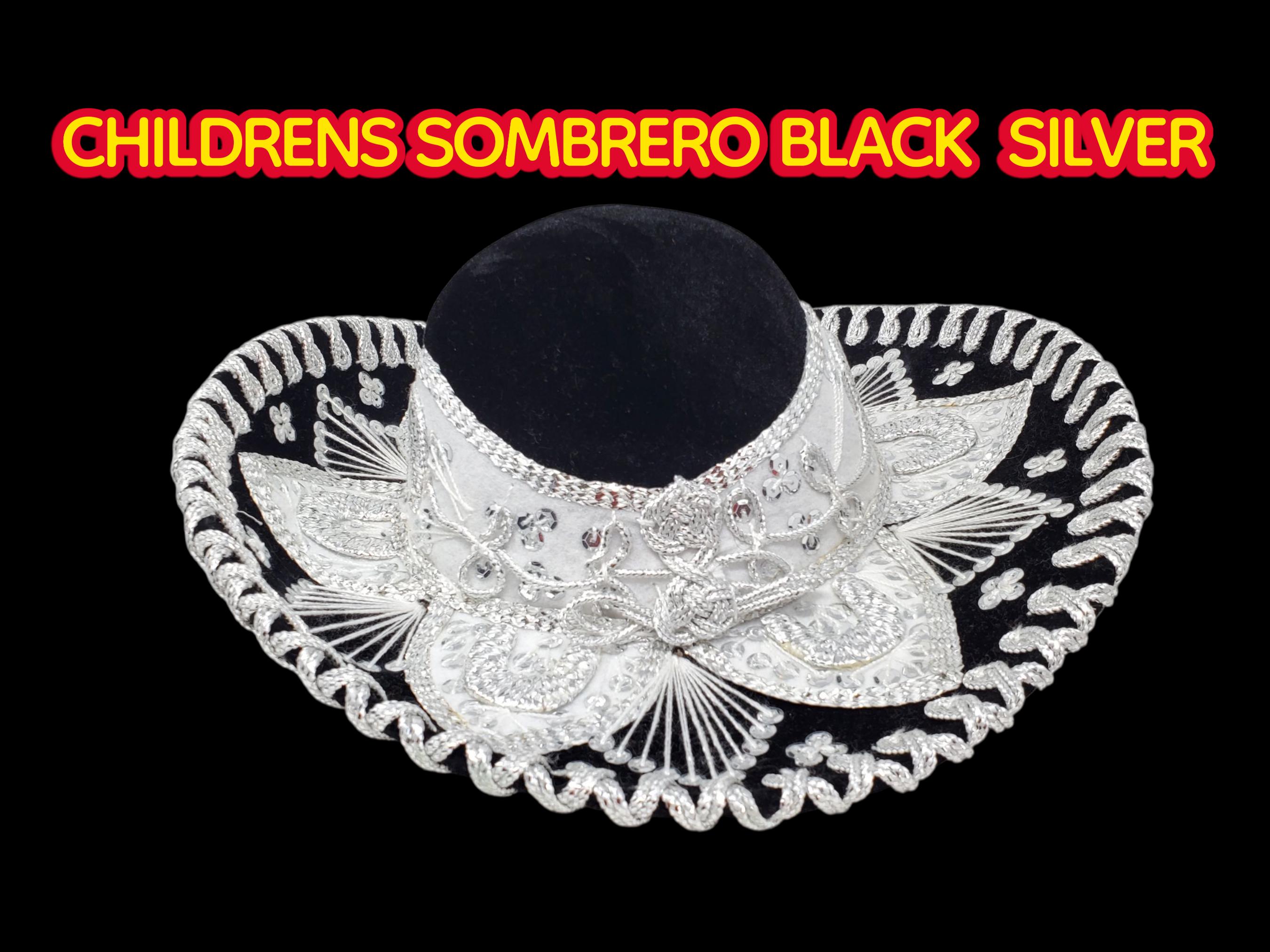 DEAR CUSTUMER NOTE THIS HAT IS BLACK WITH silver trim or gold trim depending on variation you choose and includes 2 variations for childrens sombreros