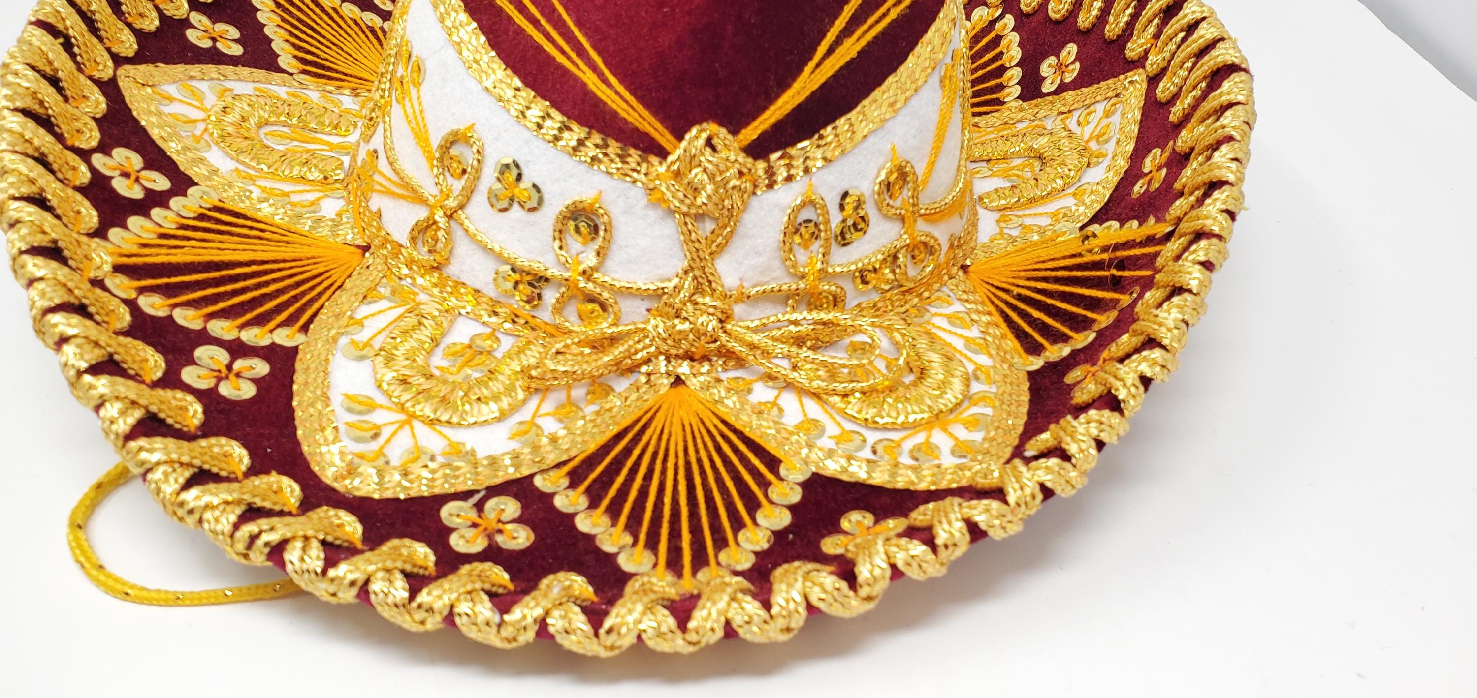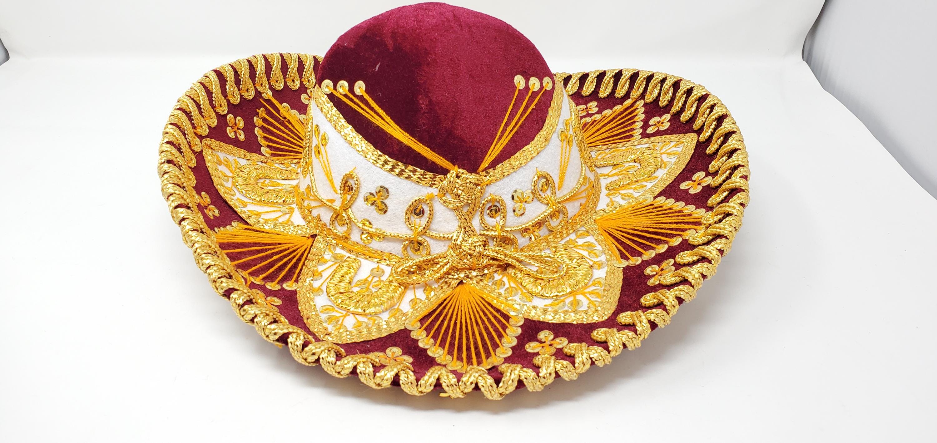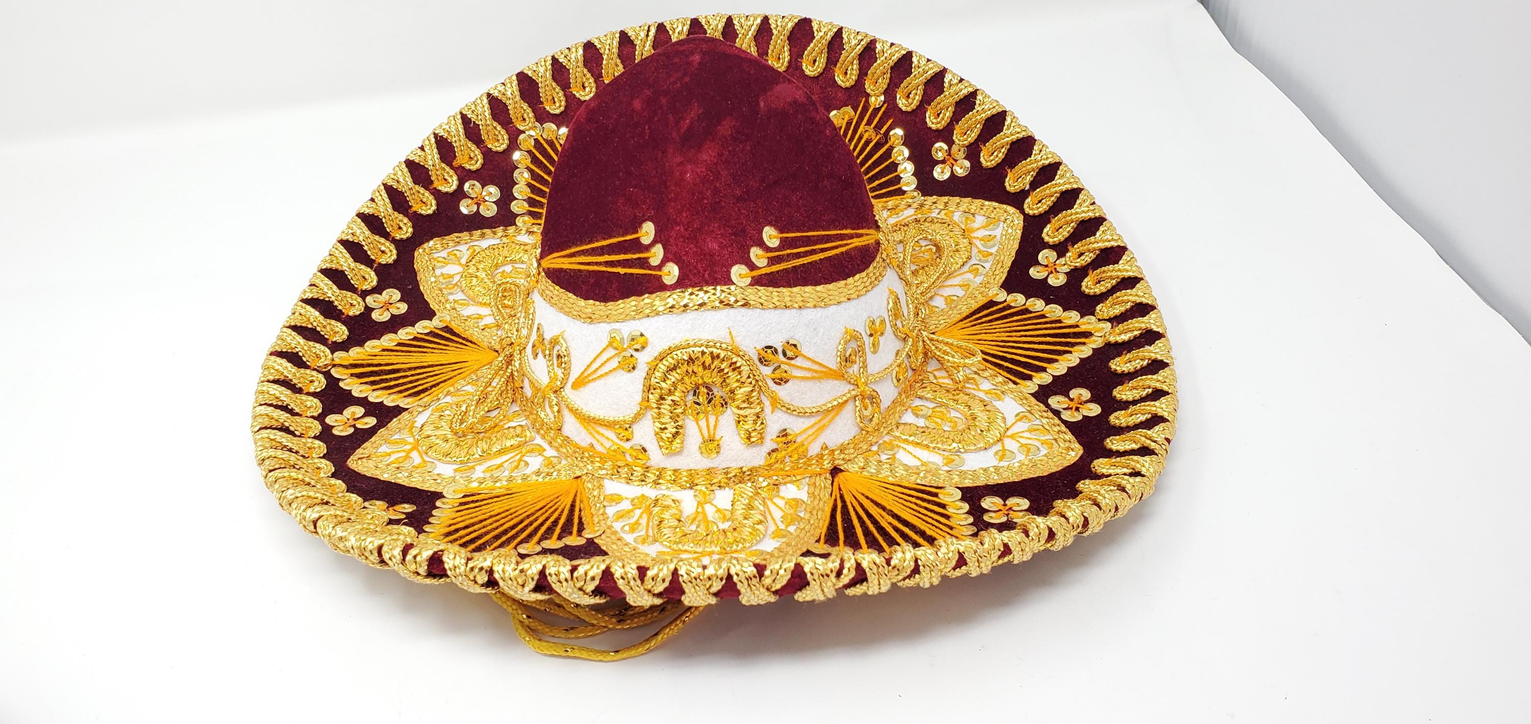 Kids Dark burgundy Sombrero with Gold Trim: Authentic Charro Hat childrens sombreros