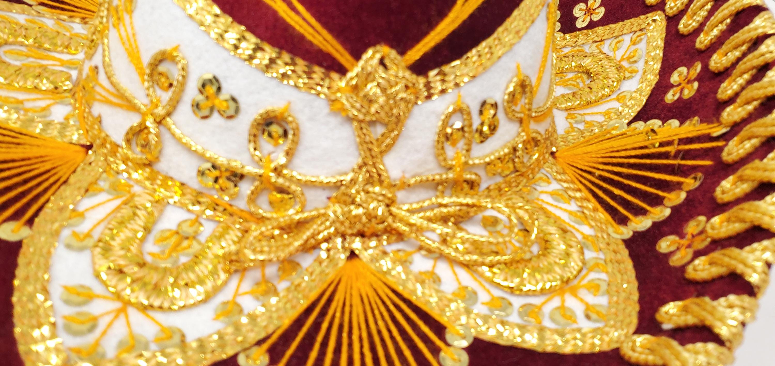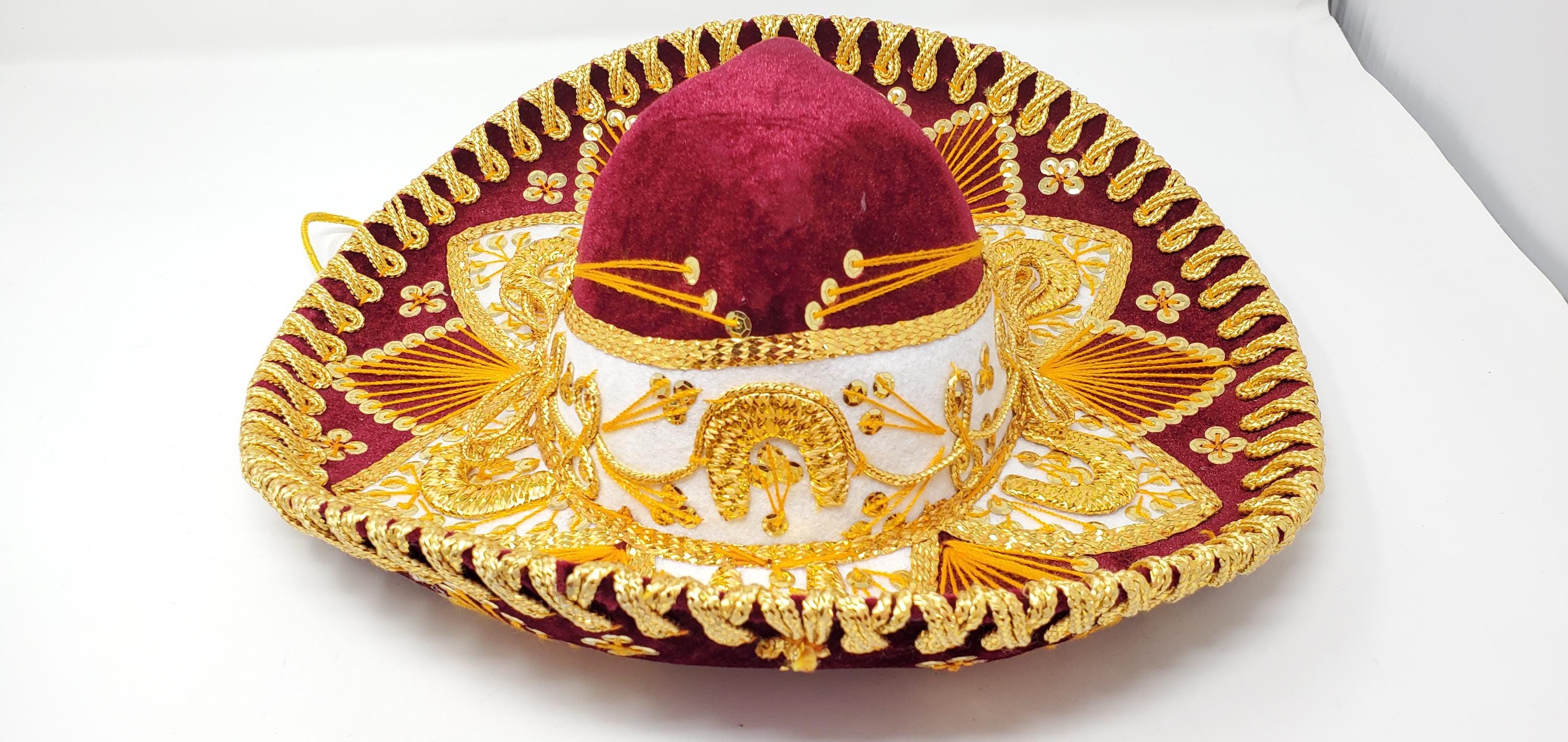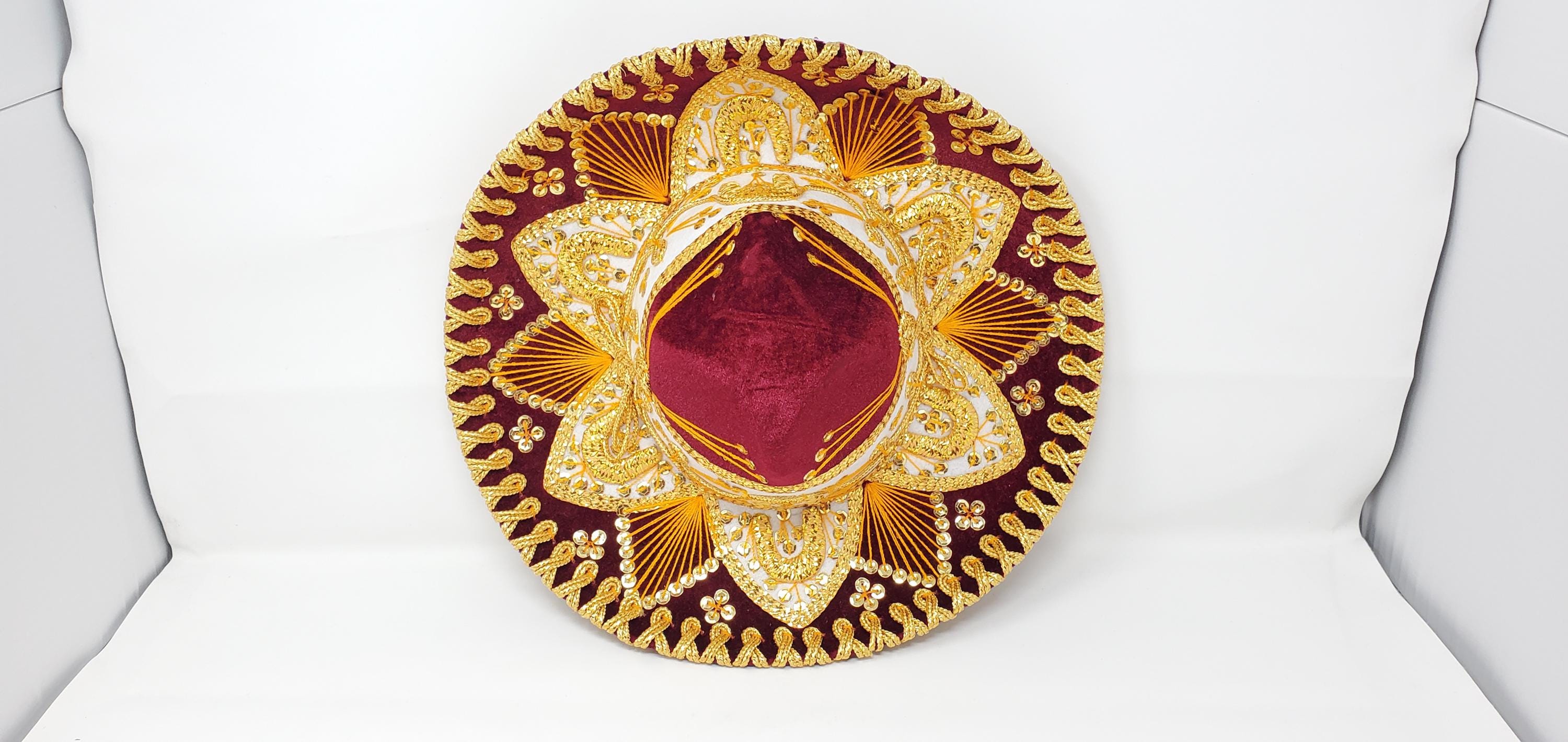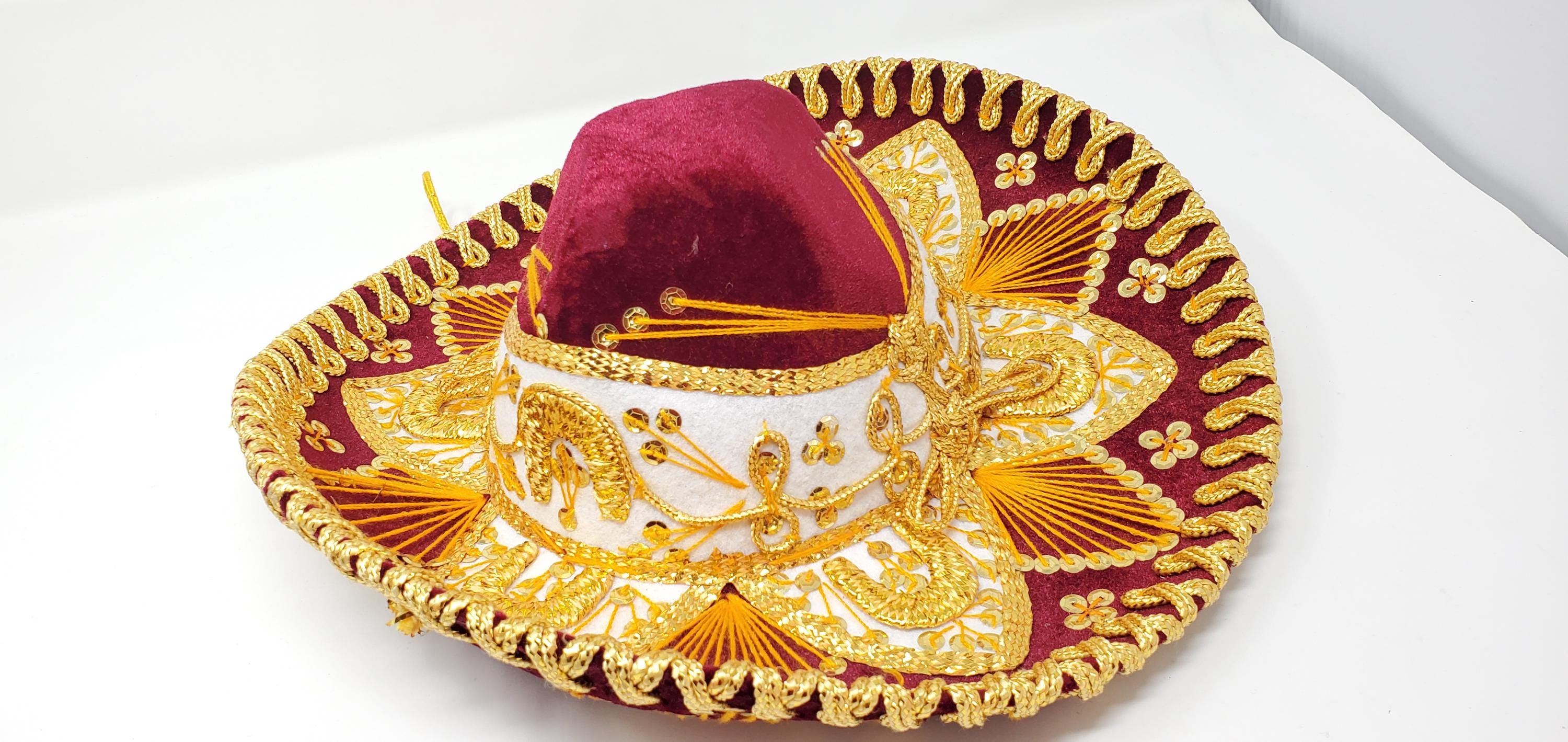 Kids Dark burgundy Sombrero with Gold Trim: Authentic Charro Hat childrens sombreros