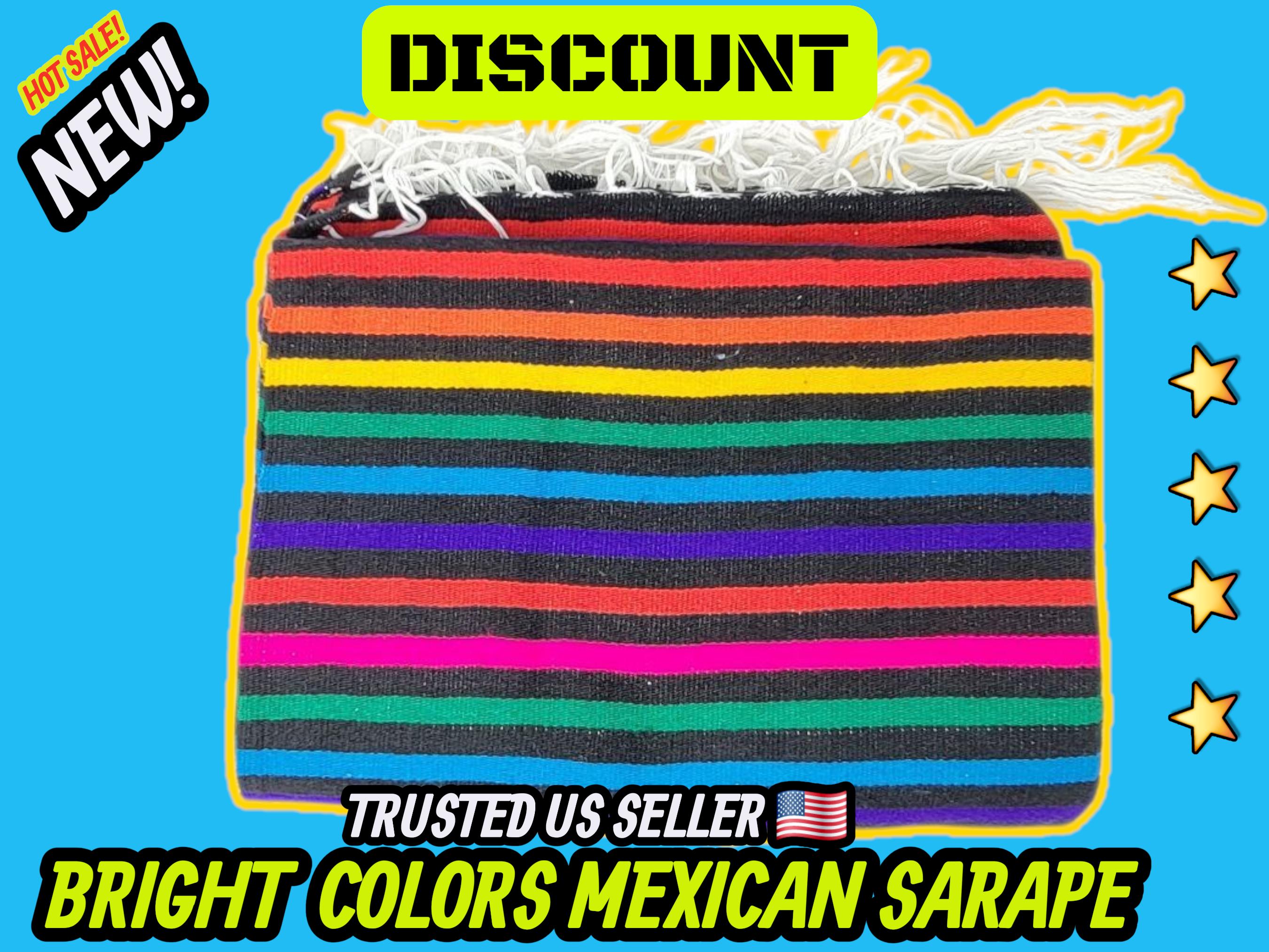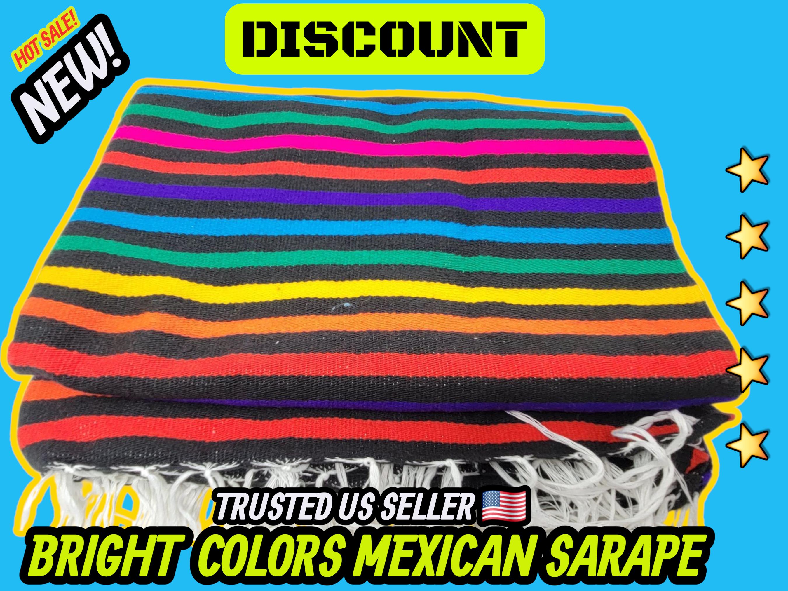 Colorful handwoven mexican blanket saltillo sarape 84 by 58 inches 2.10 pounds