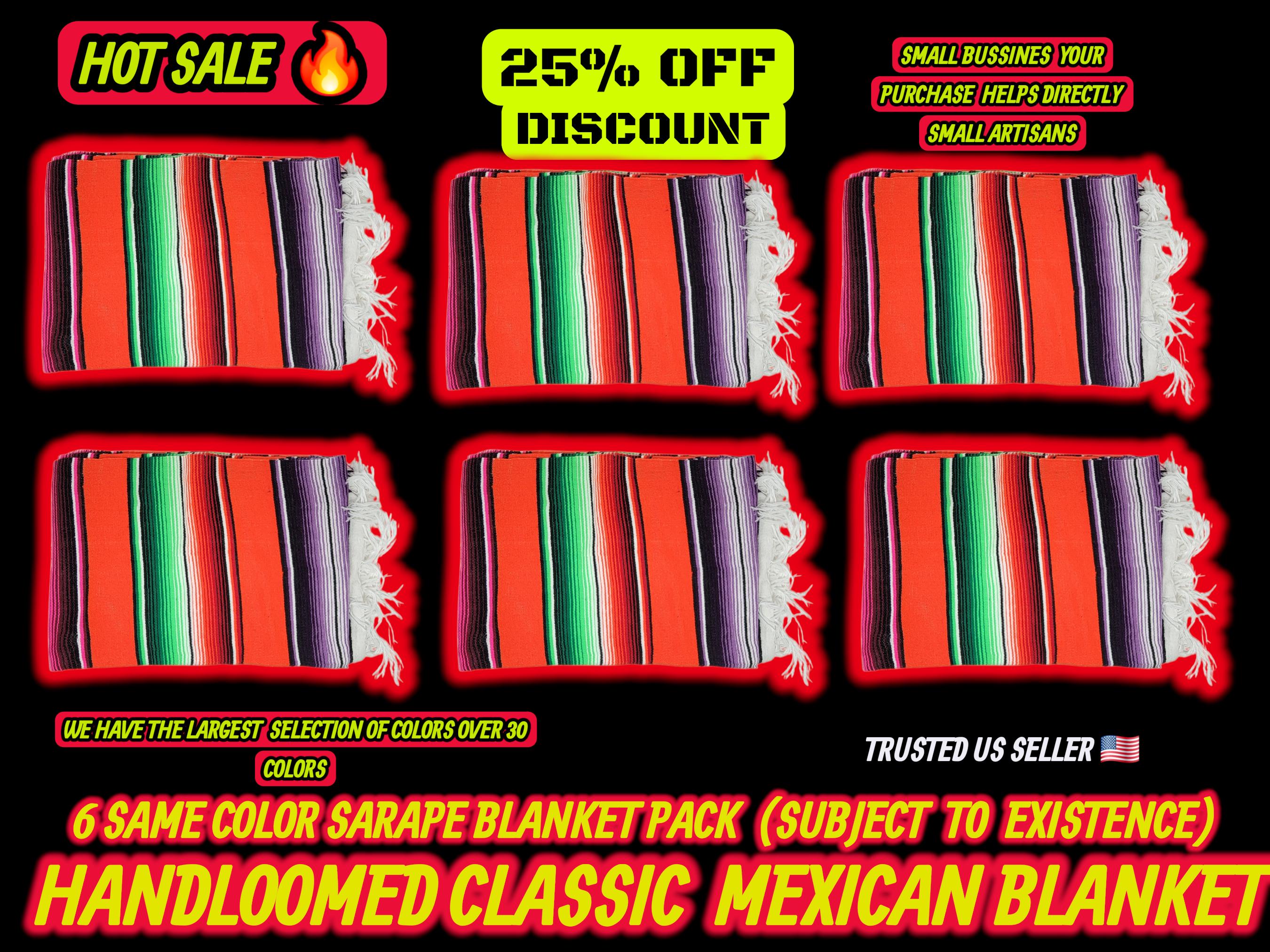 ​Bring the vibrant spirit of Mexico into your home with this authentic, hand-woven serape (or zarape) blanket. Perfect as a cozy throw, a stunning wall hanging, a unique picnic blanket, or even a stylish rug, these blankets are known for their rich colors, intricate stripe patterns, and exceptional durability. Each blanket tells a story, crafted by skilled artisans using traditional weaving techniques.