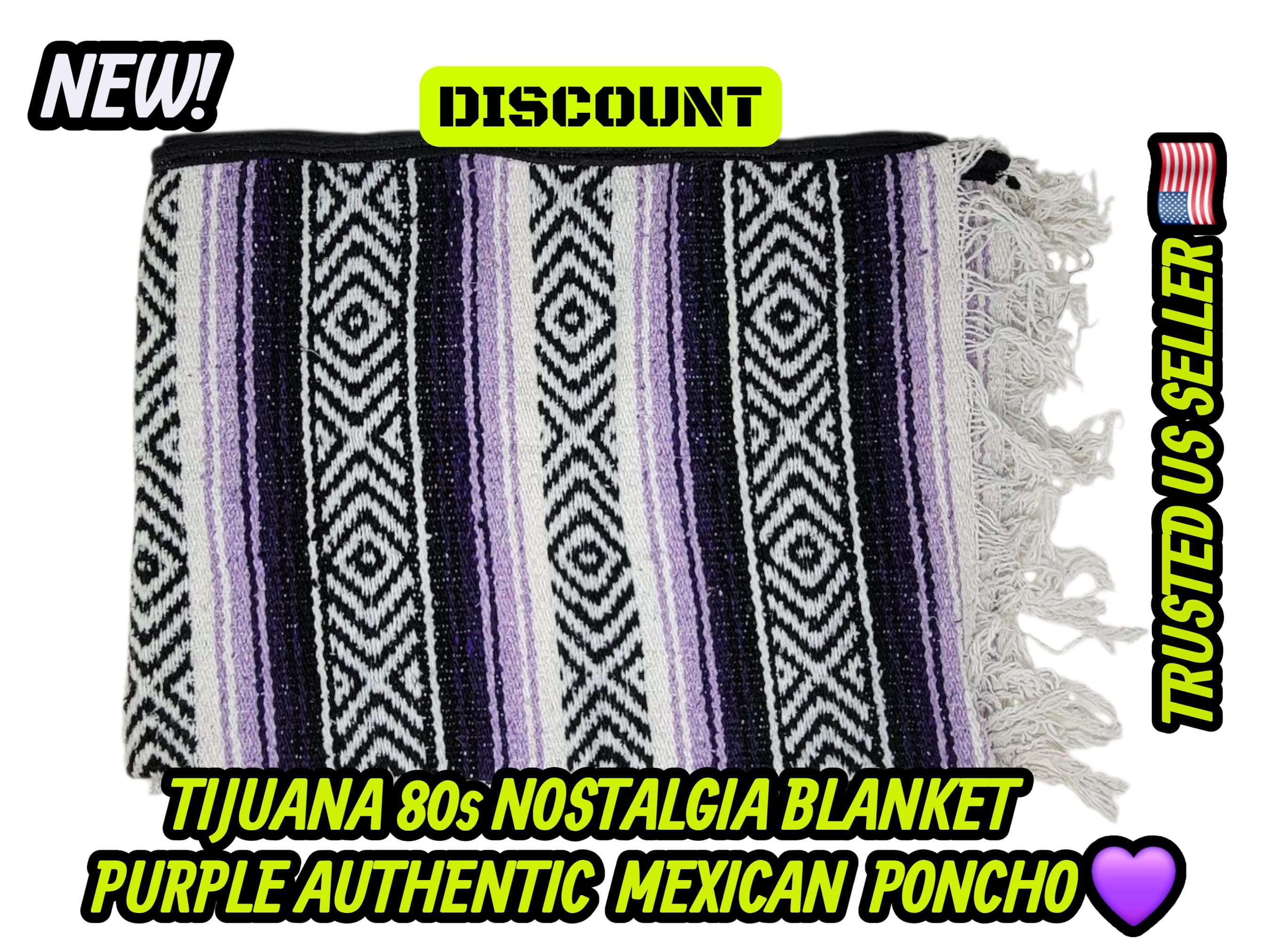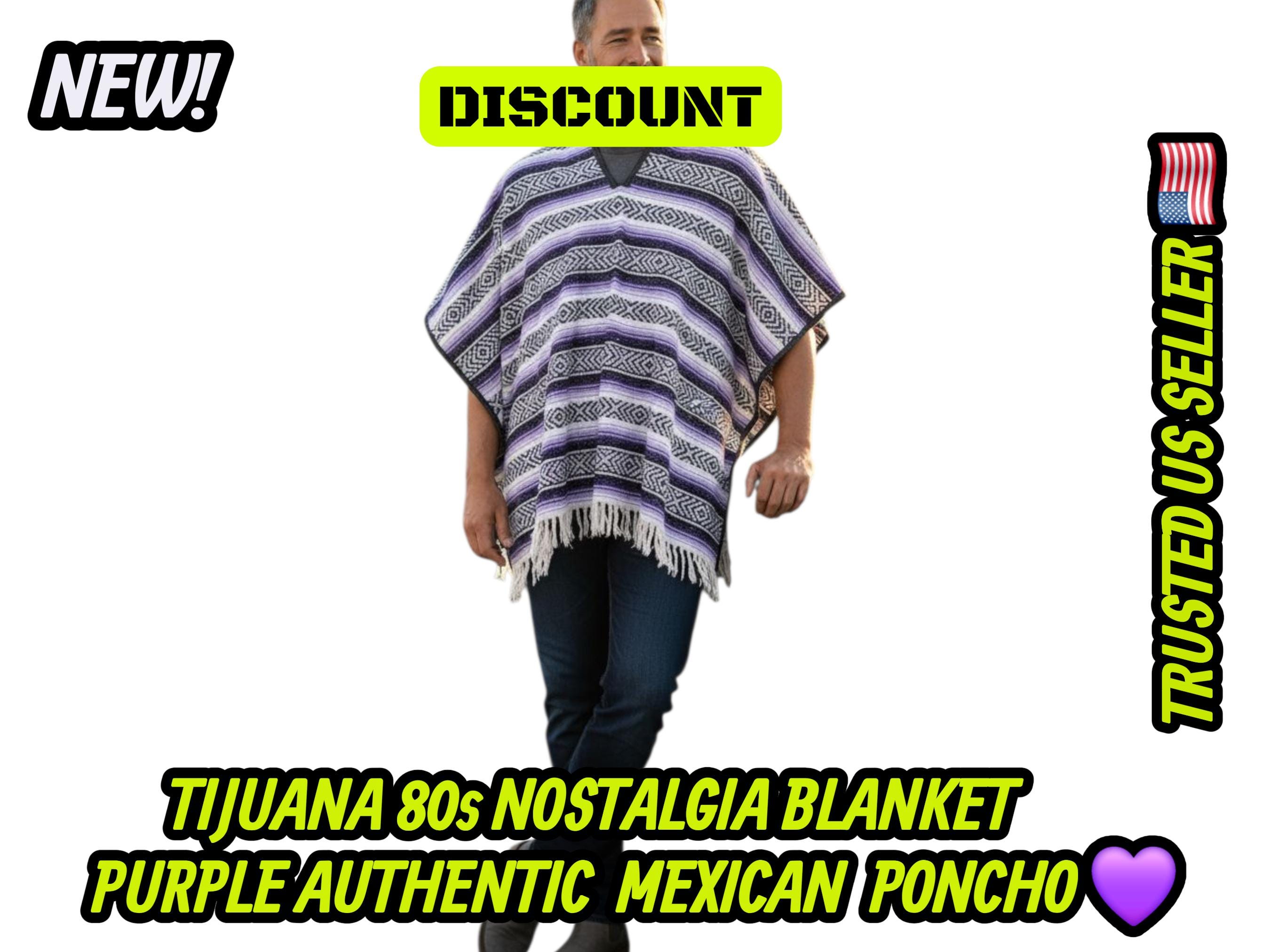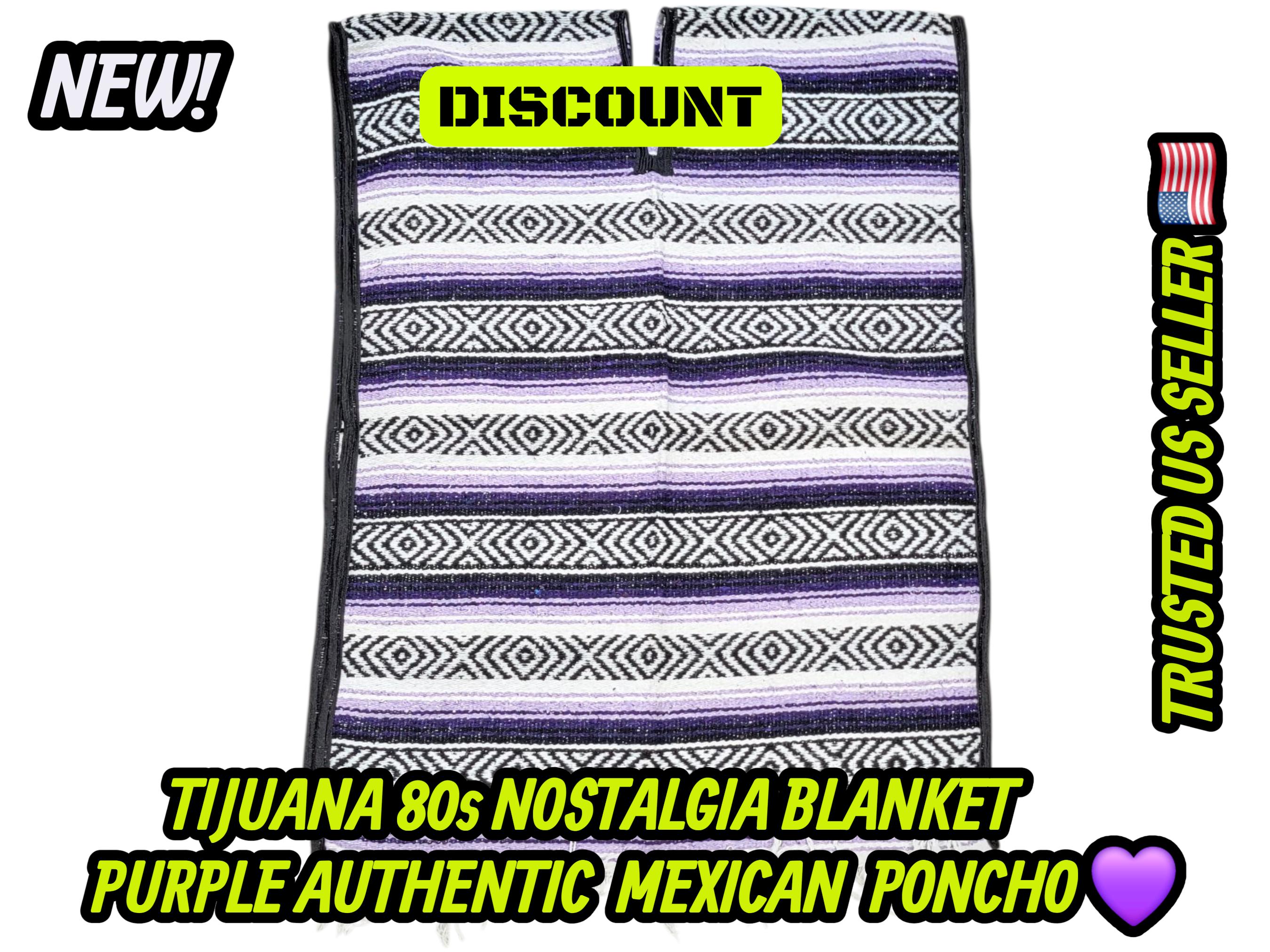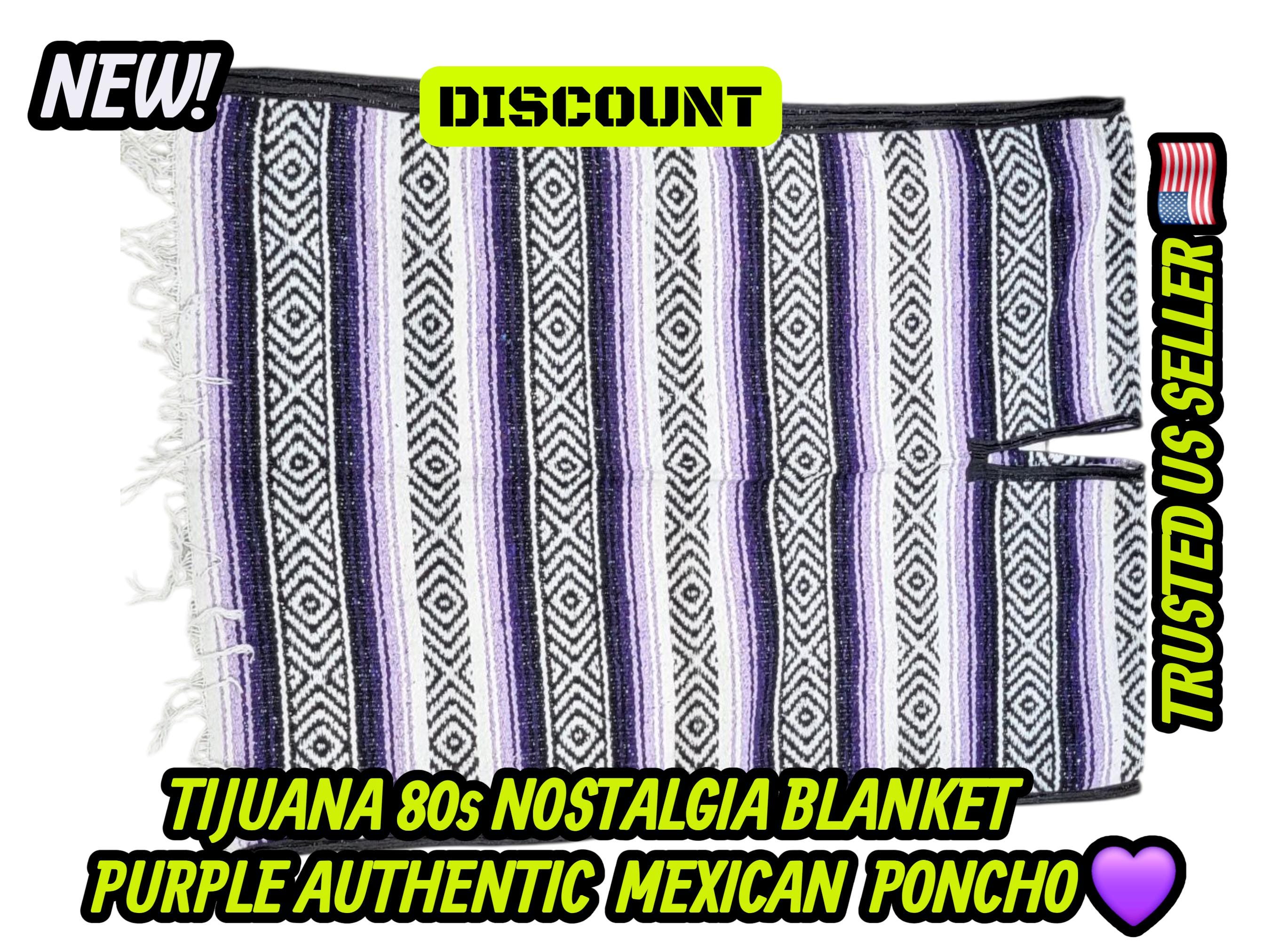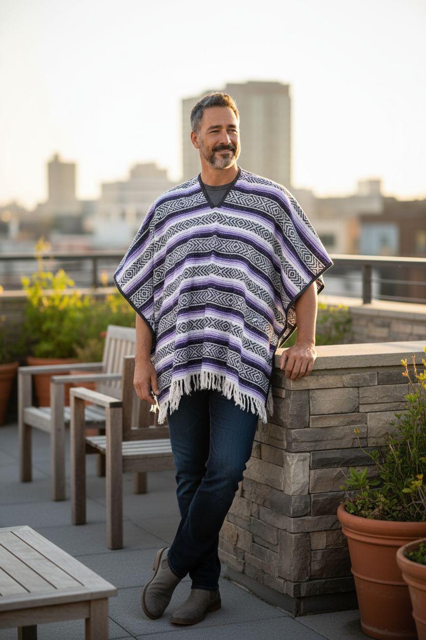 Mexican Falsa Poncho: purple white Striped Adult Serape