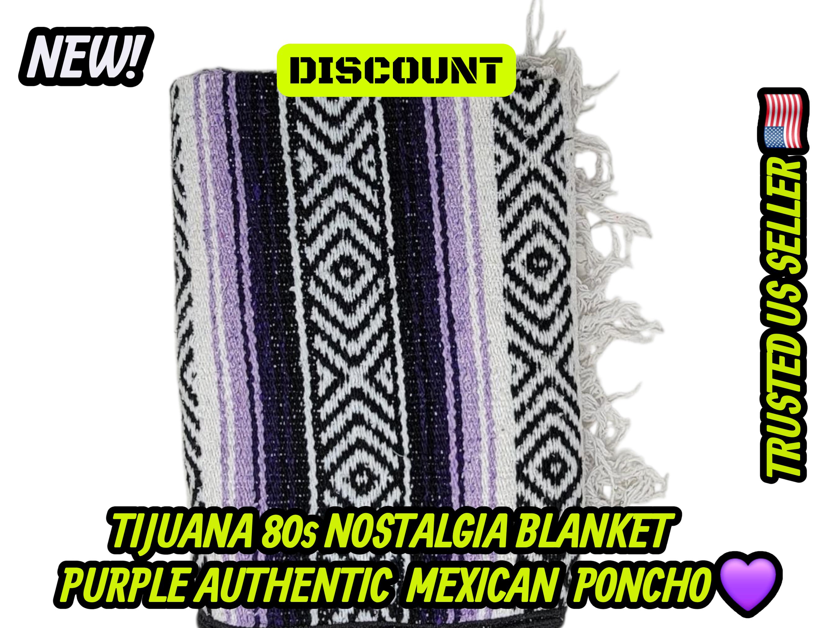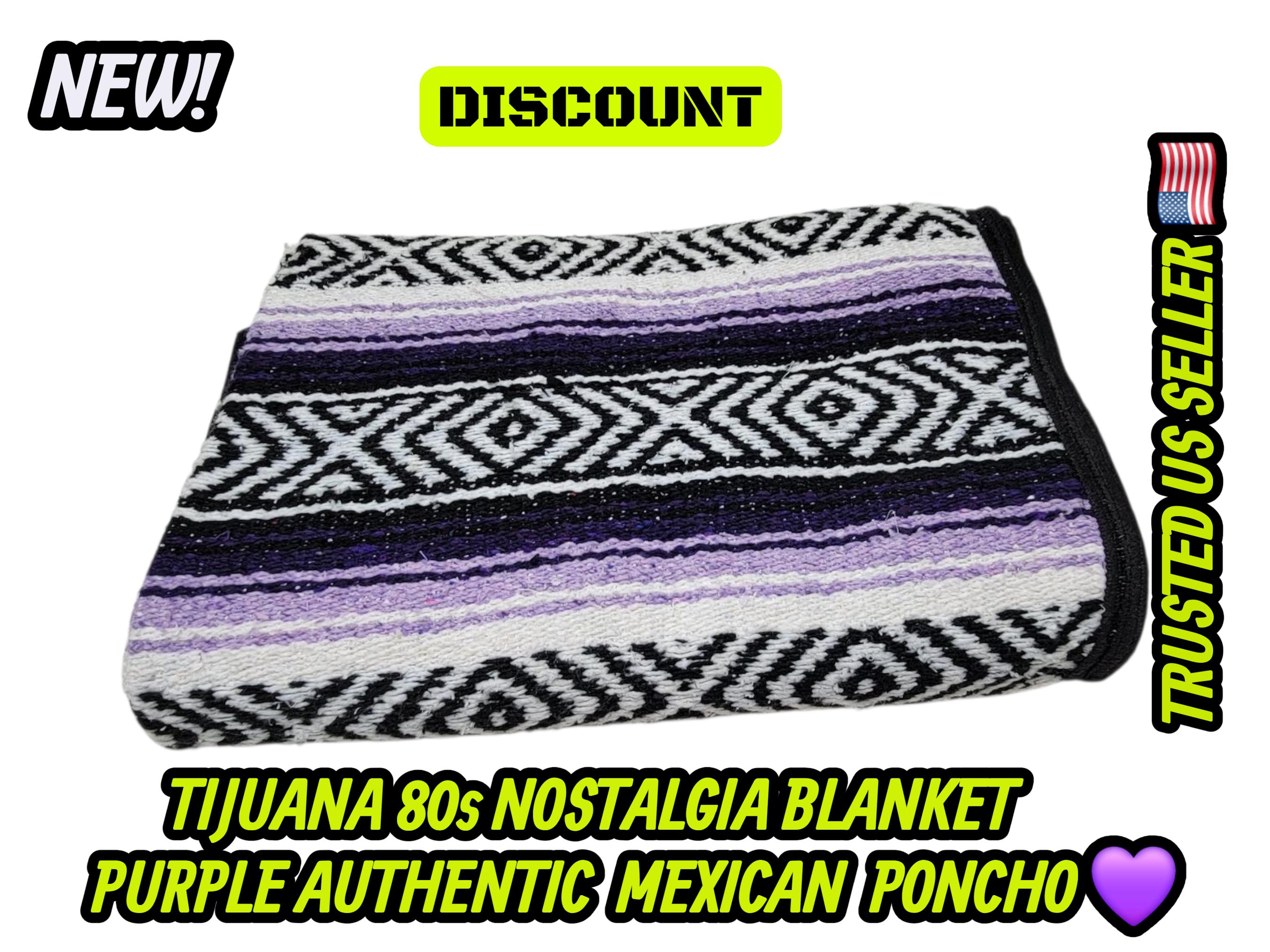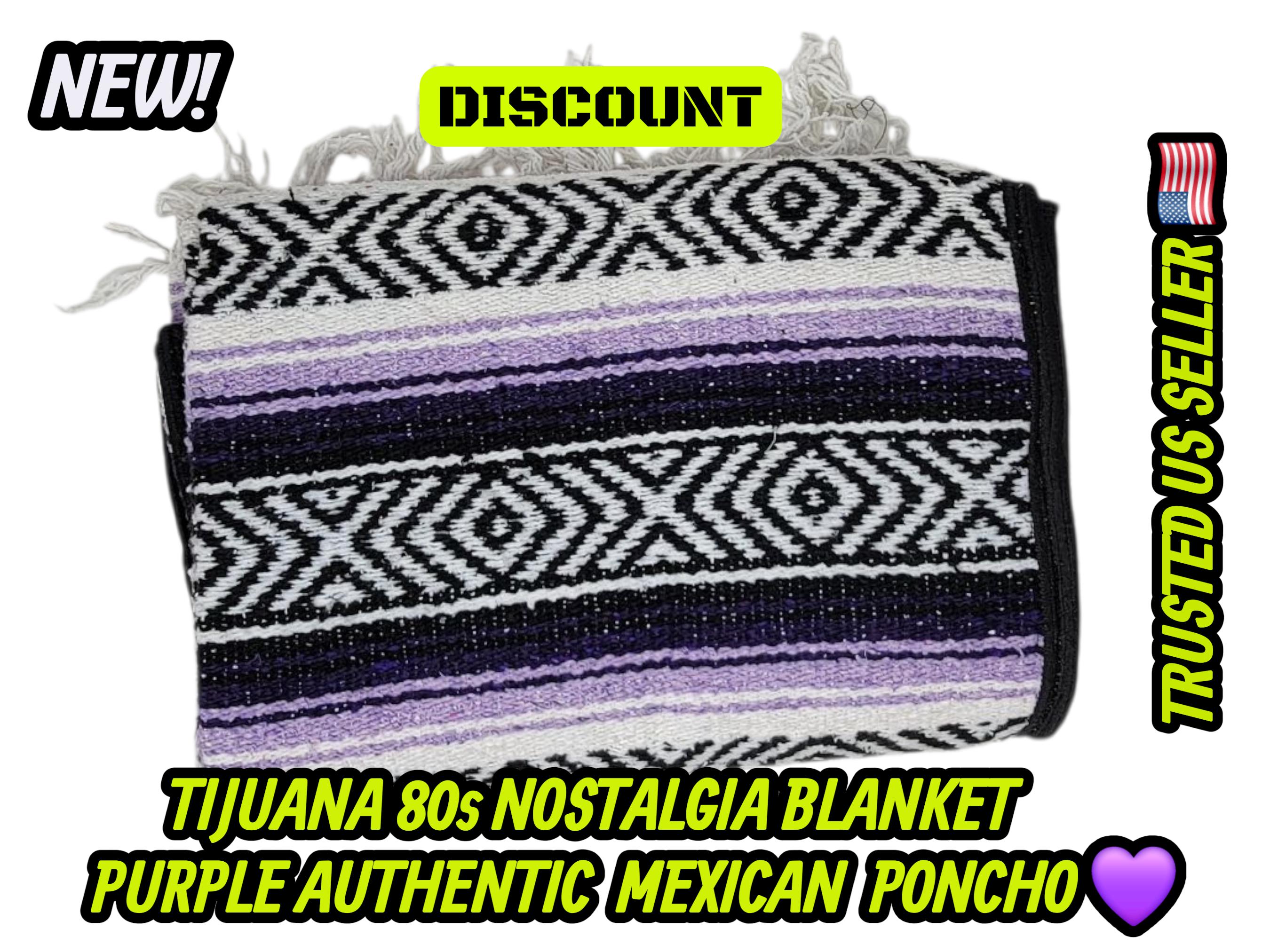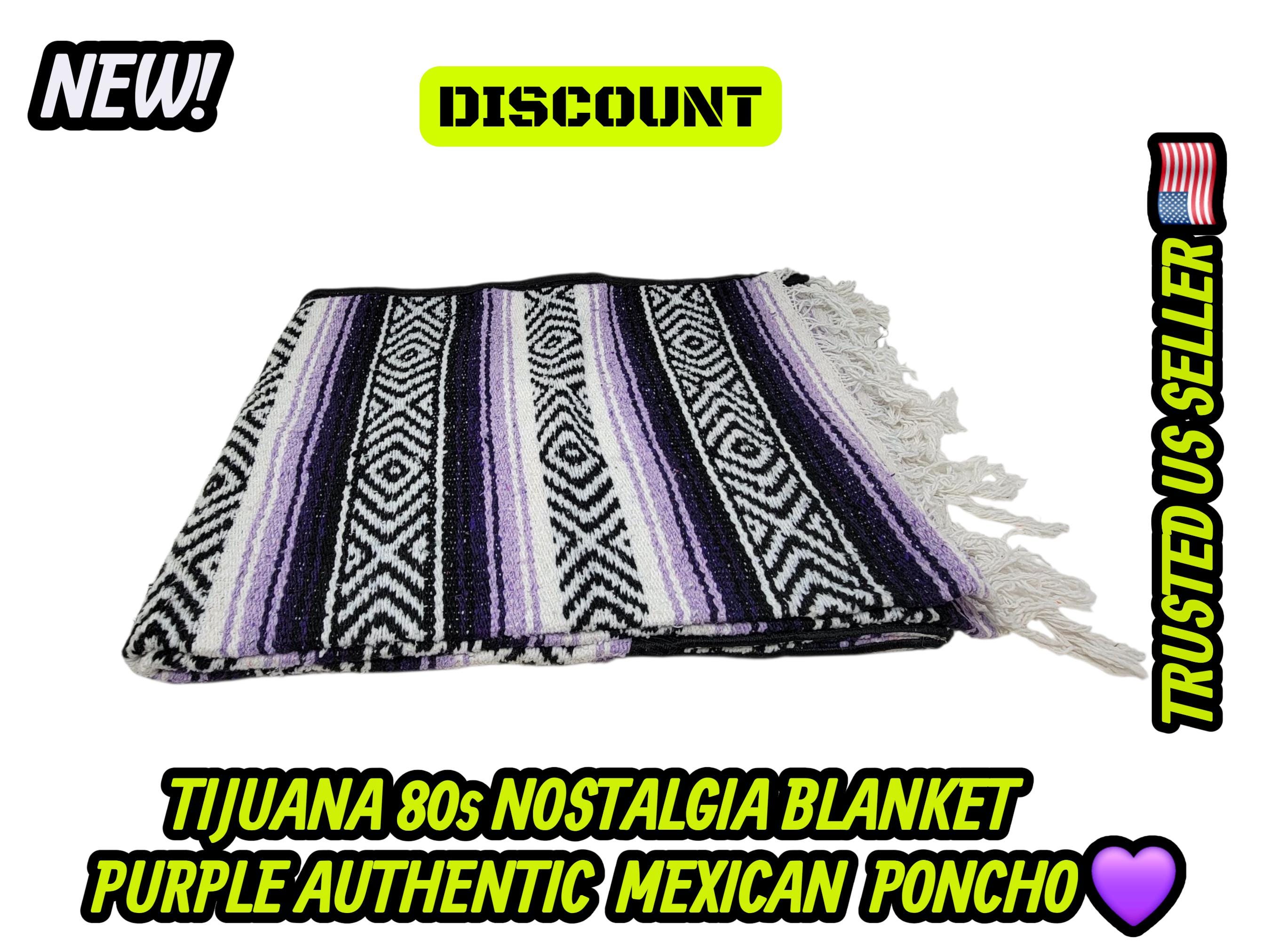 Mexican Falsa Poncho: purple white Striped Adult Serape
