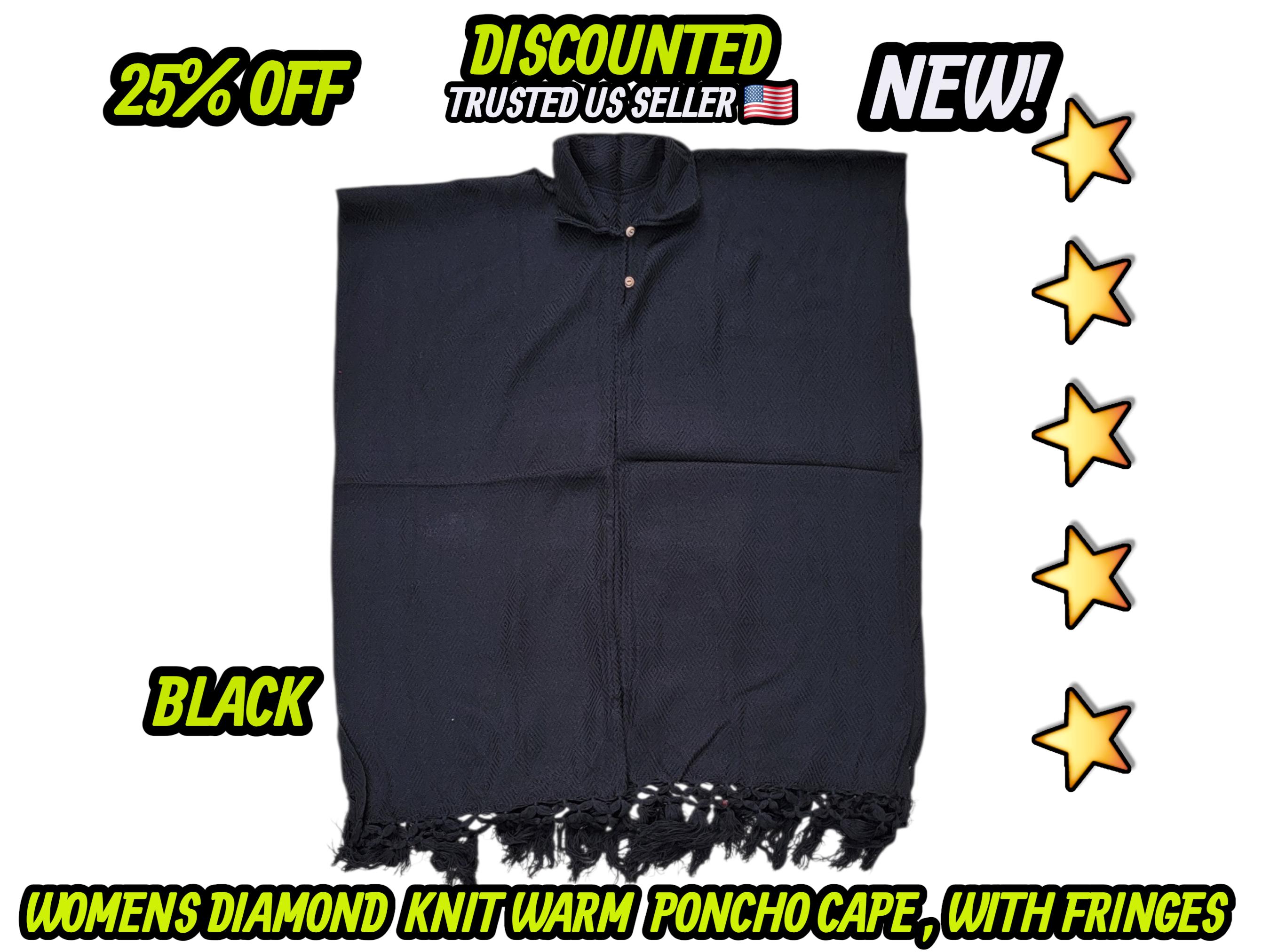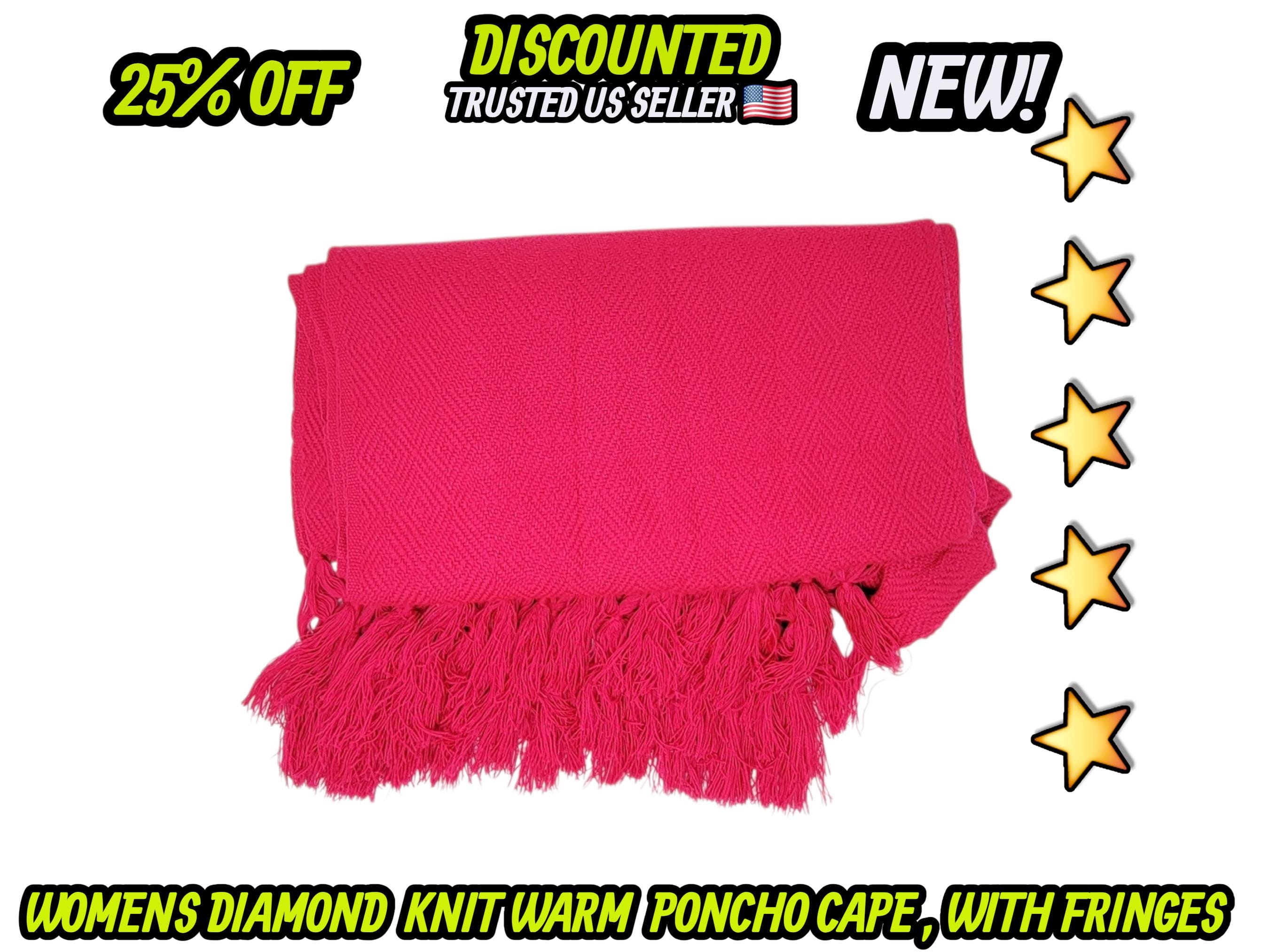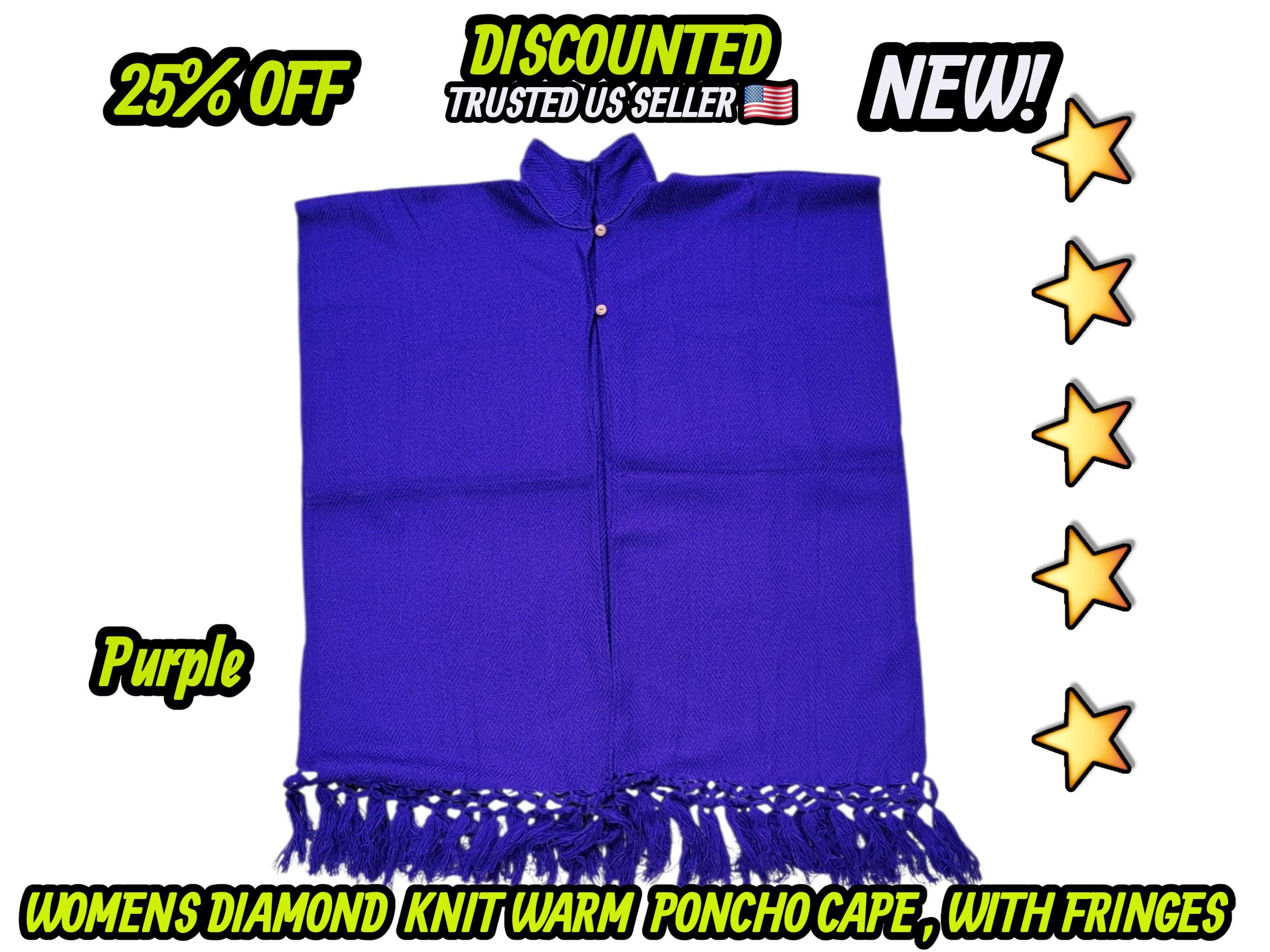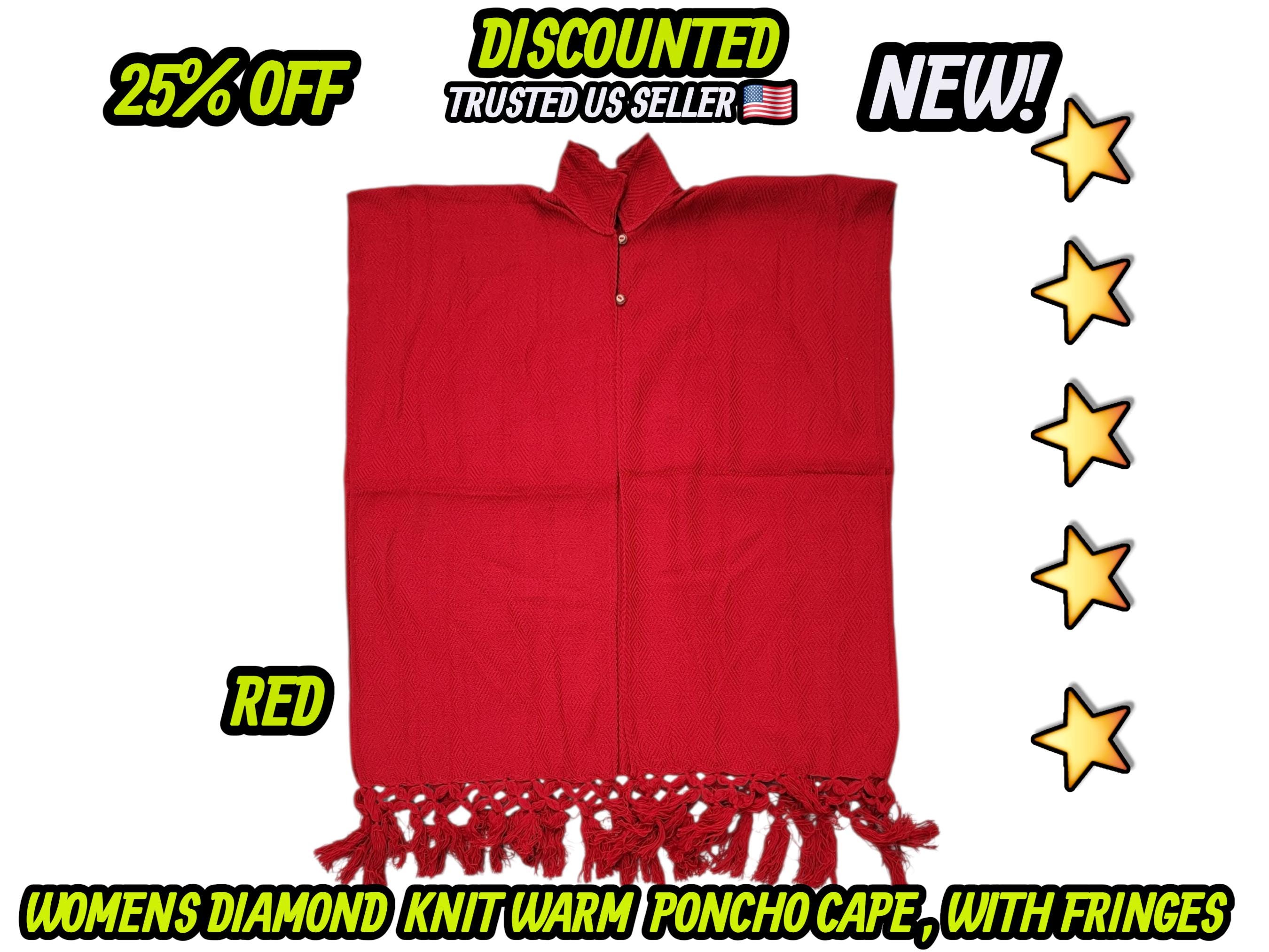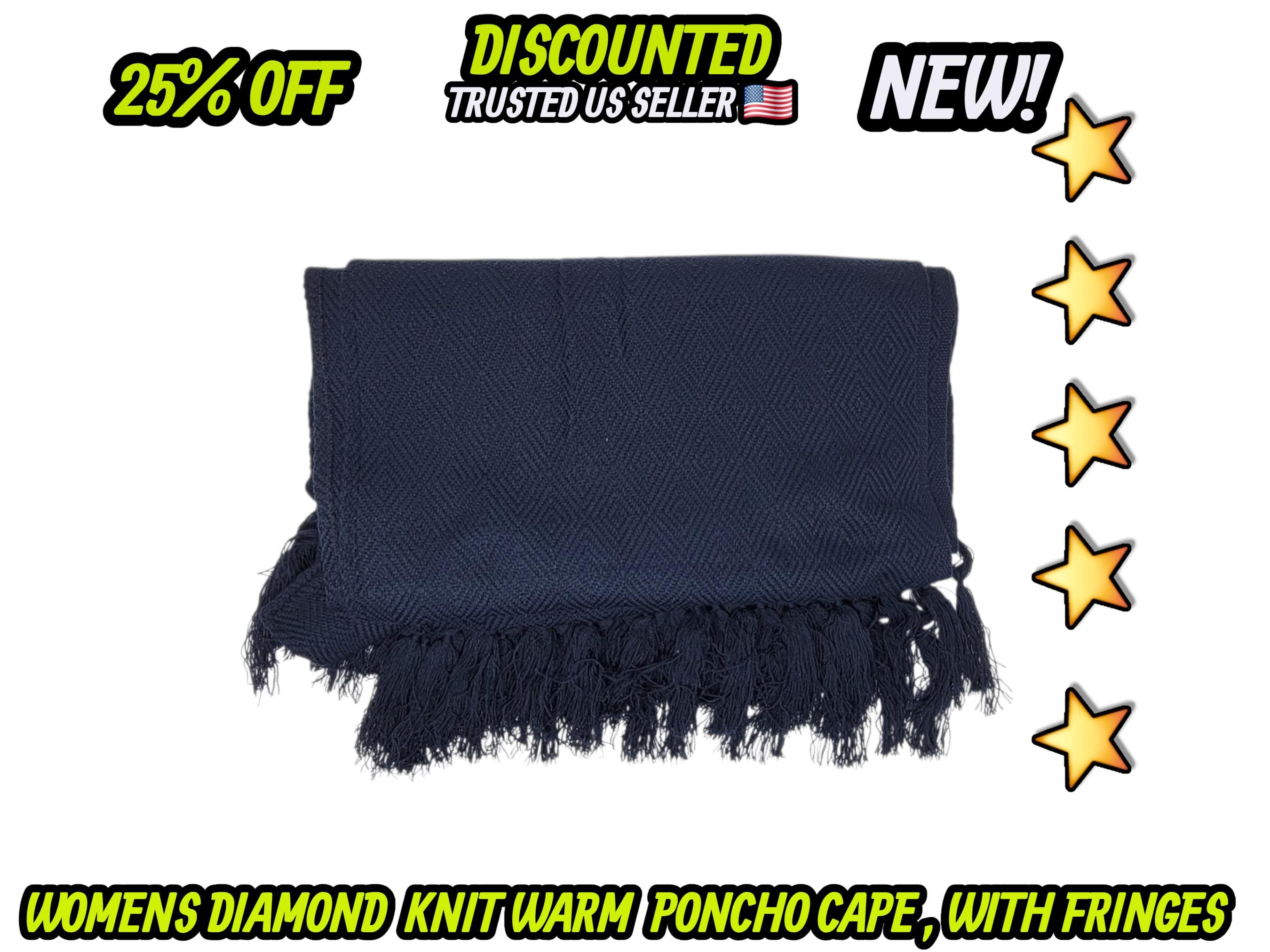 Ladies Mexican poncho cloak cape diamond pattern knit outer wear warm & light