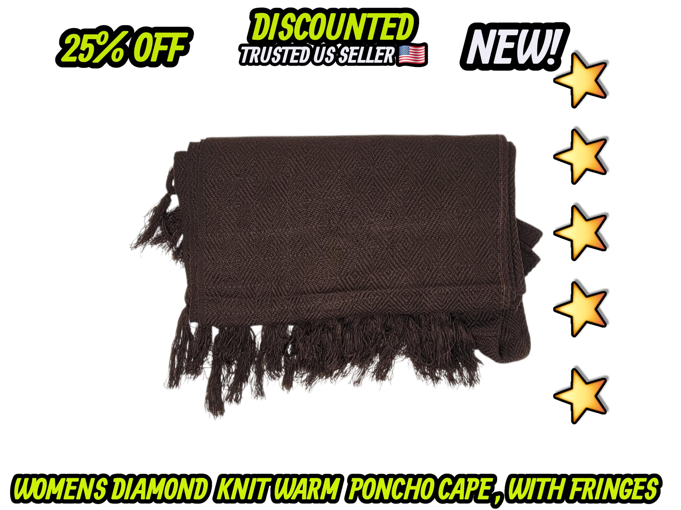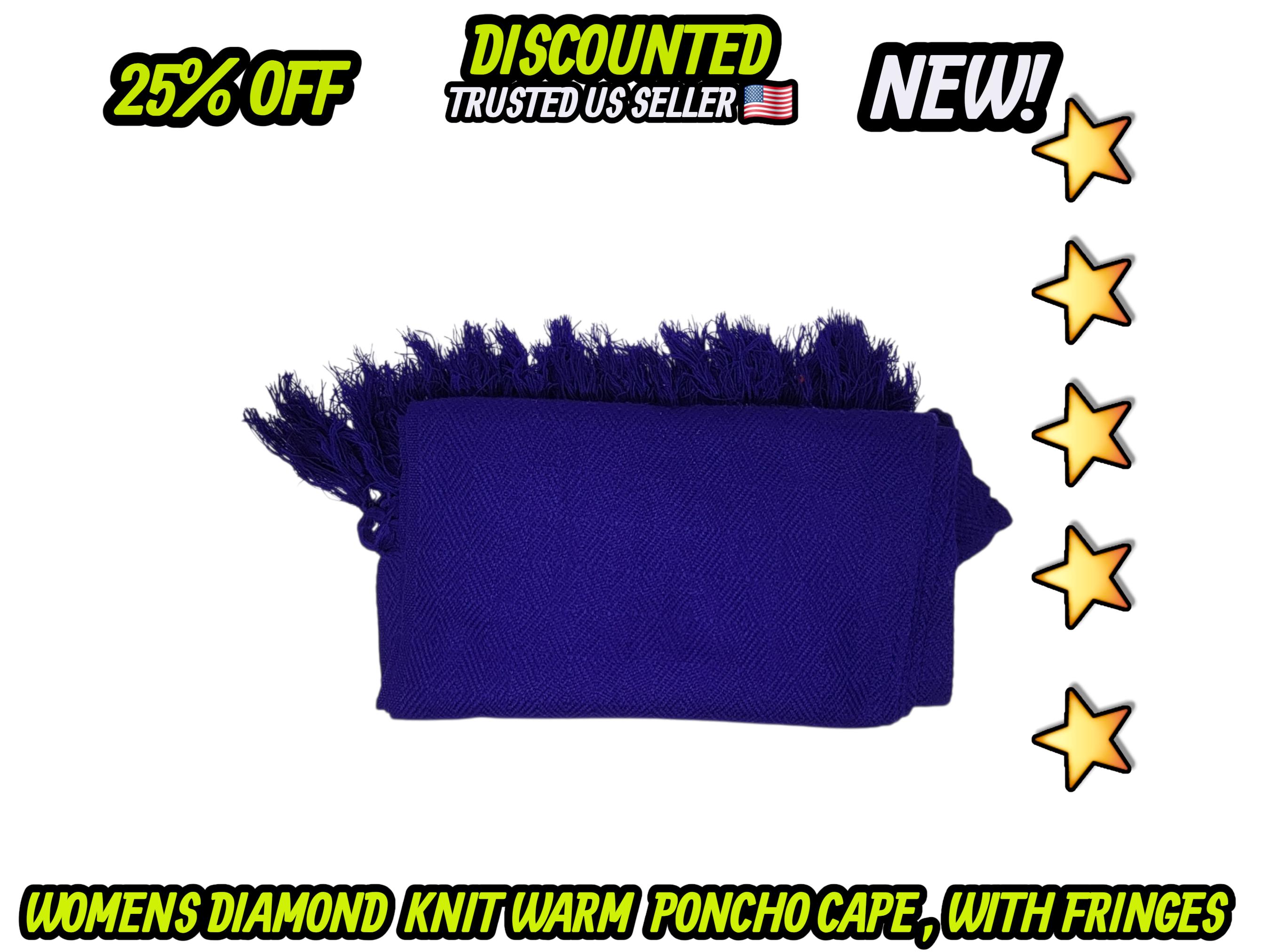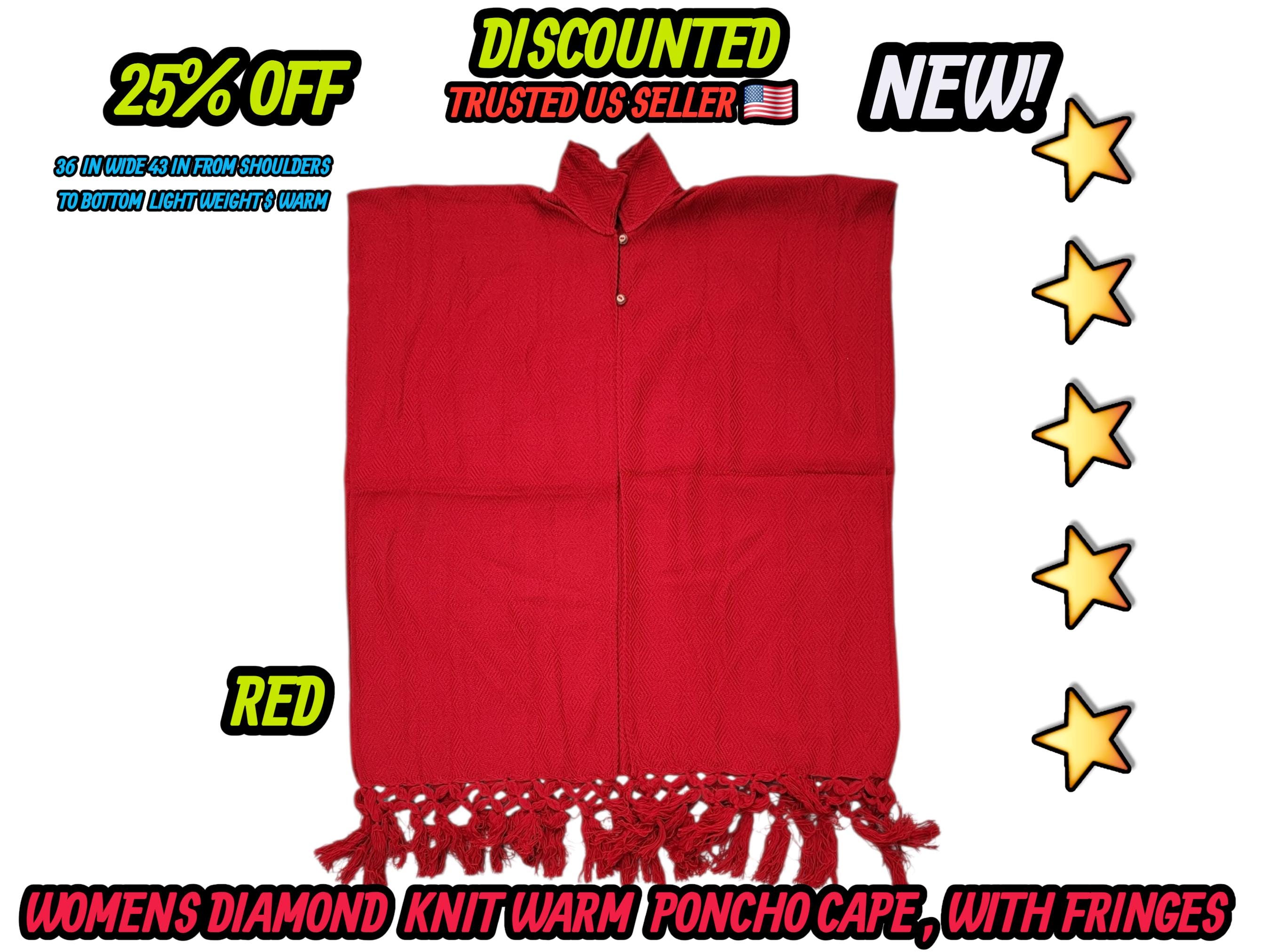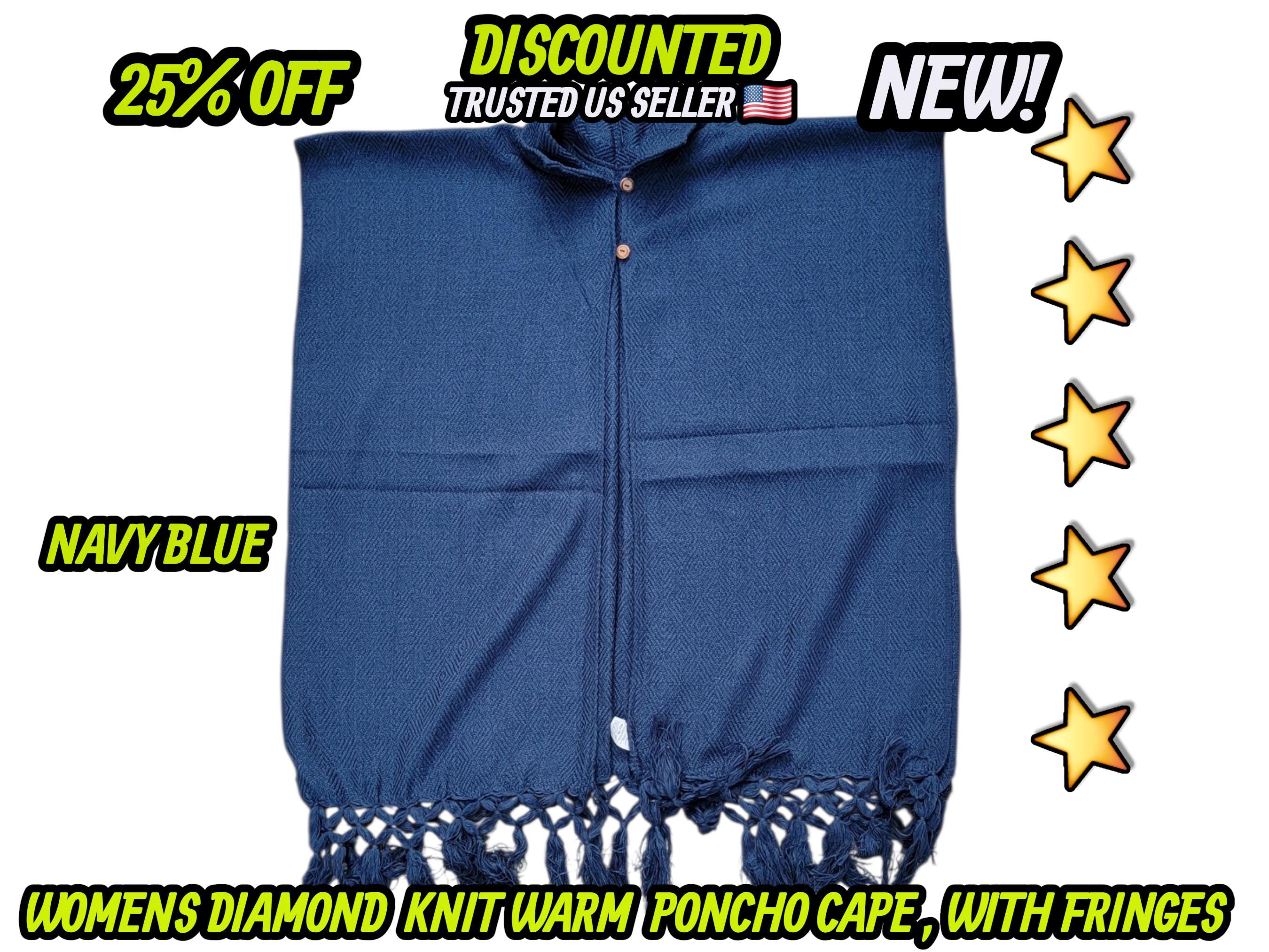 Ladies Mexican poncho cloak cape diamond pattern knit outer wear warm & light