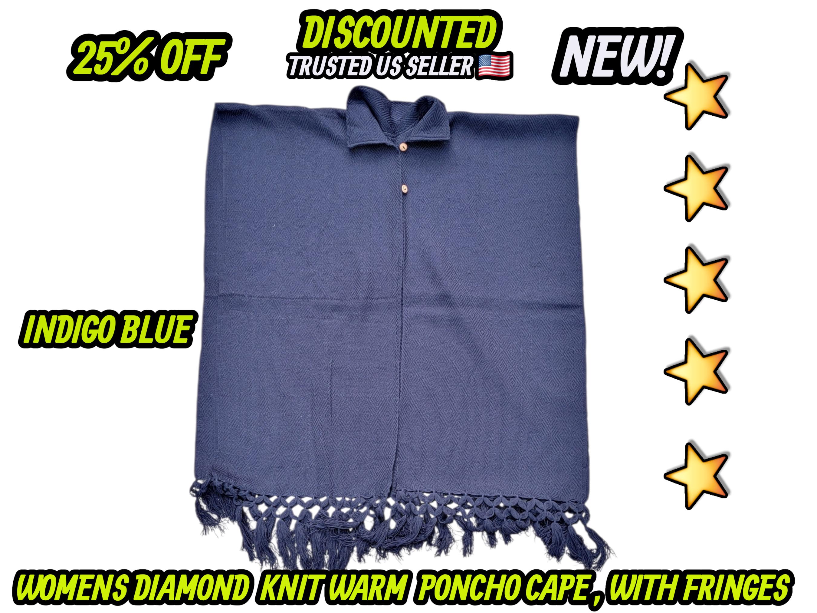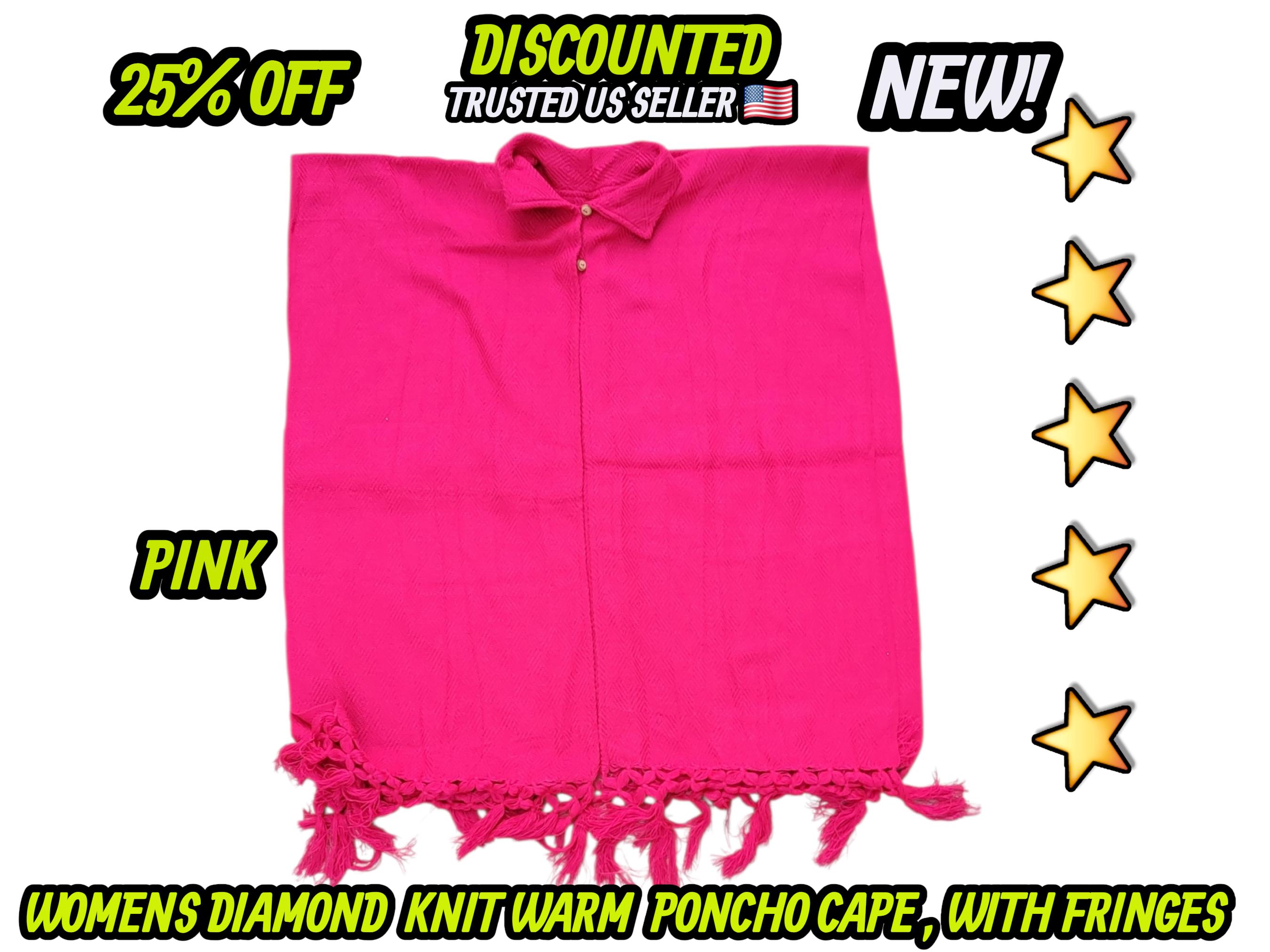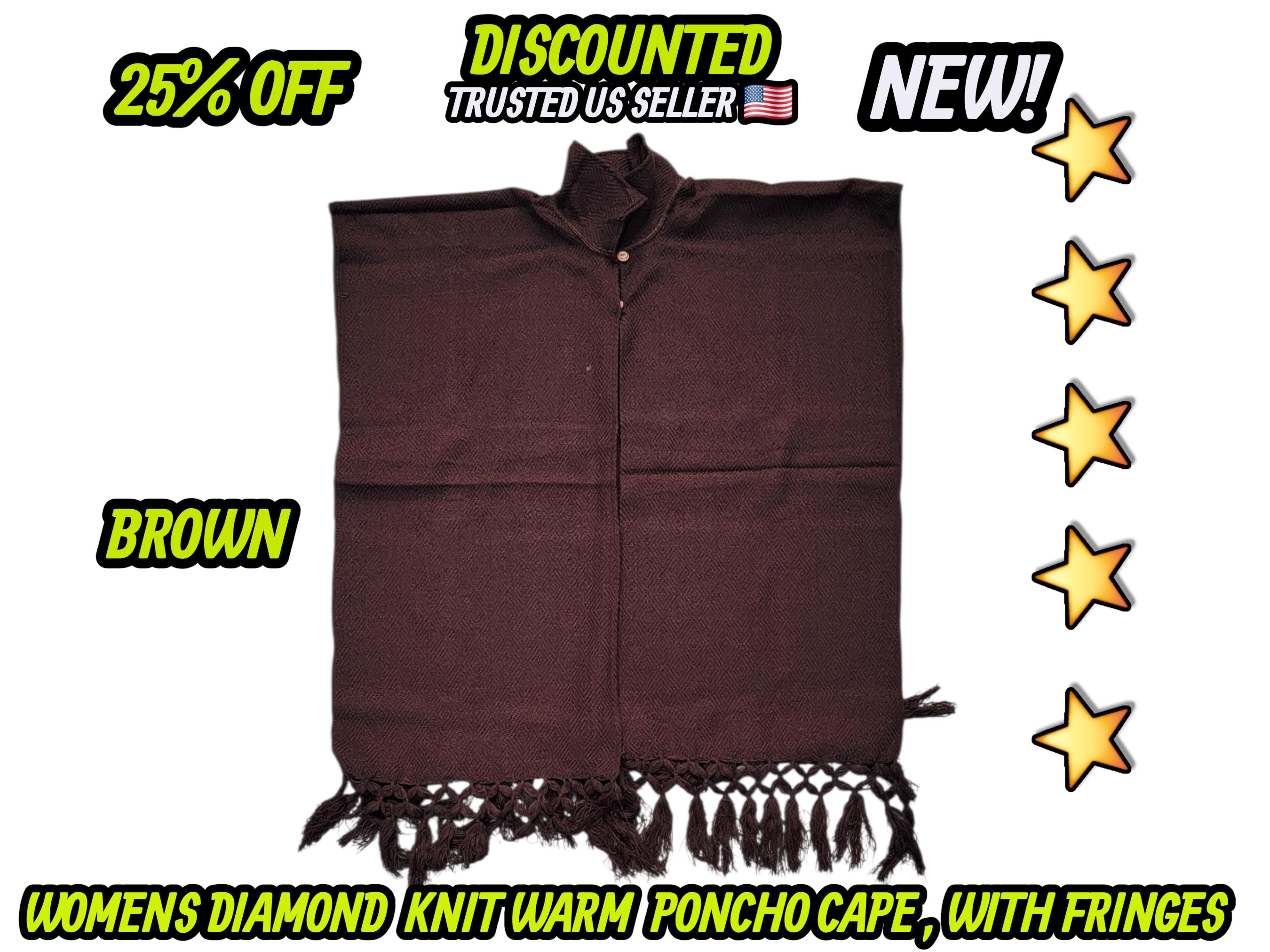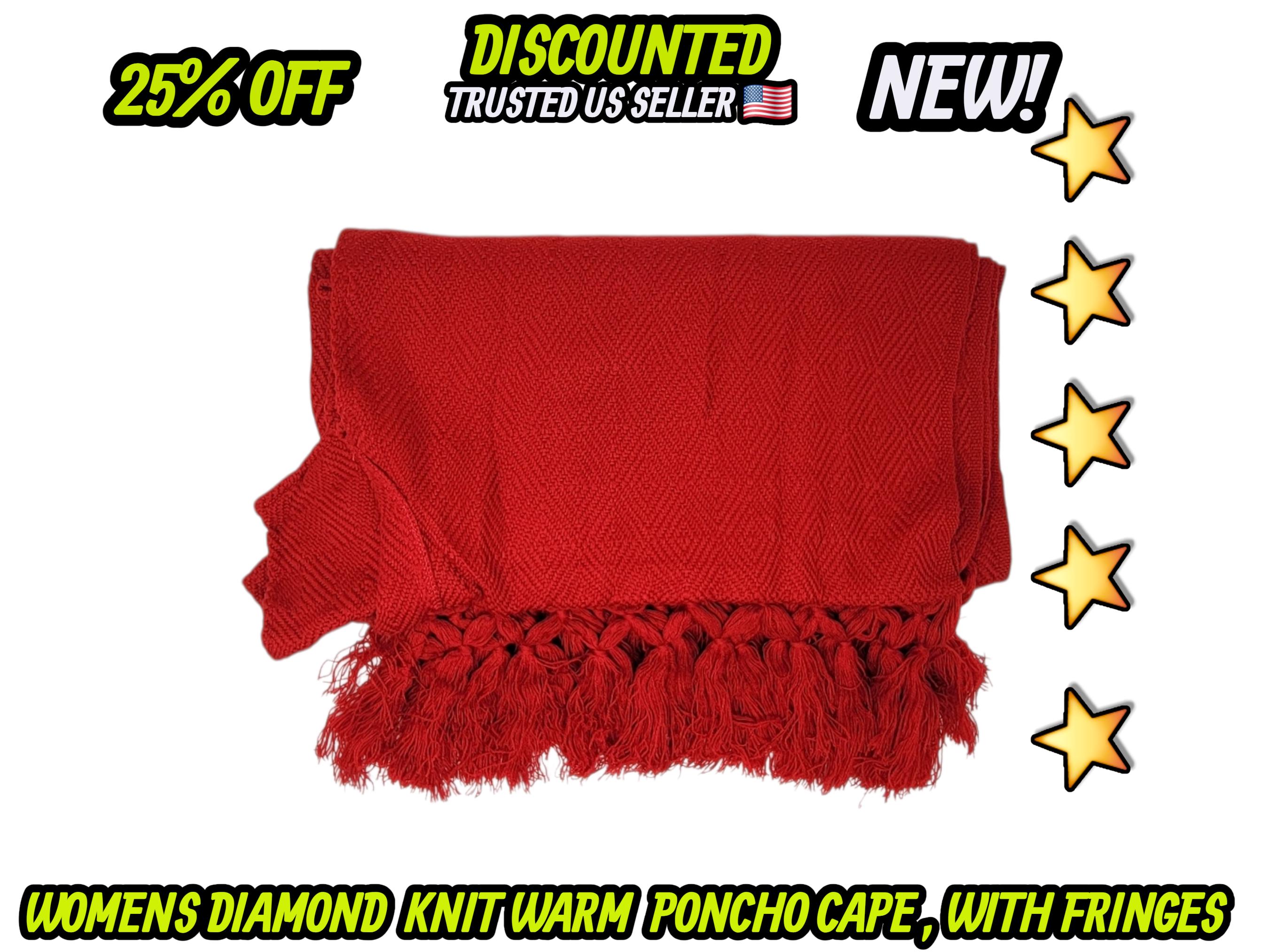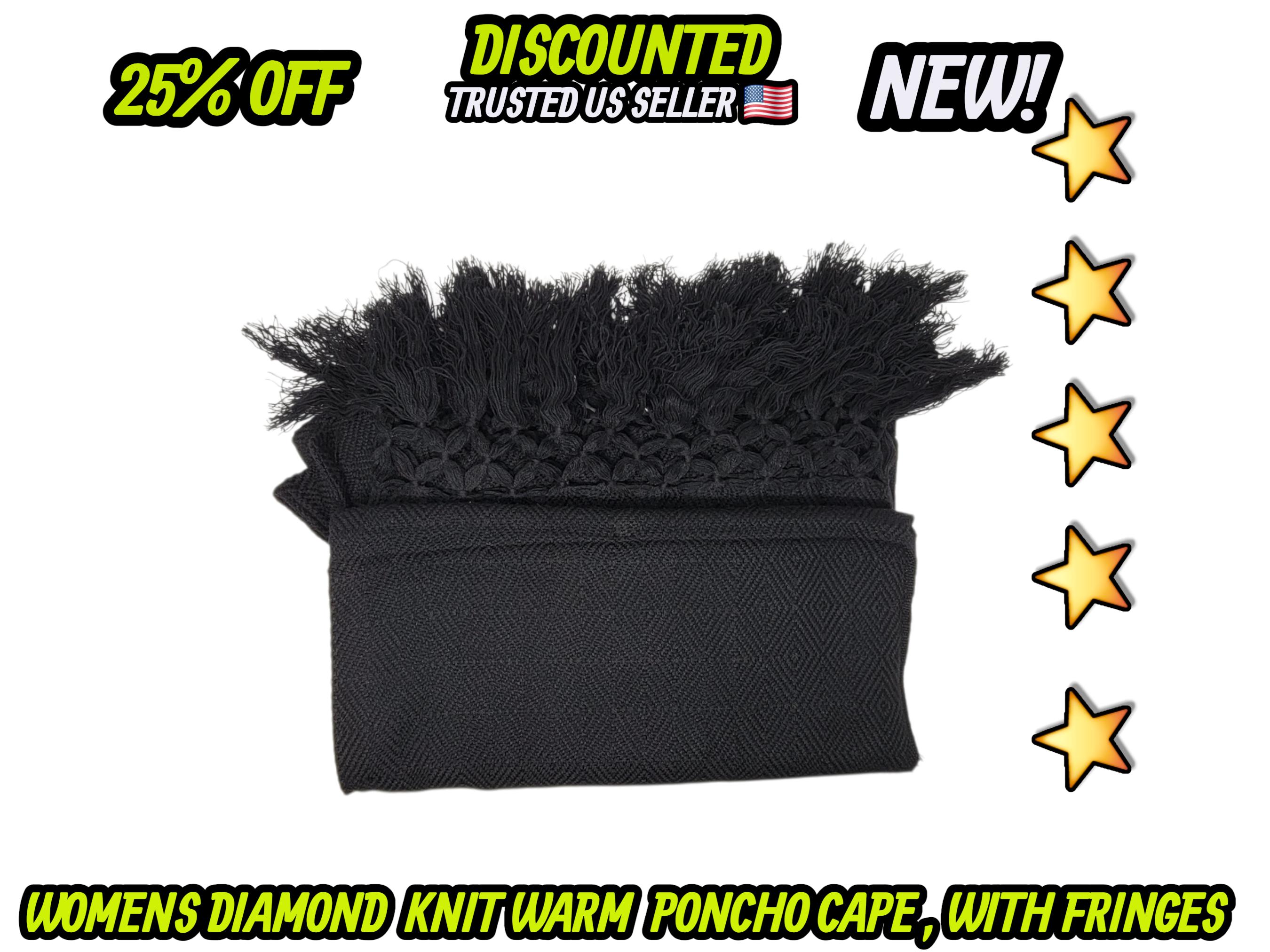 Ladies Mexican poncho cloak cape diamond pattern knit outer wear warm & light