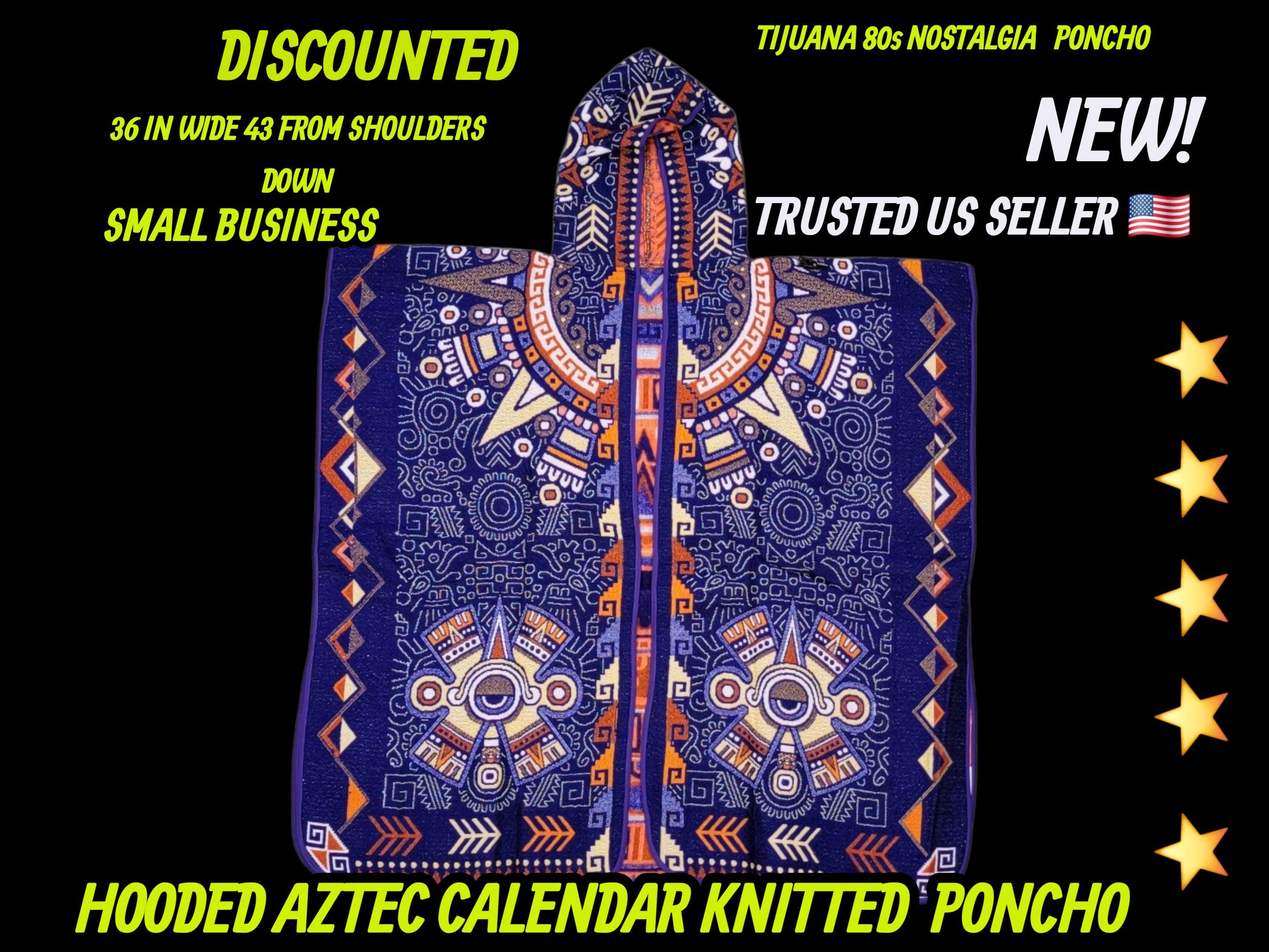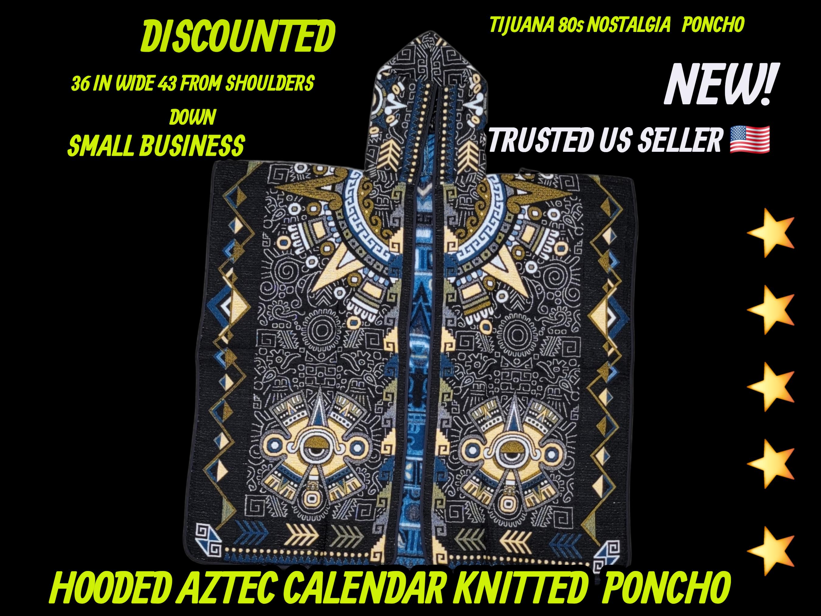 ☀️ Legacy of the Sun: Handmade Aztec Calendar Poncho Cape 🌙
