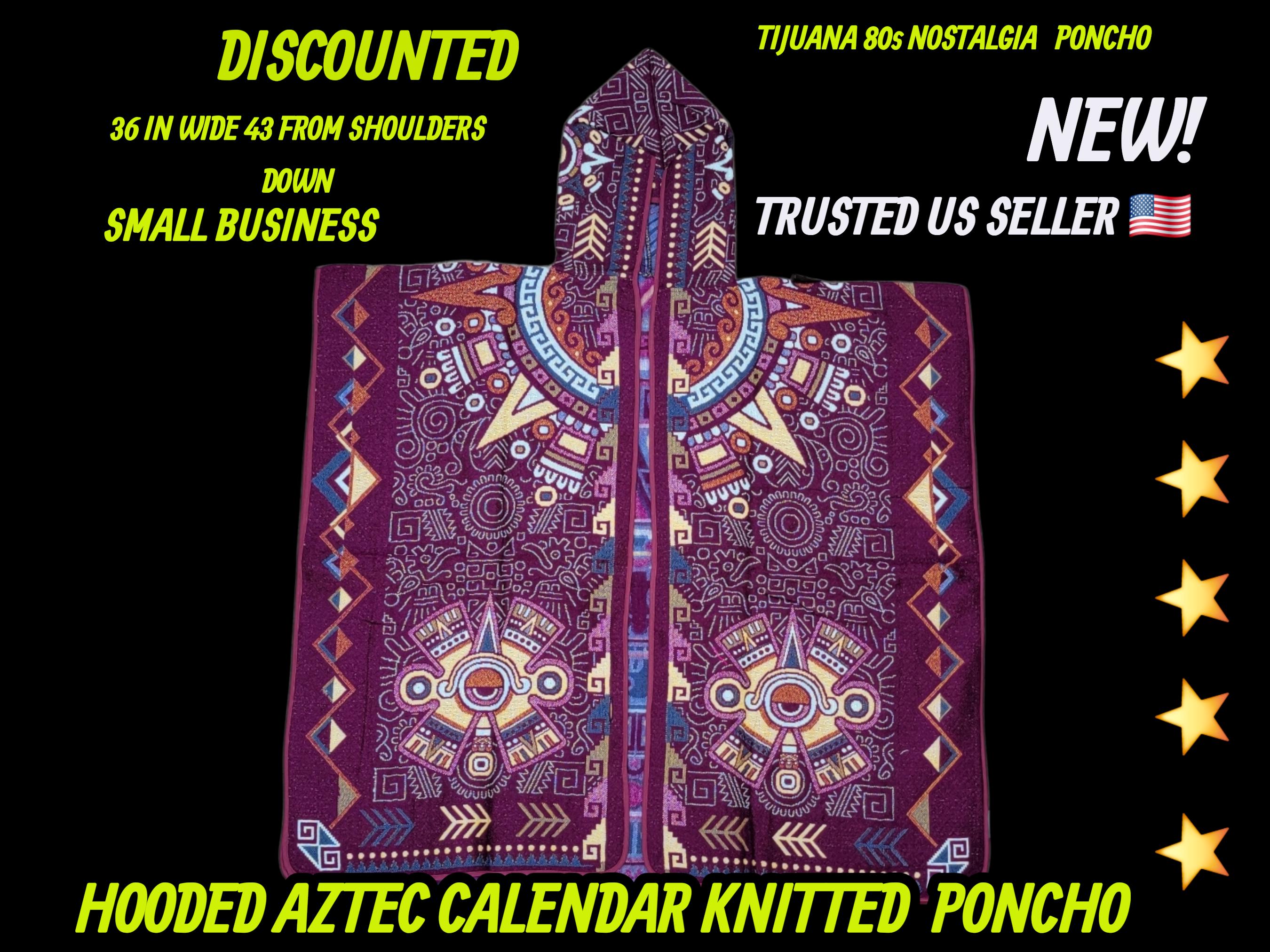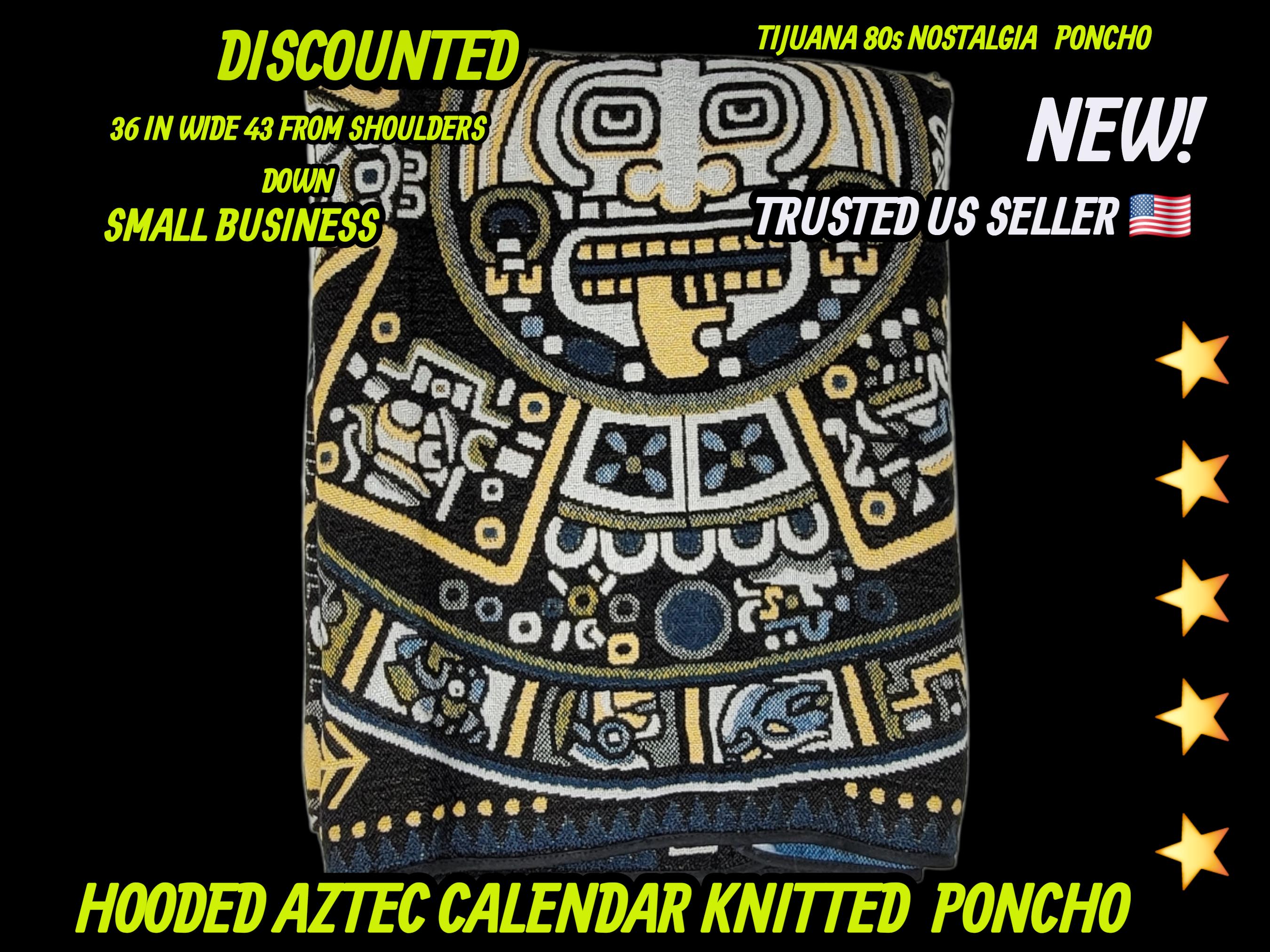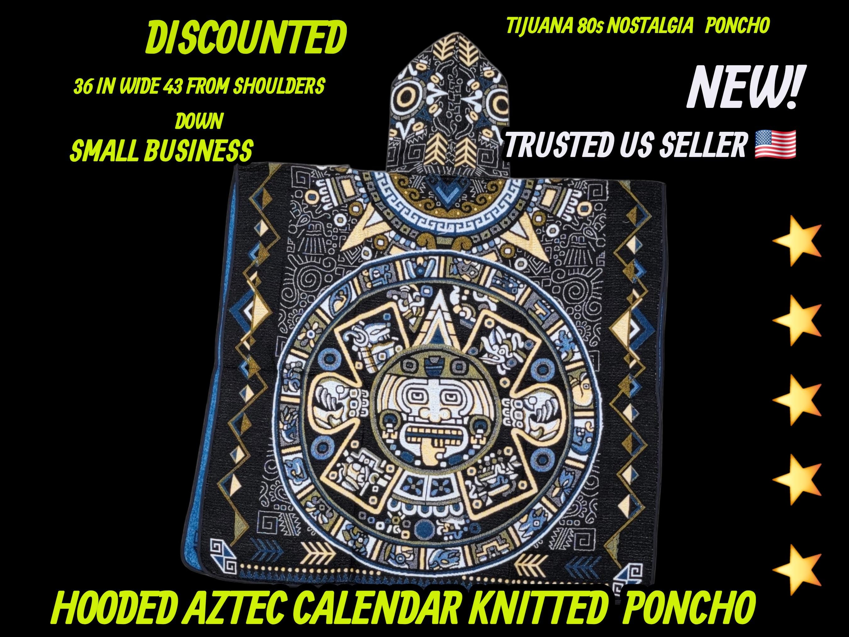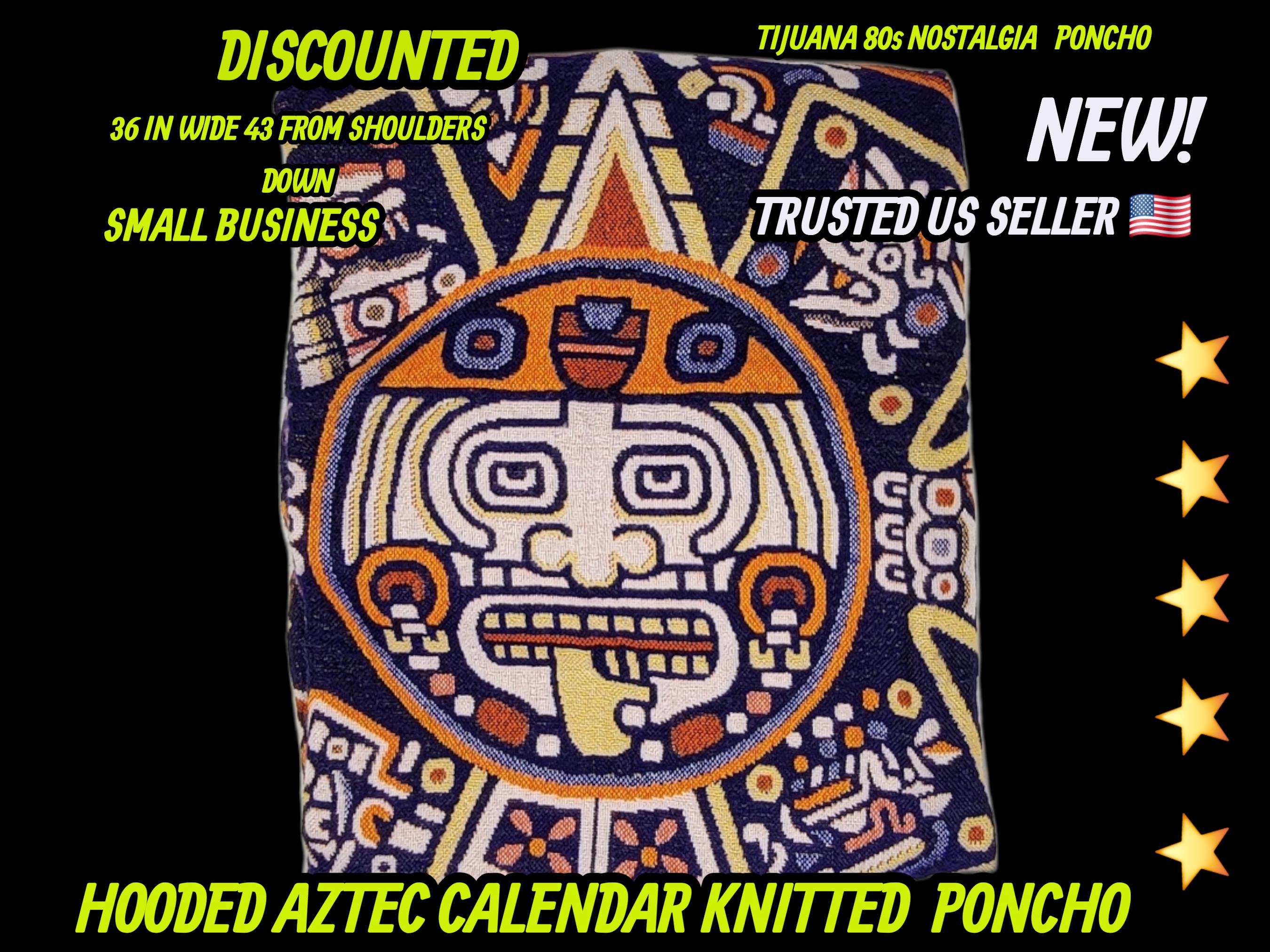 * Striking Aztec Calendar Design: The majestic Aztec Calendar is prominently displayed on the back of the cape, meticulously woven into the fabric. This intricate symbol represents time, cosmology, and the rich history of Mexico.