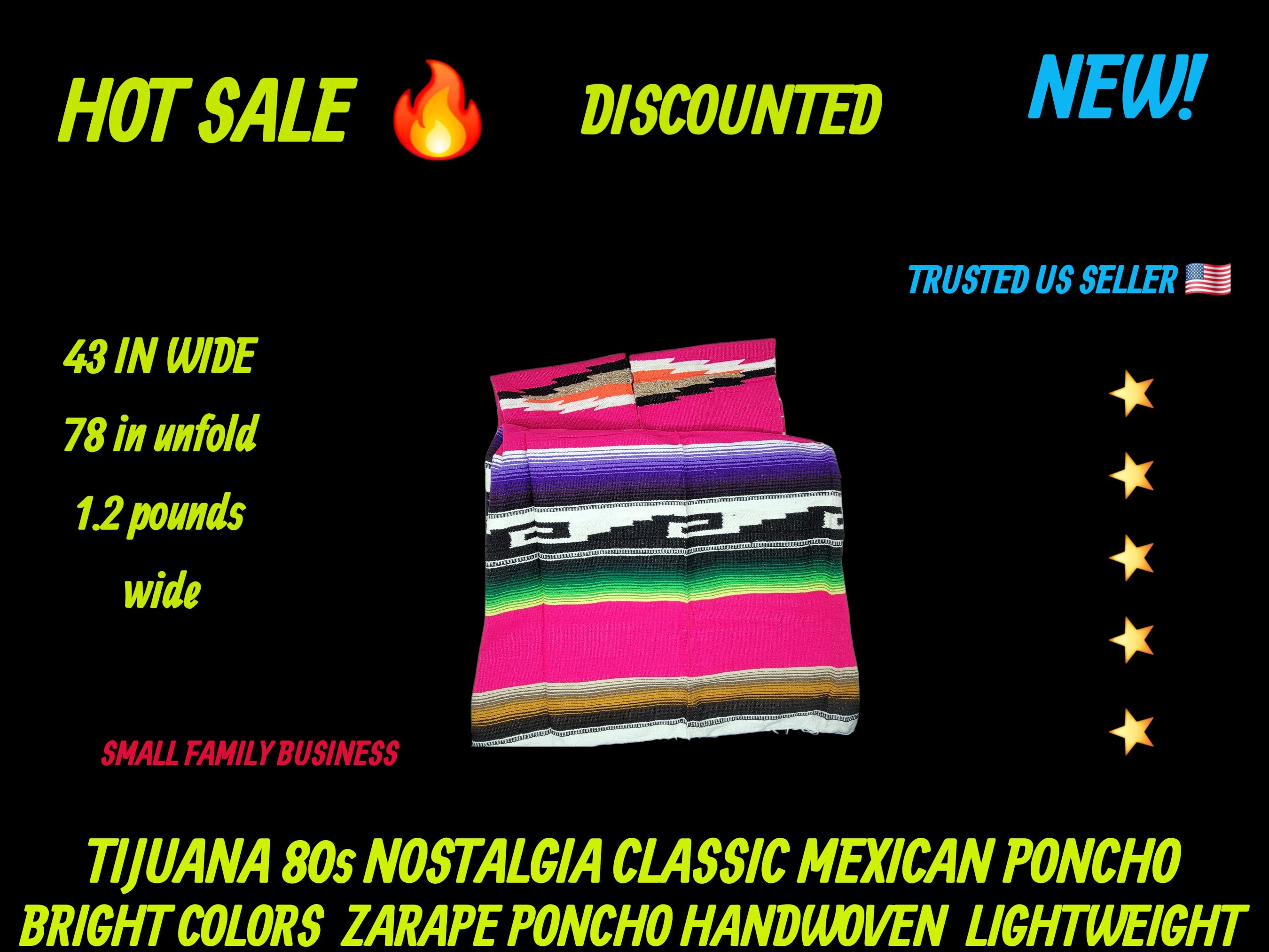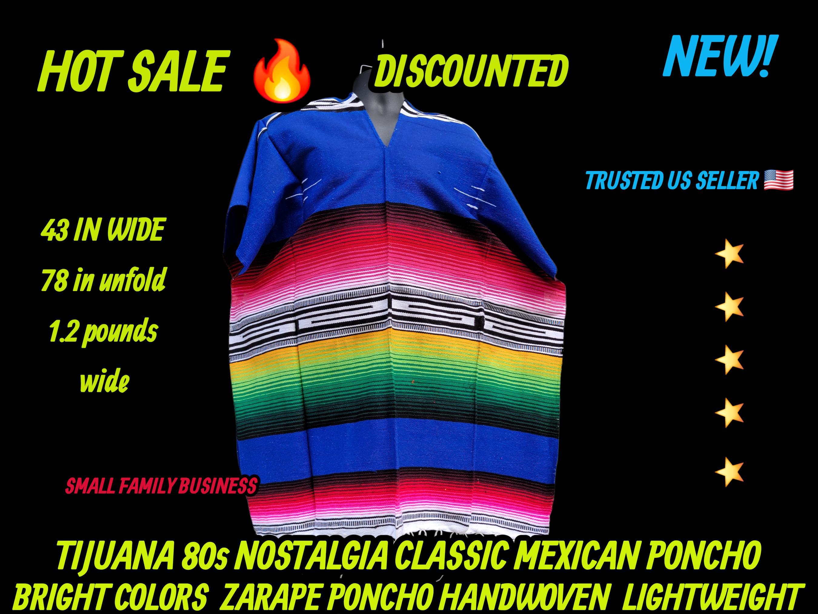 Handmade Mexican Sarape Poncho – Vibrant Diamond Edition