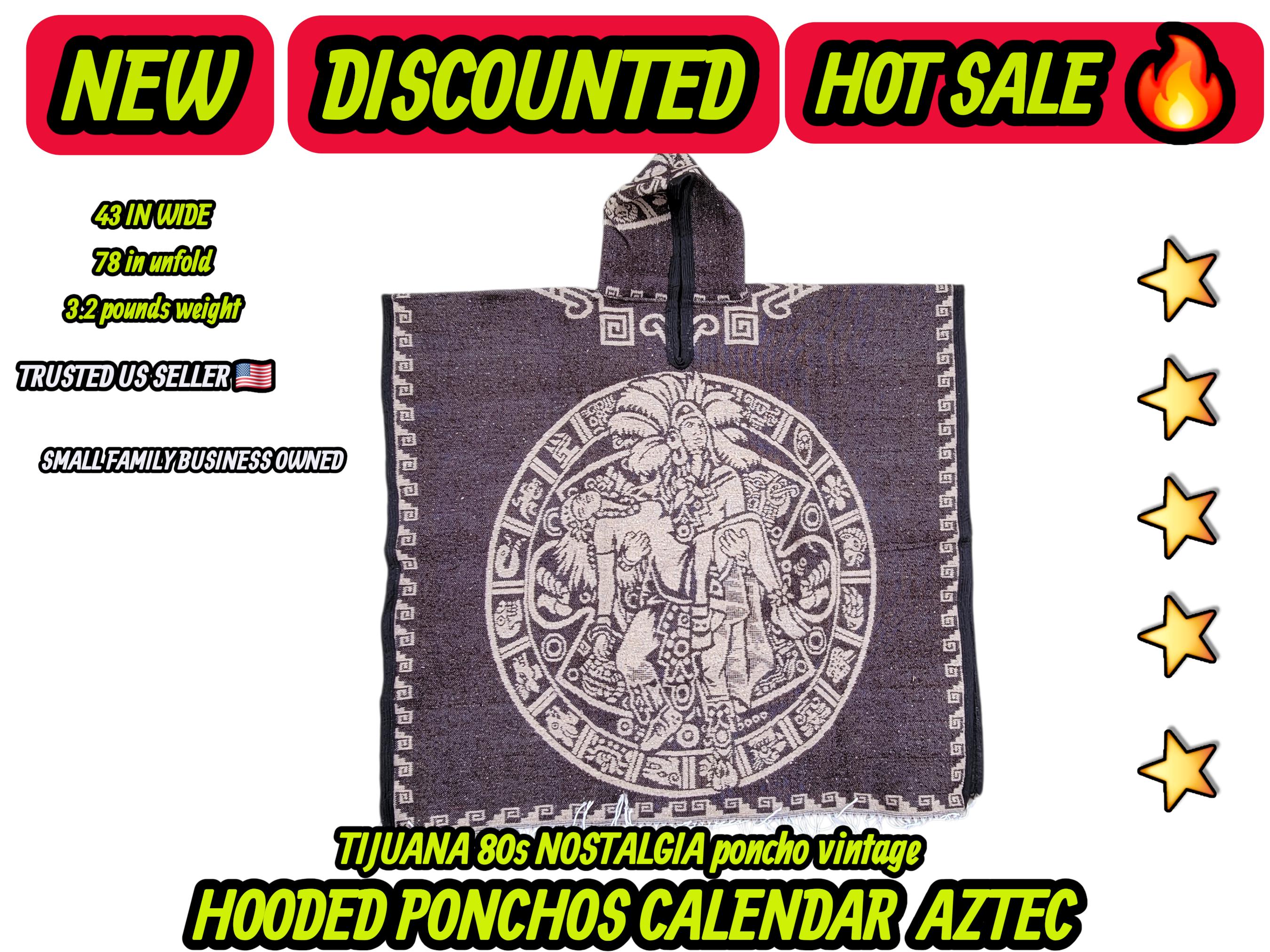 Aztec calendar mexican hooded poncho traditional poncho gavan jorongo 5 de mayo warm