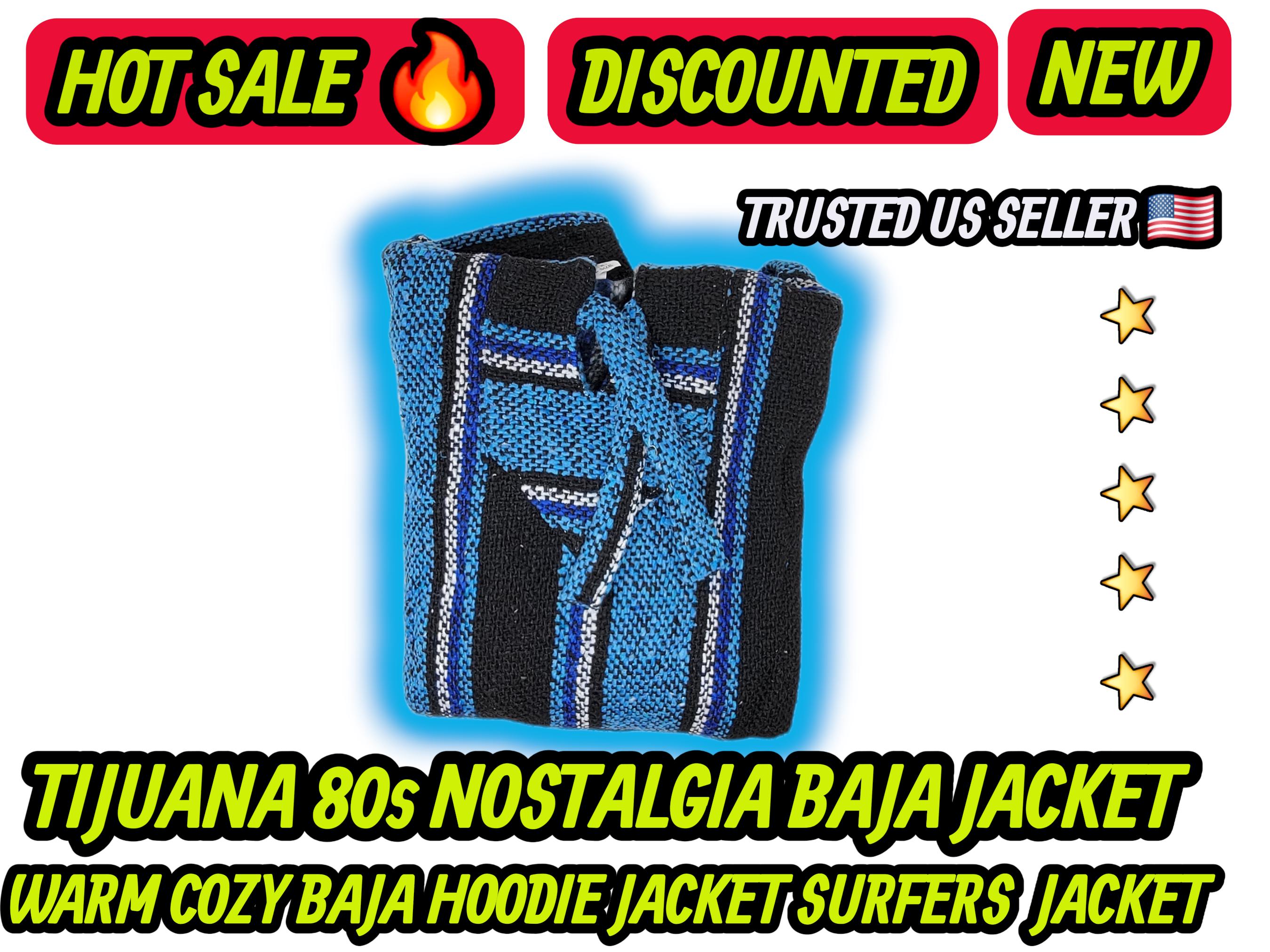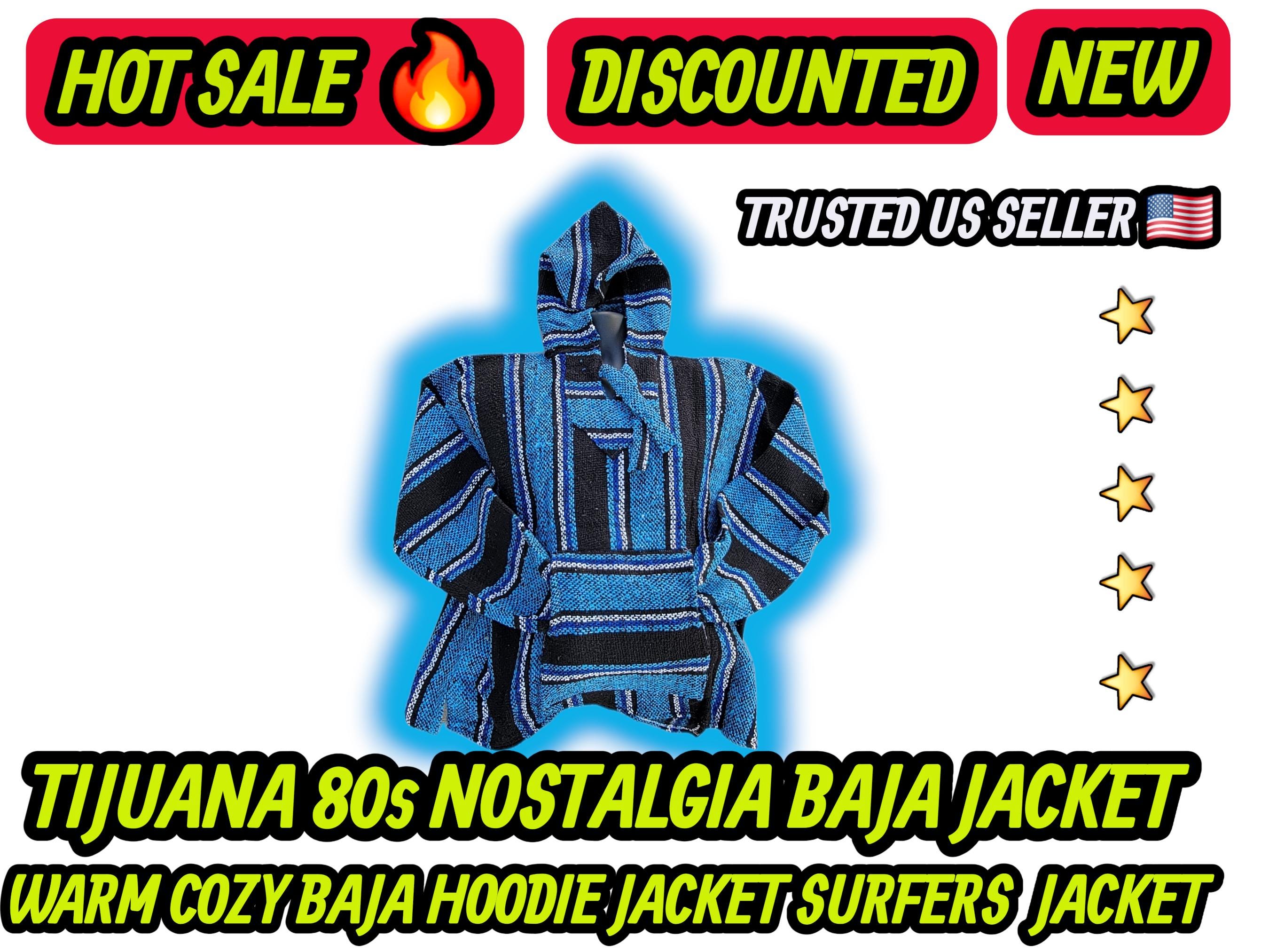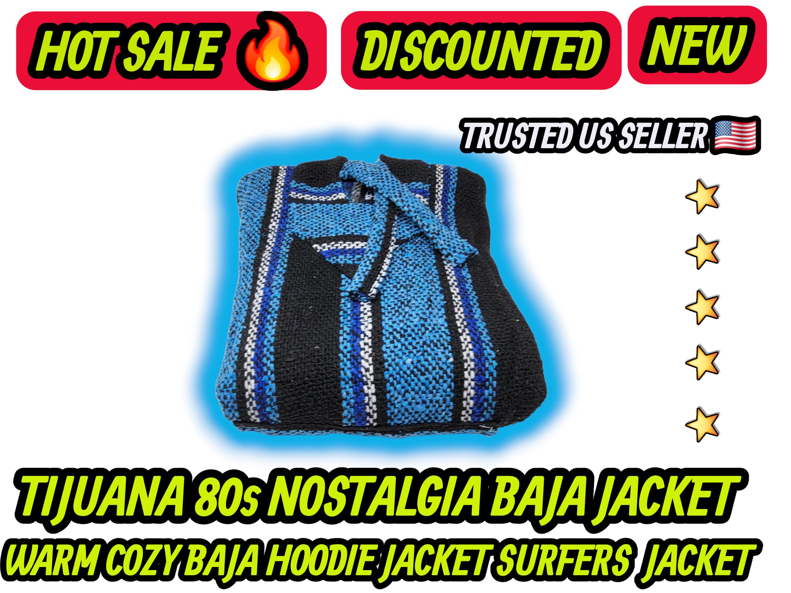 genuine mexican blue & black colors baja jackets surfer hoodie pullover