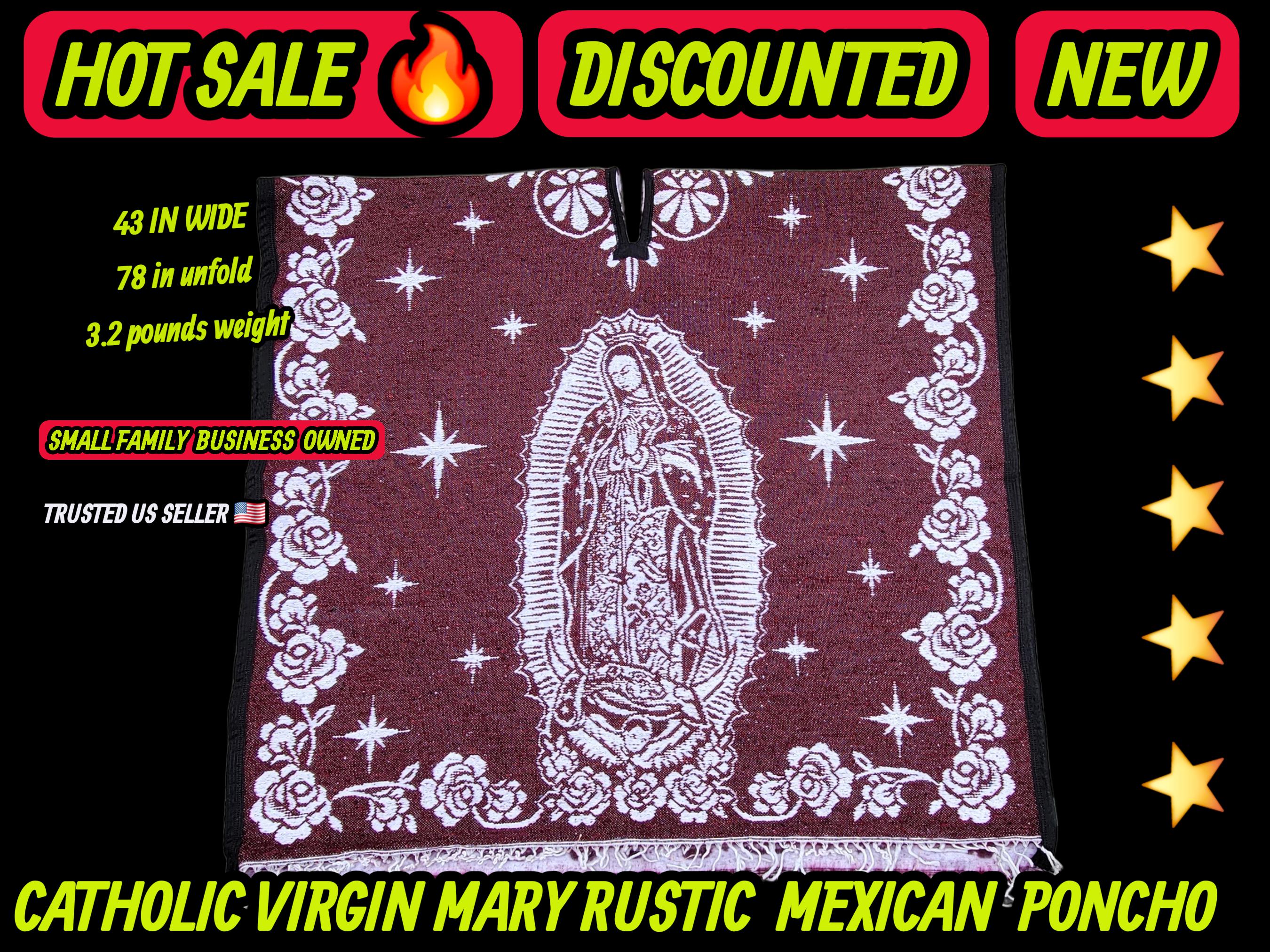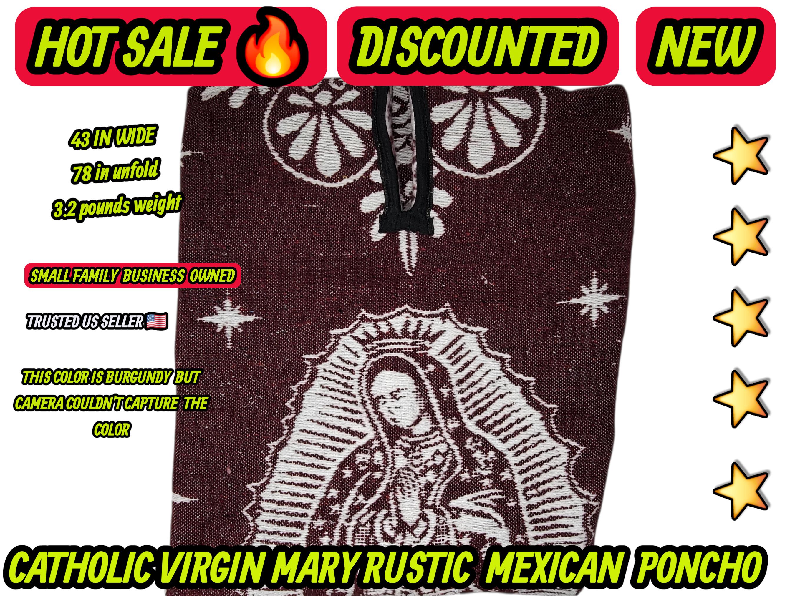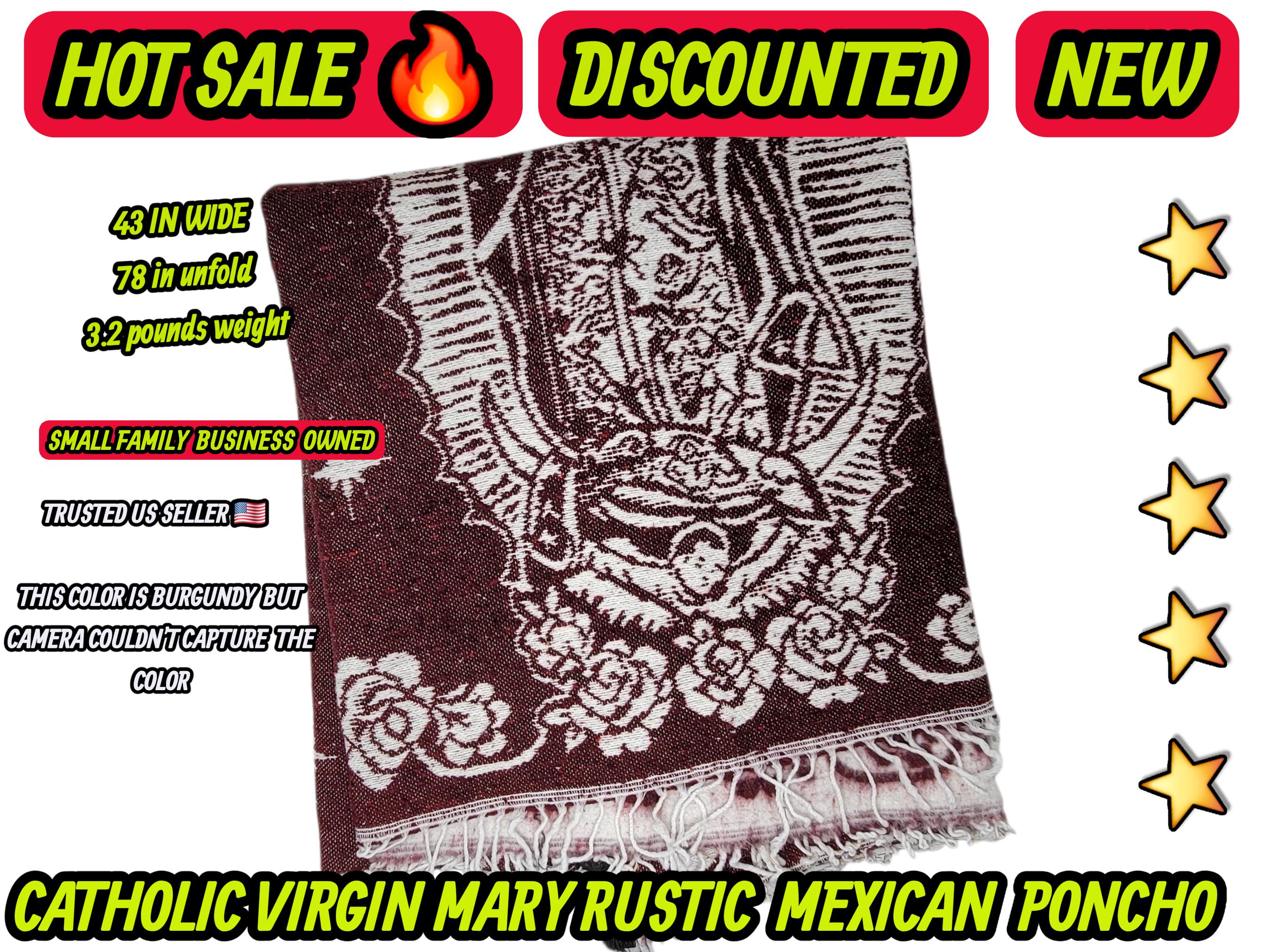 Adults Virgin mary Guadalupe virgencita Mexican rustic poncho burgundy
