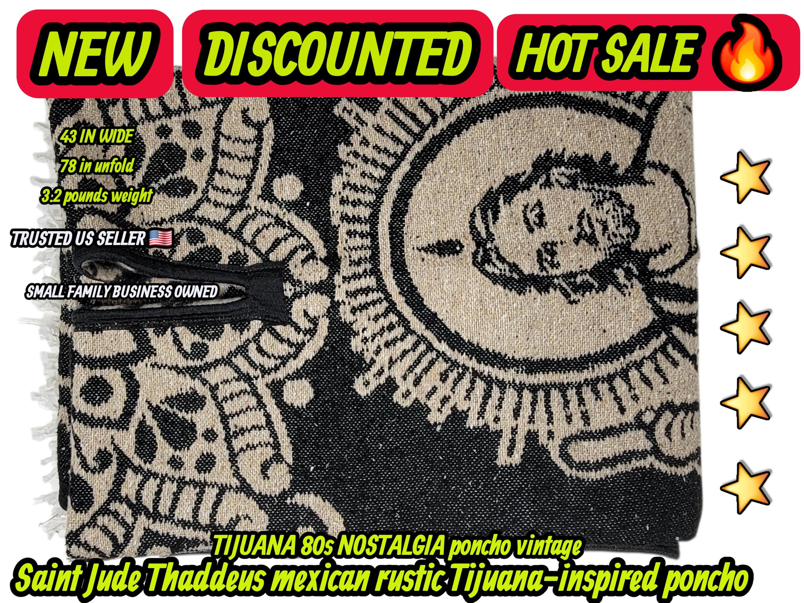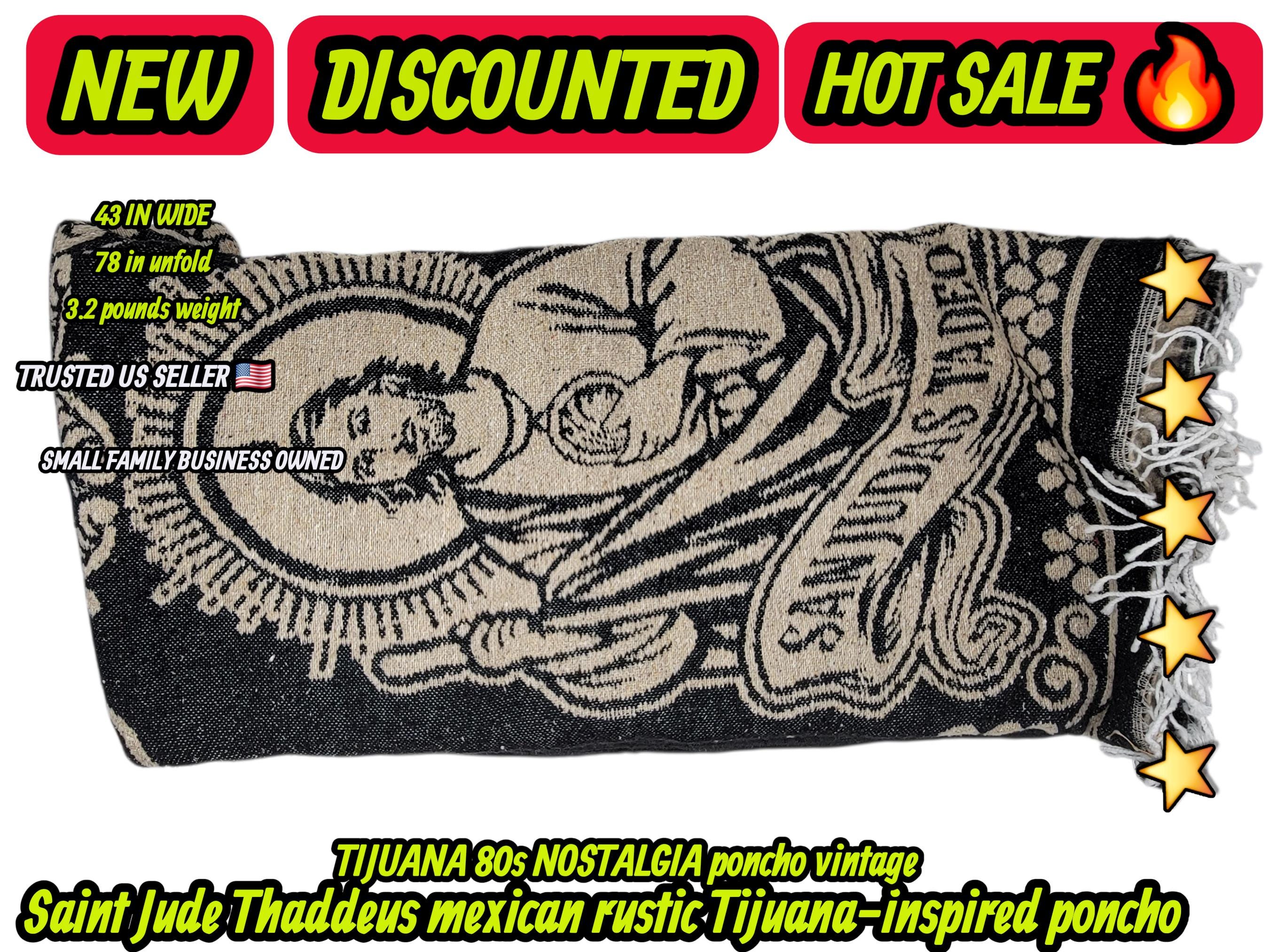 Authentic 1980s Style Tijuana Poncho – Virgin & St. Jude – US SELLER