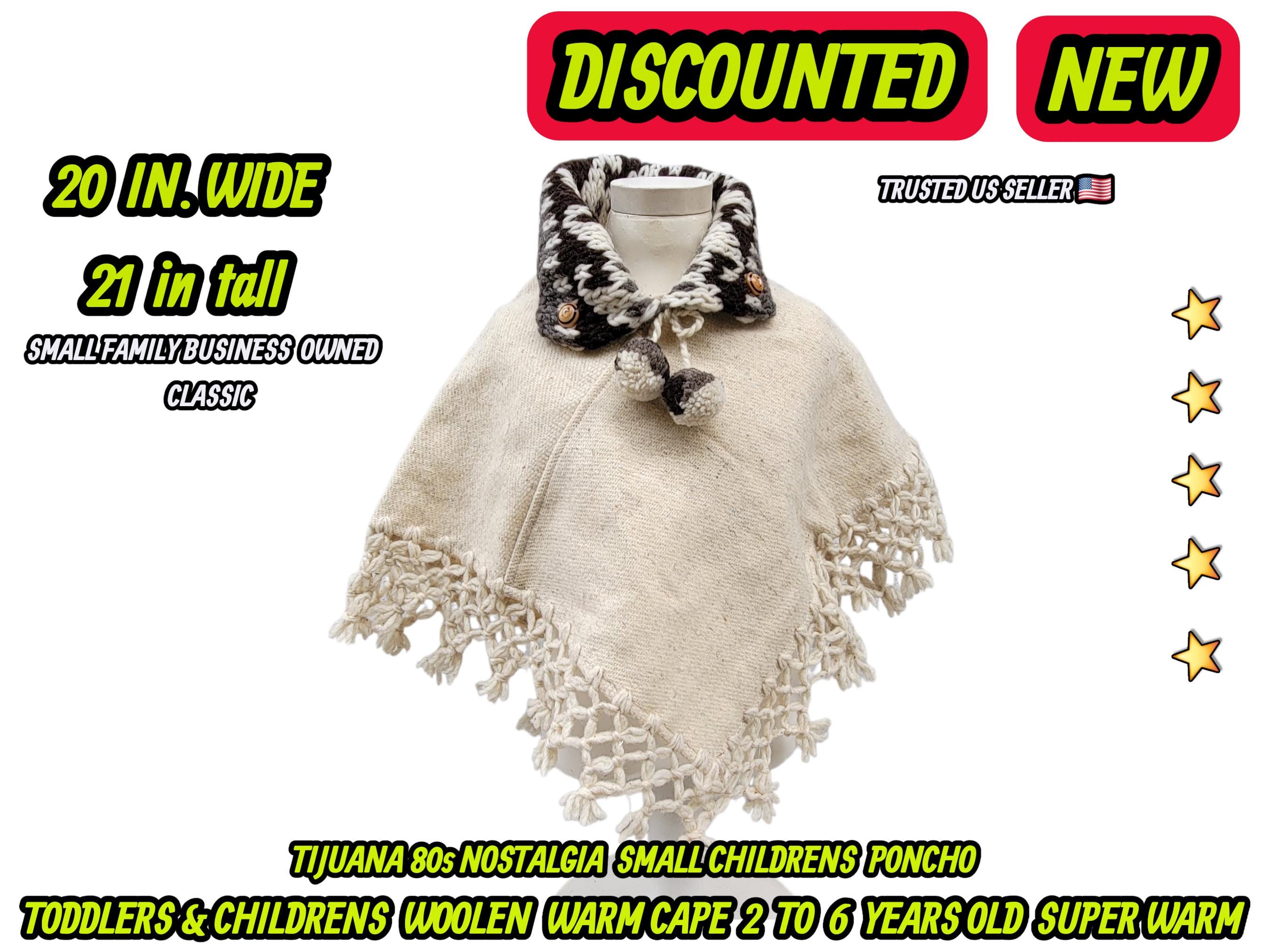 Mexican Wool Poncho for Kids - Vintage Tijuana Style - Handmade Fringe - Sustainable Ethical Fashion