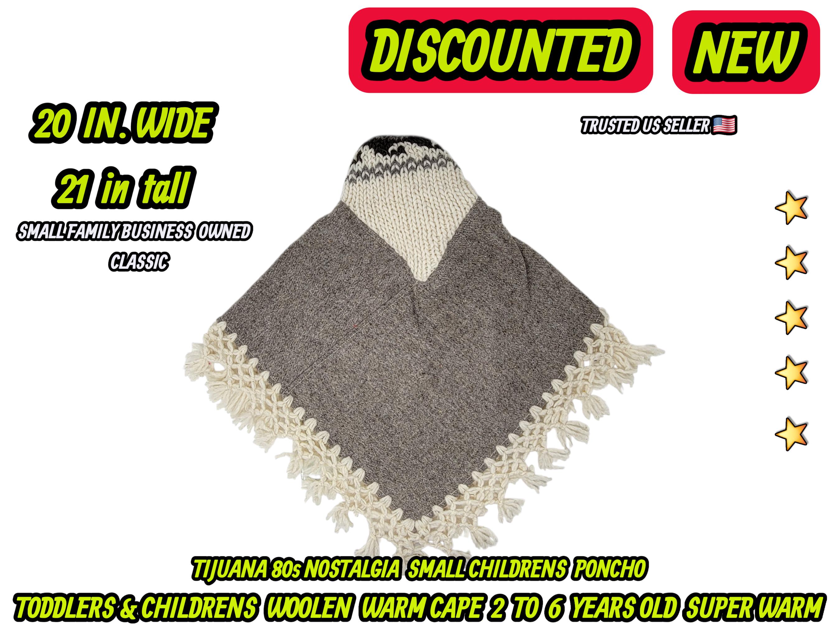 Authentic Hand-Woven Mexican Children’s Wool Poncho – 1980s Tijuana Nostalgia