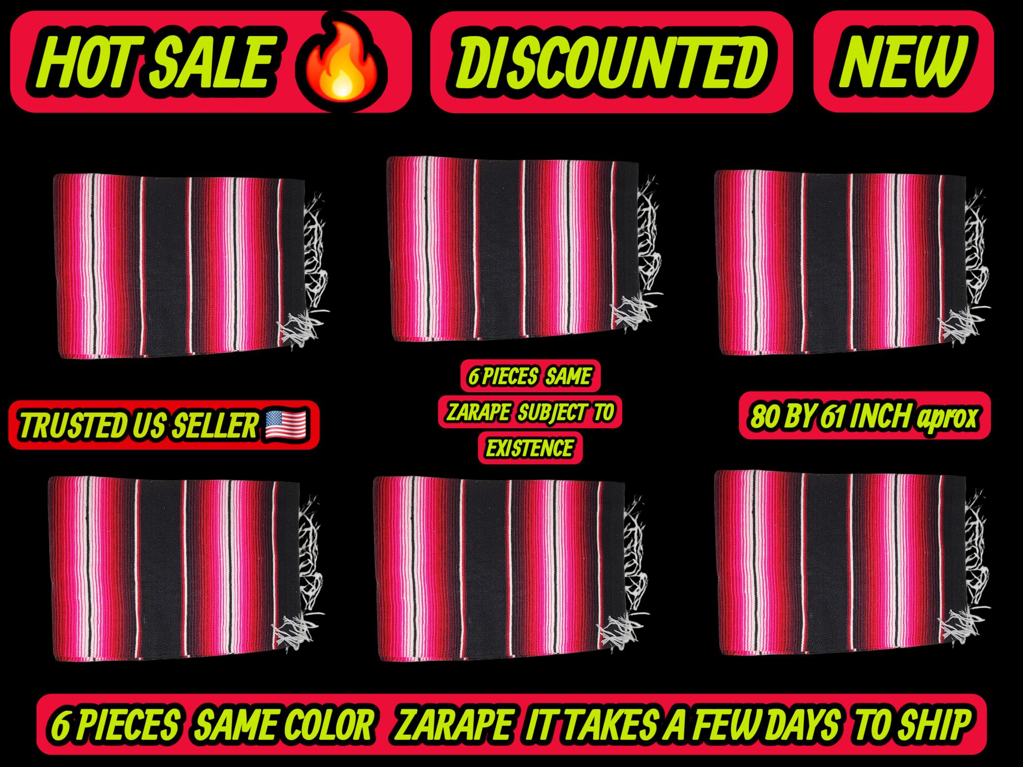Authentic Mexican zarape blanket 80x60, mexican decor ,table runner, pink shades & black colors