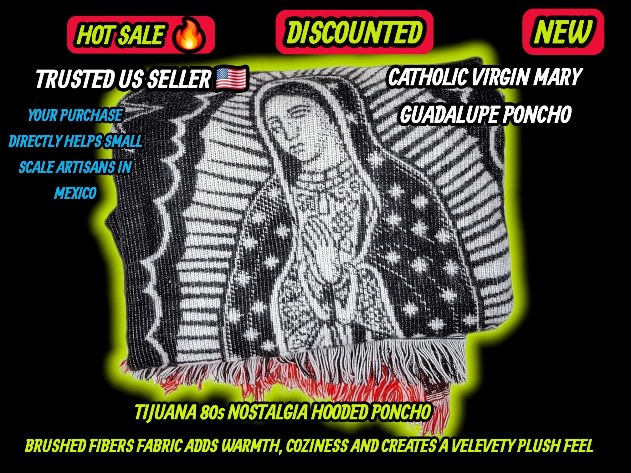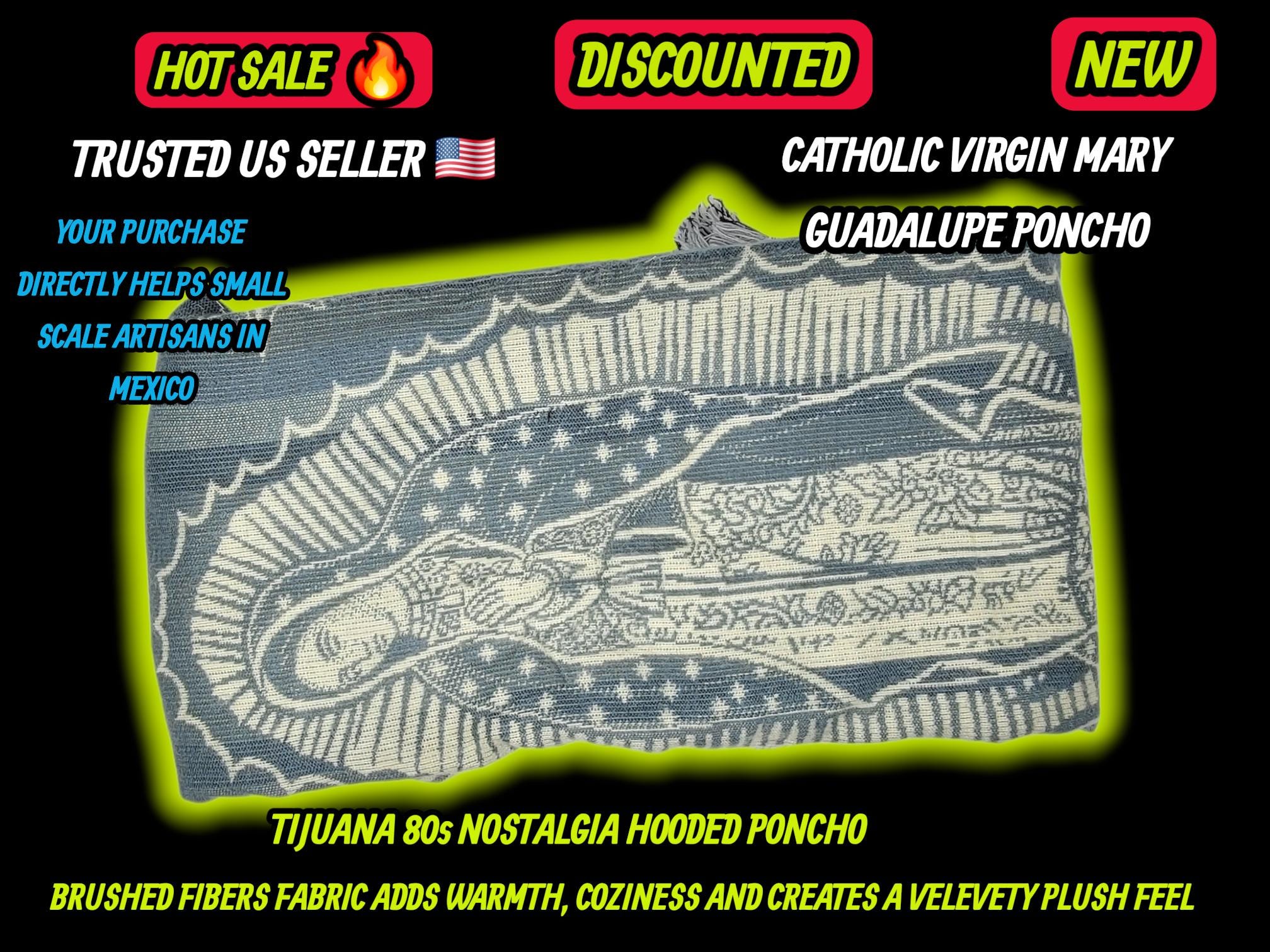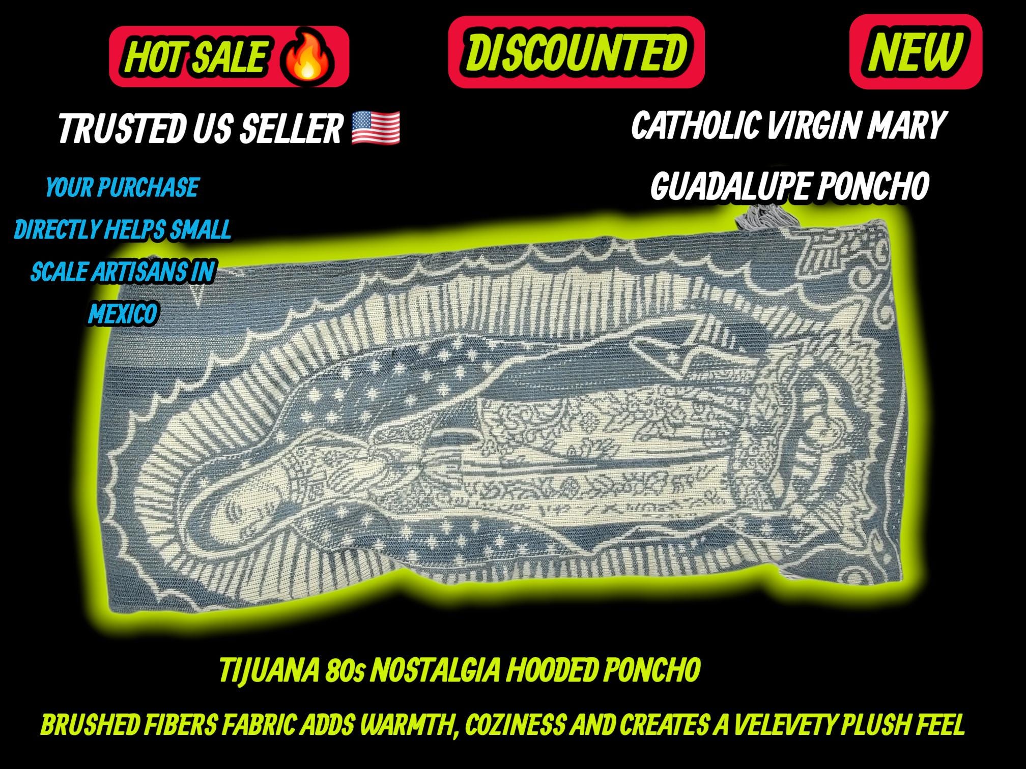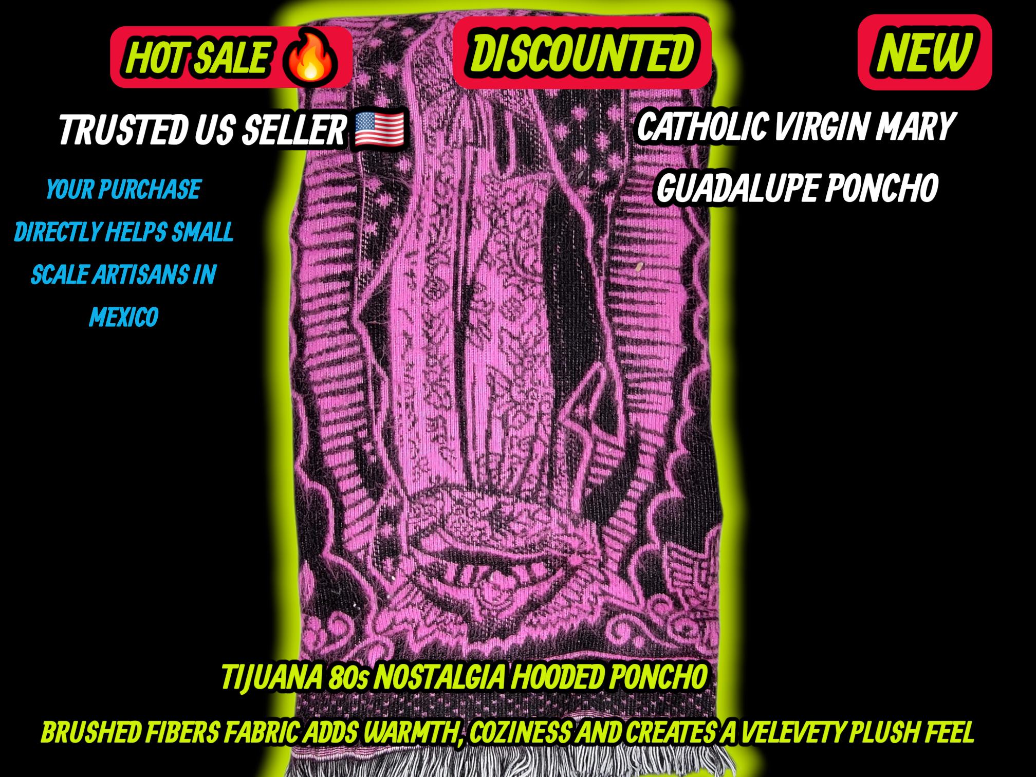 Authentic 1980s Style Tijuana Poncho – Virgin Guadalupe US SELLER