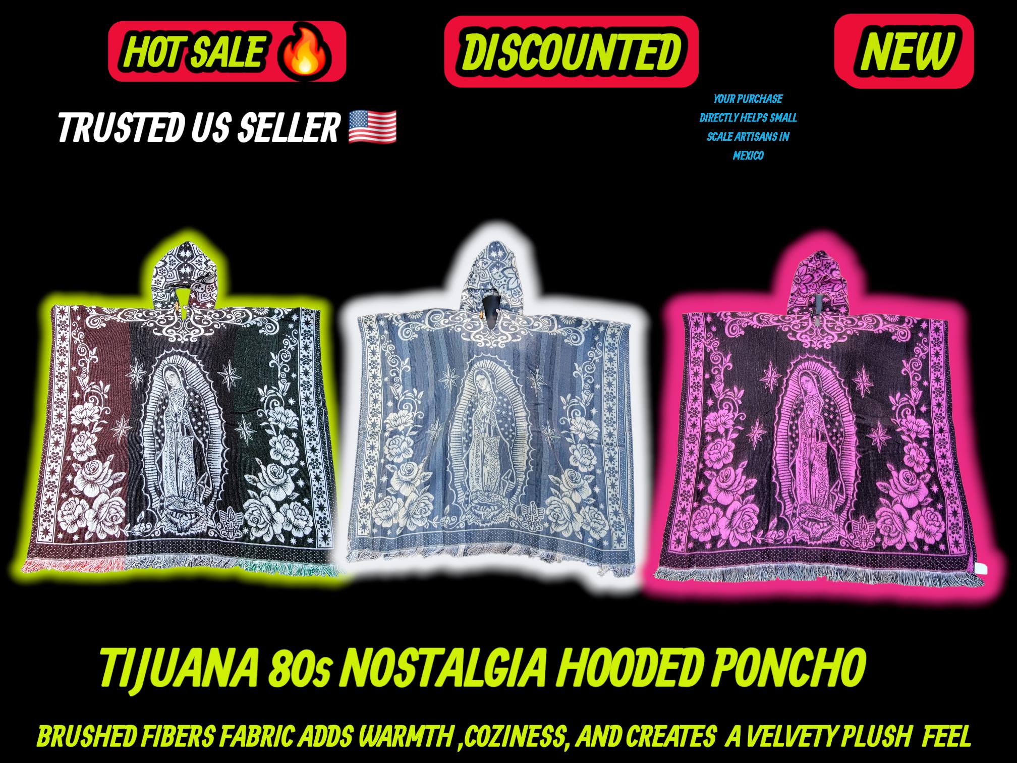 Rediscover the soul of the 1980s with this authentic, rustic hooded poncho. A true throwback to the classic Tijuana travel era, this piece captures the spirit of the road and the depth of Mexican devotion.