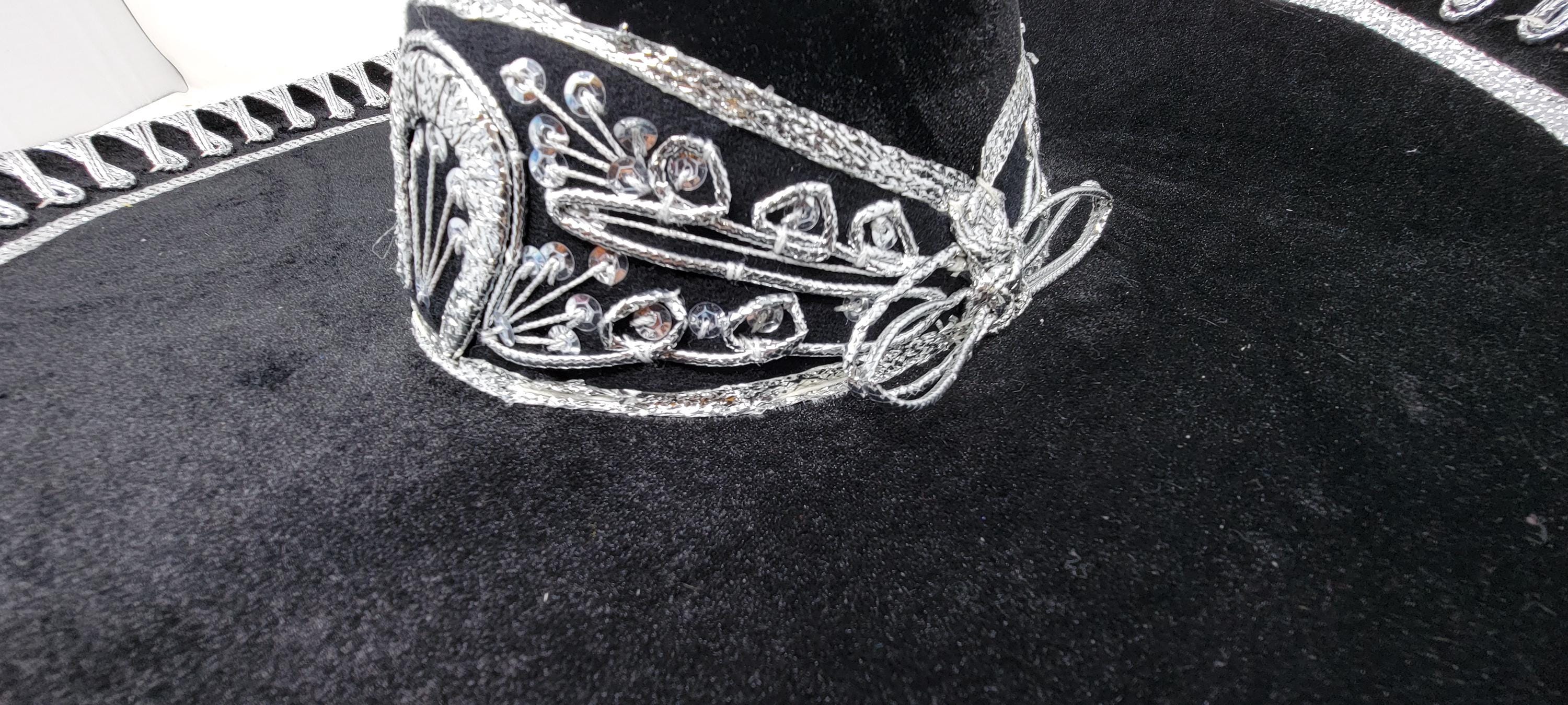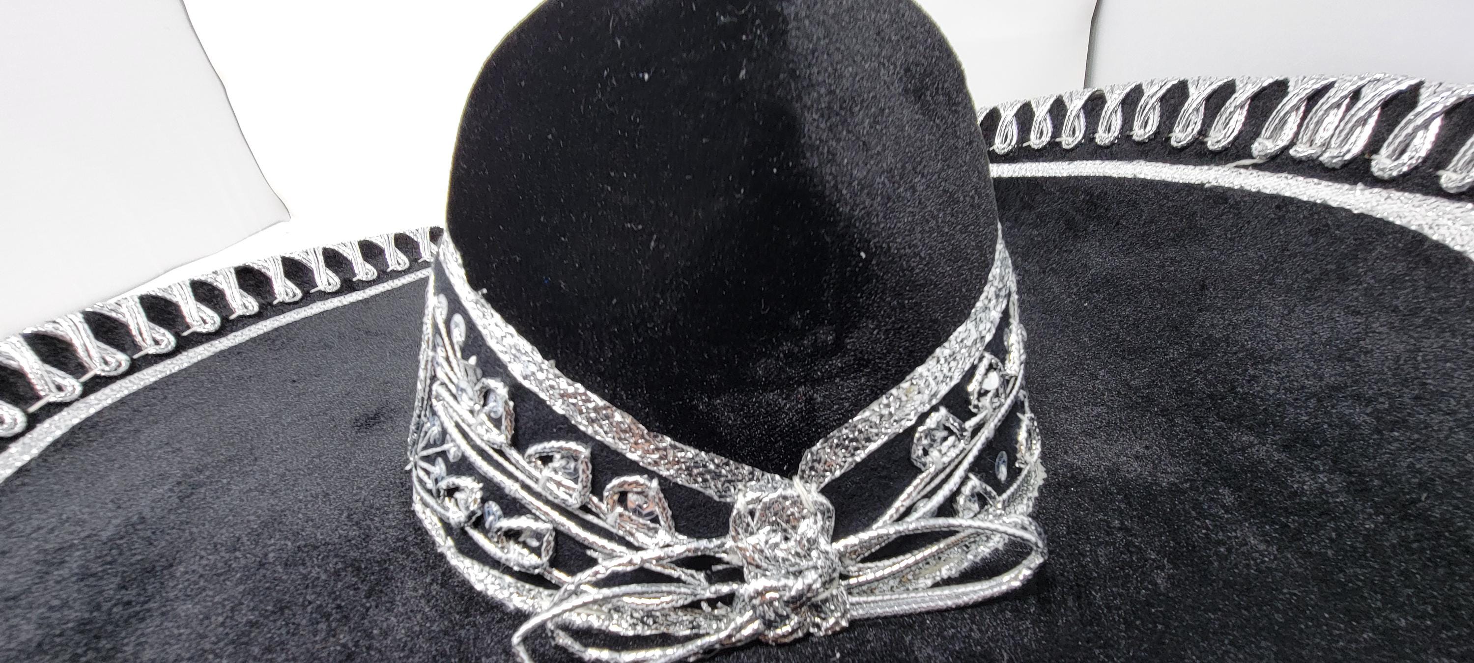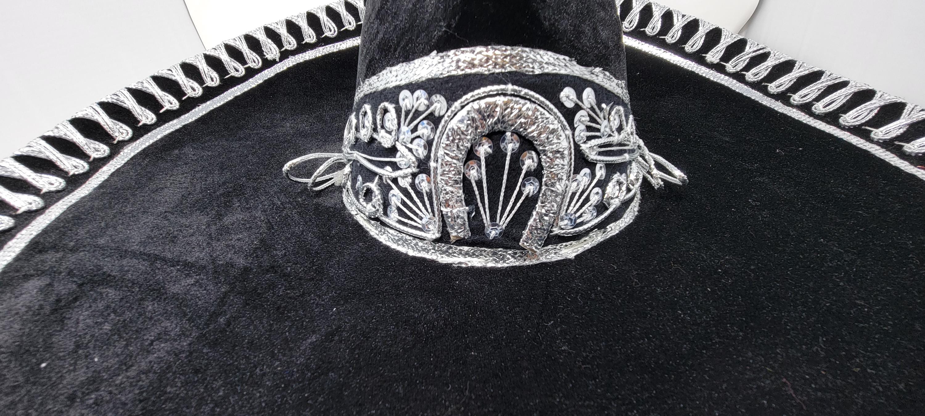 black and silver adults mexican fiesta charro sombrero mariachi hat