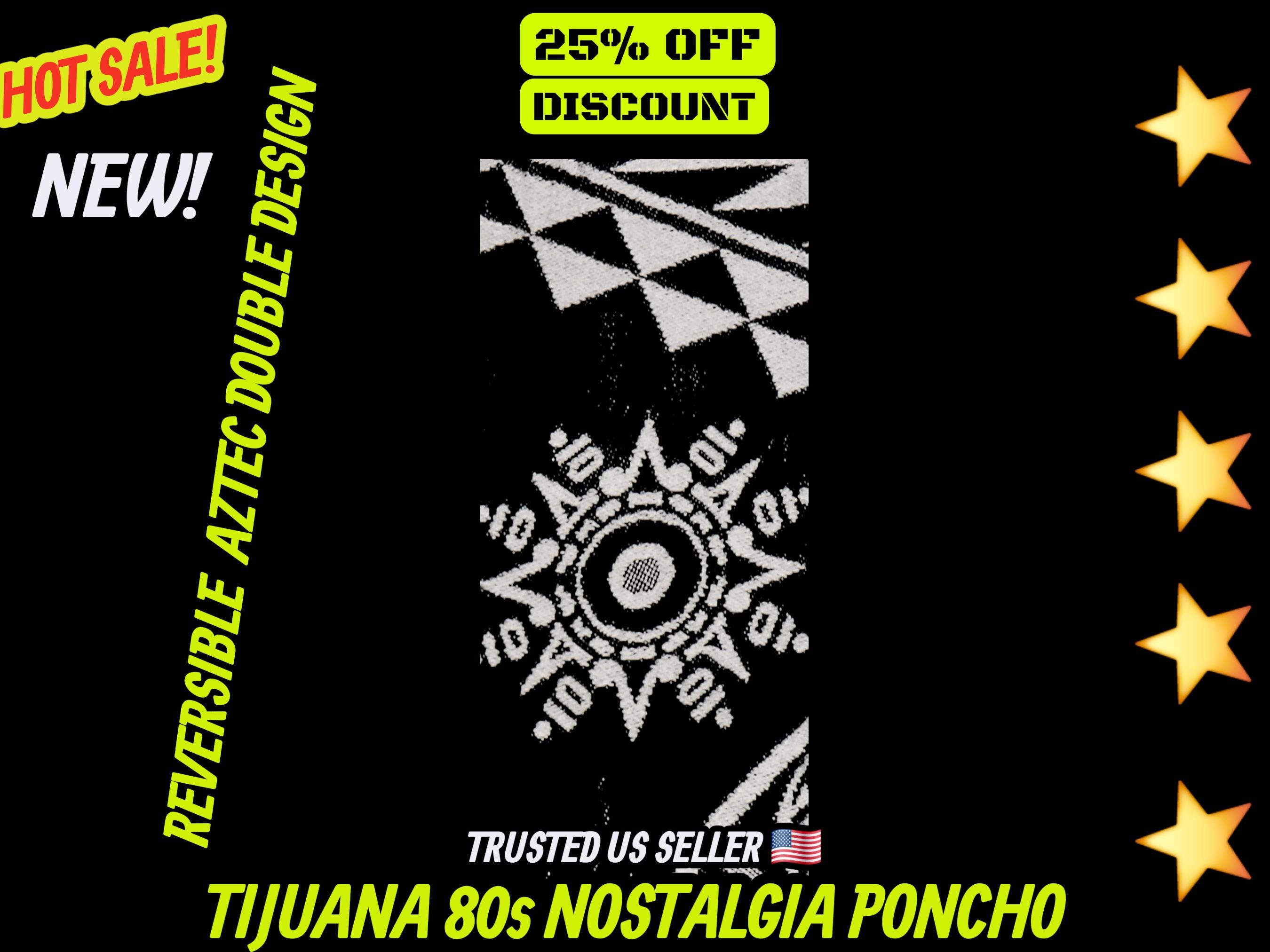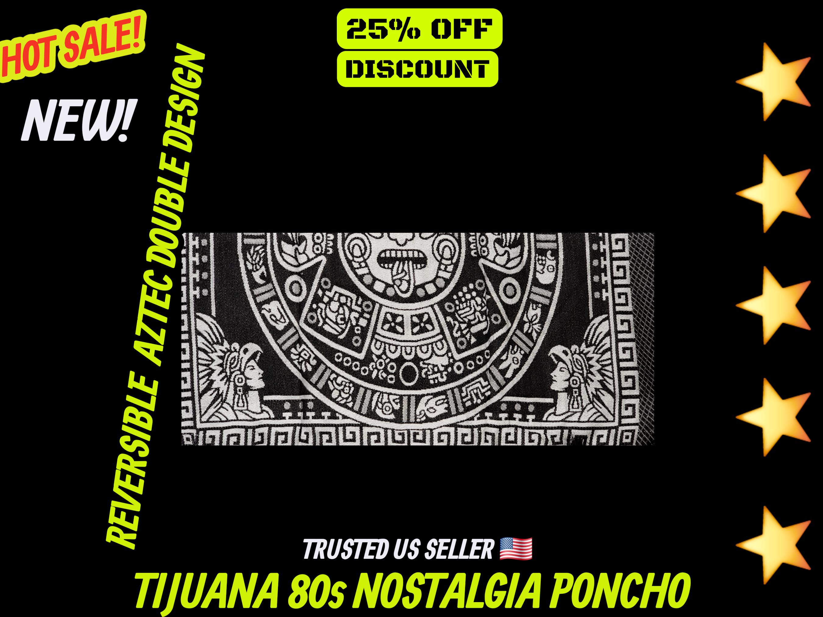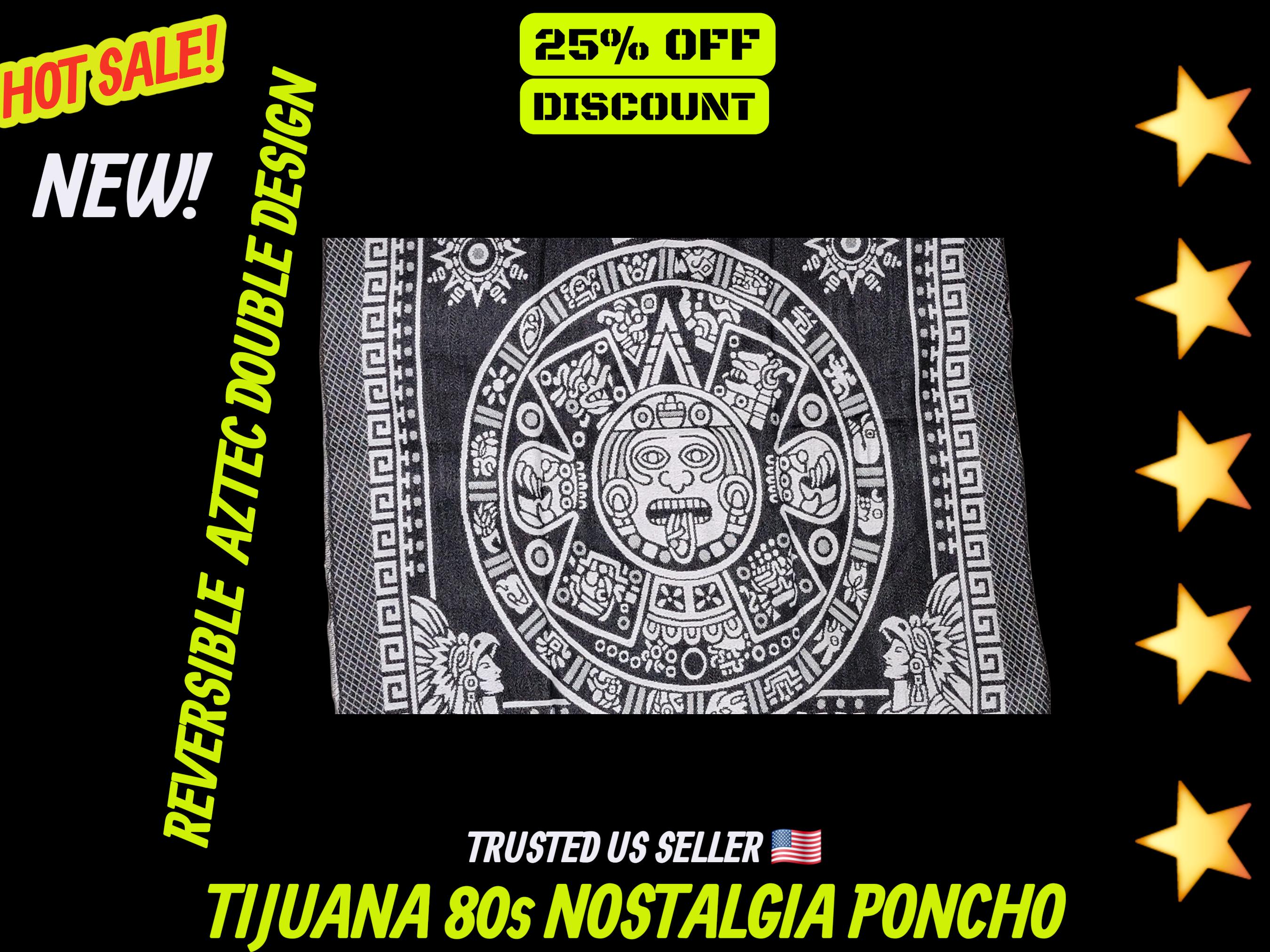 beige AND BLACK Reversible aztec calendar hand woven poncho with fringes