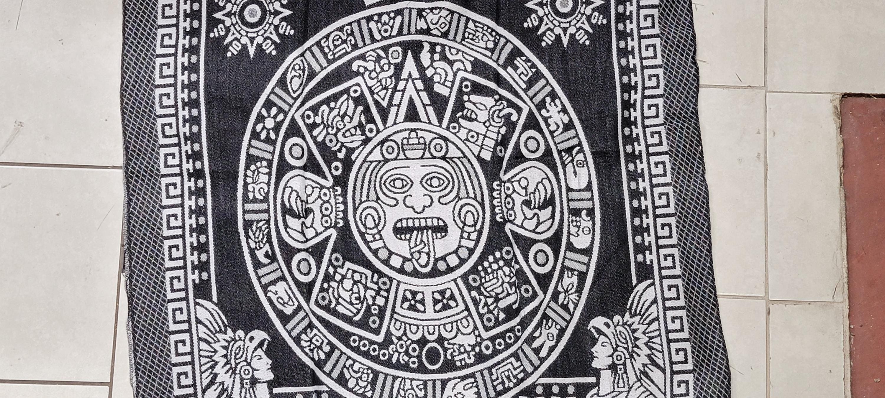 with aztec calendar design and reversible its a perfect layer not too thick and not too thin ,great for bonfire beaches