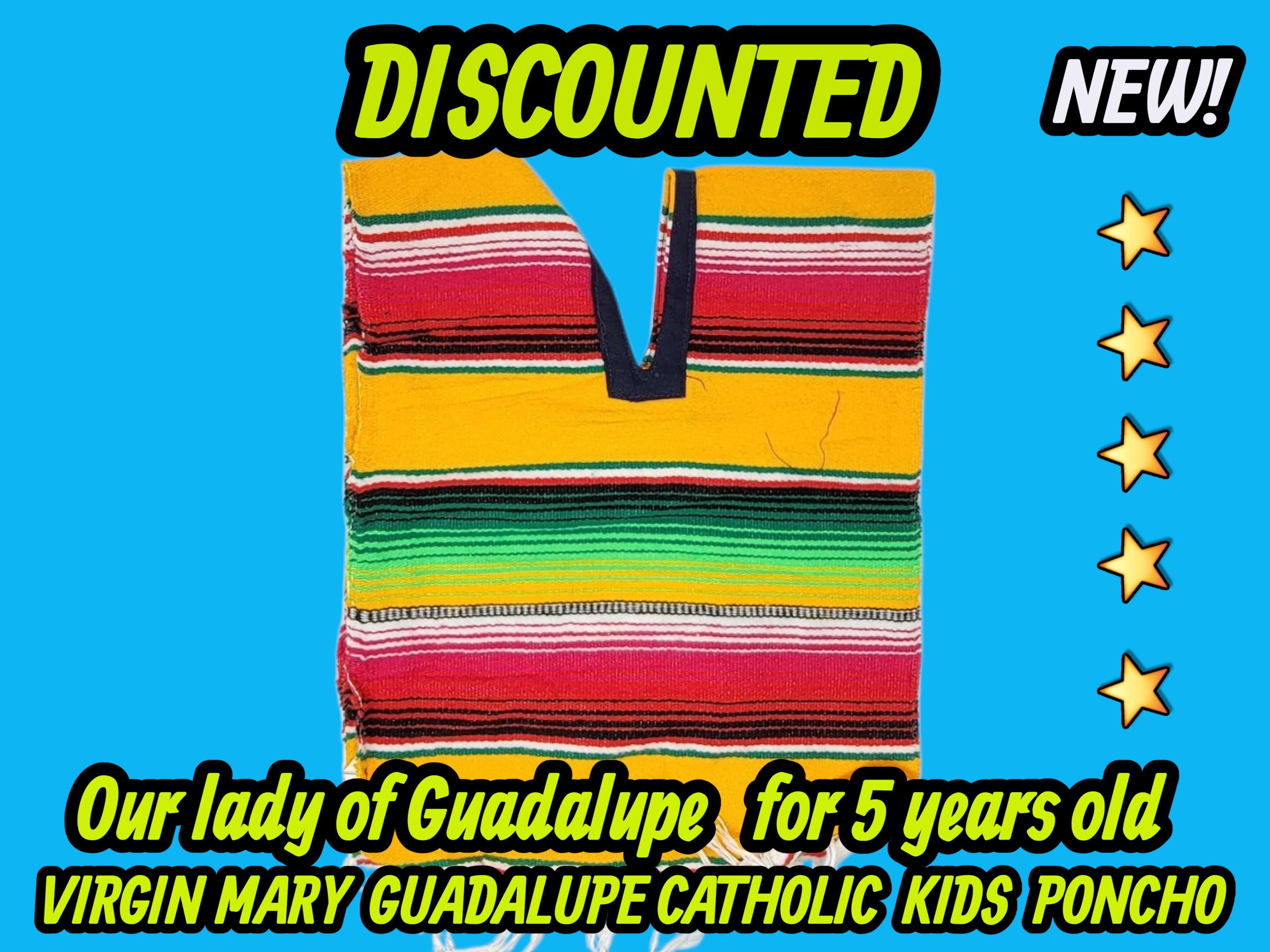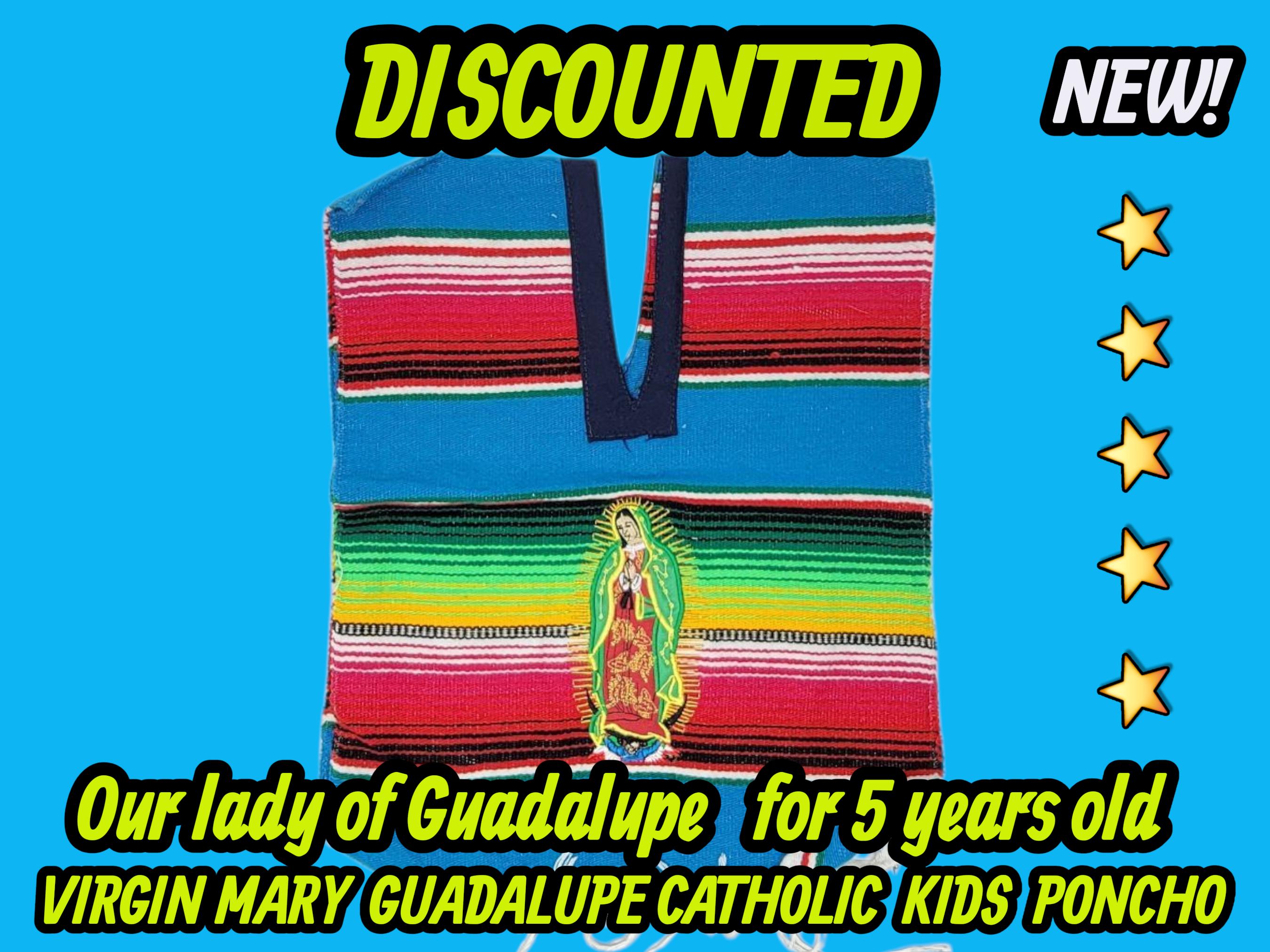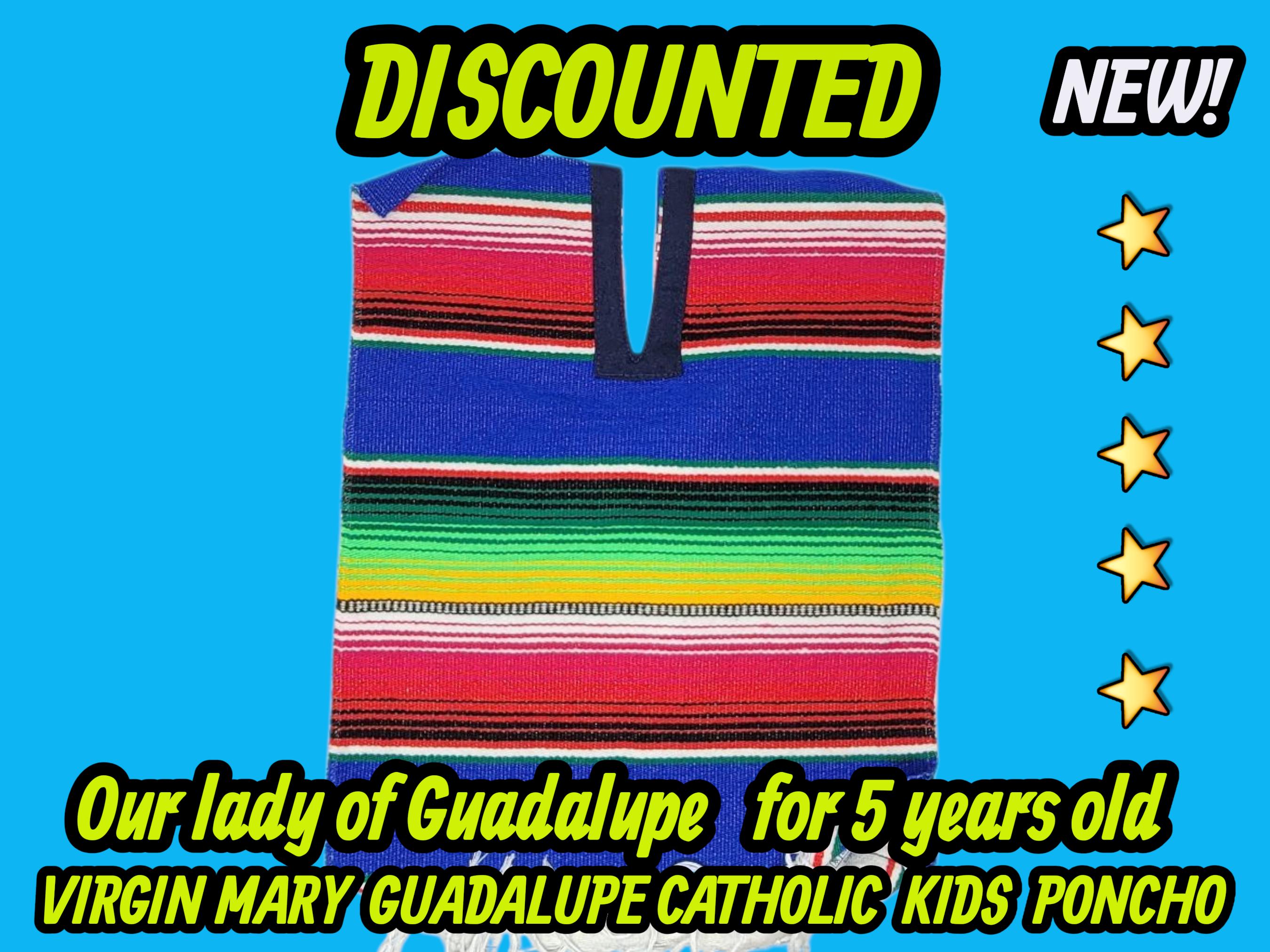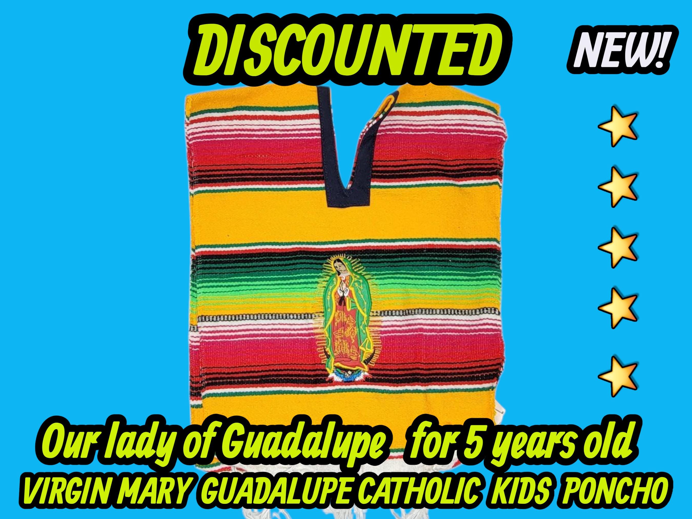 Buy this peasant poncho for kids with virgin of Guadalupe embroidery pattern with fringes