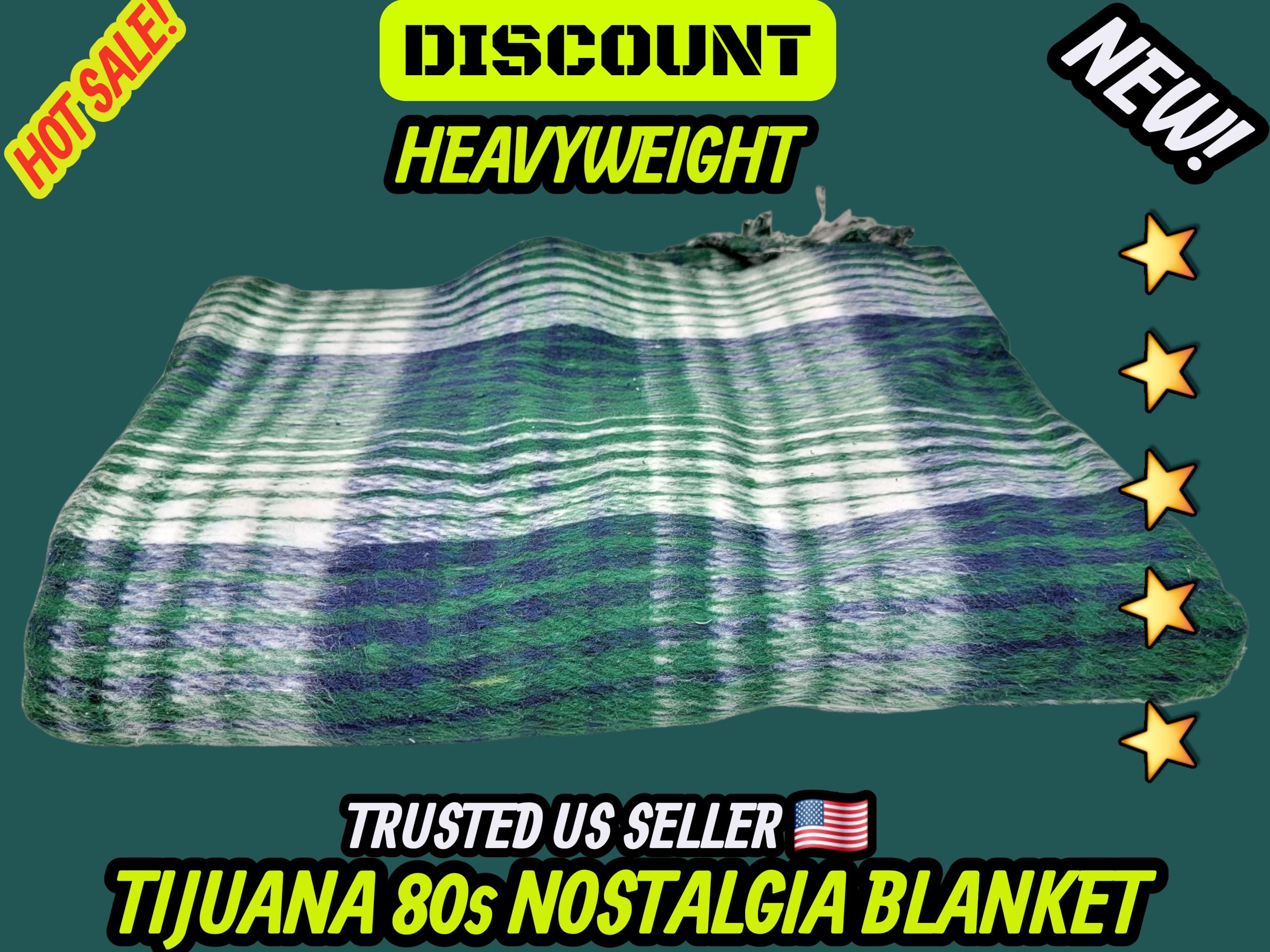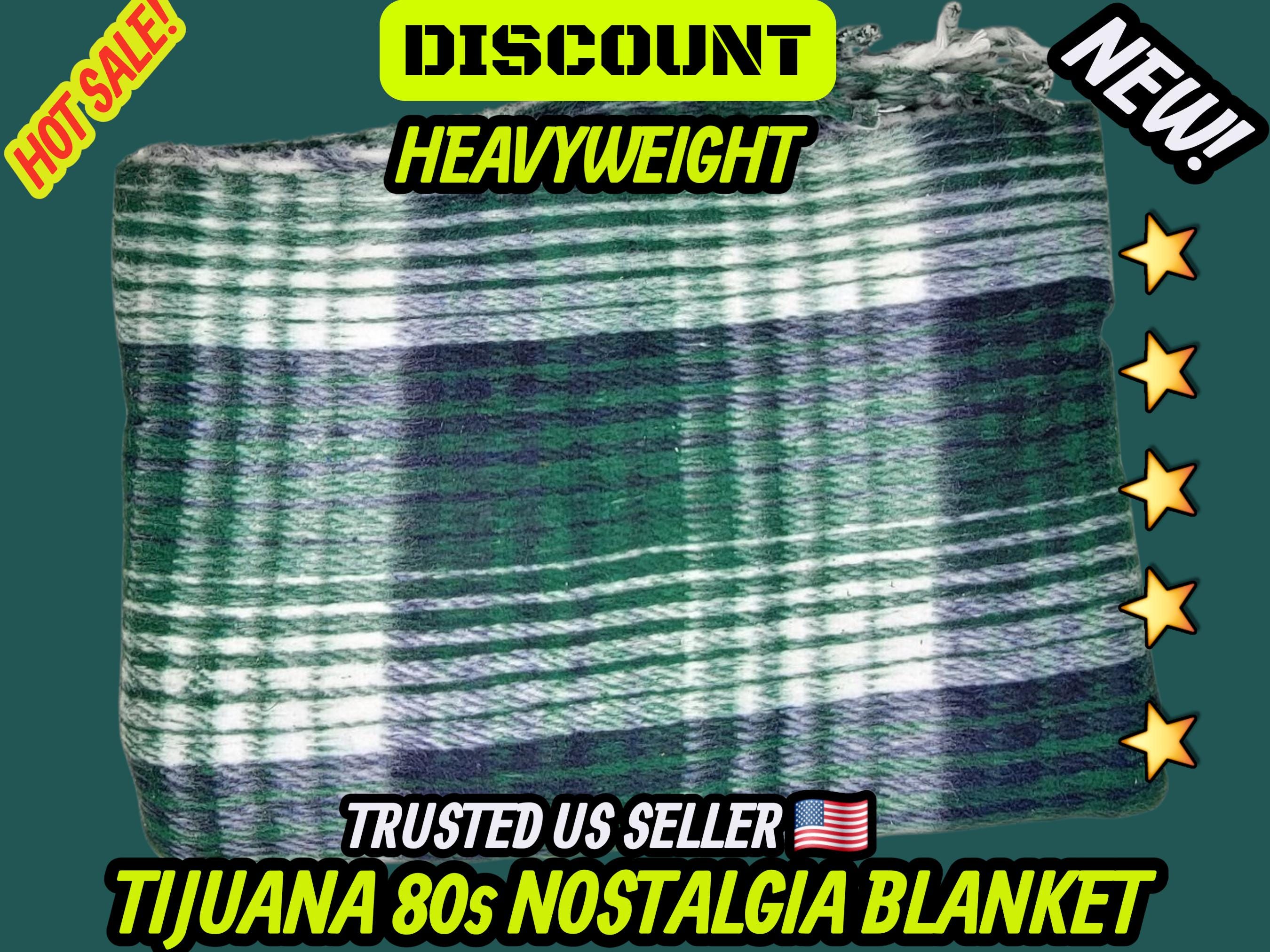 Green Plaid Mexican Blanket: Heavy Reversible Recycled Fiber Manta