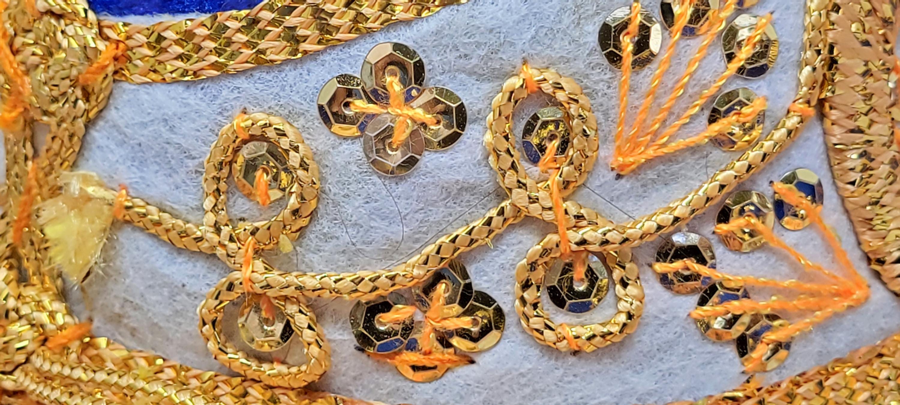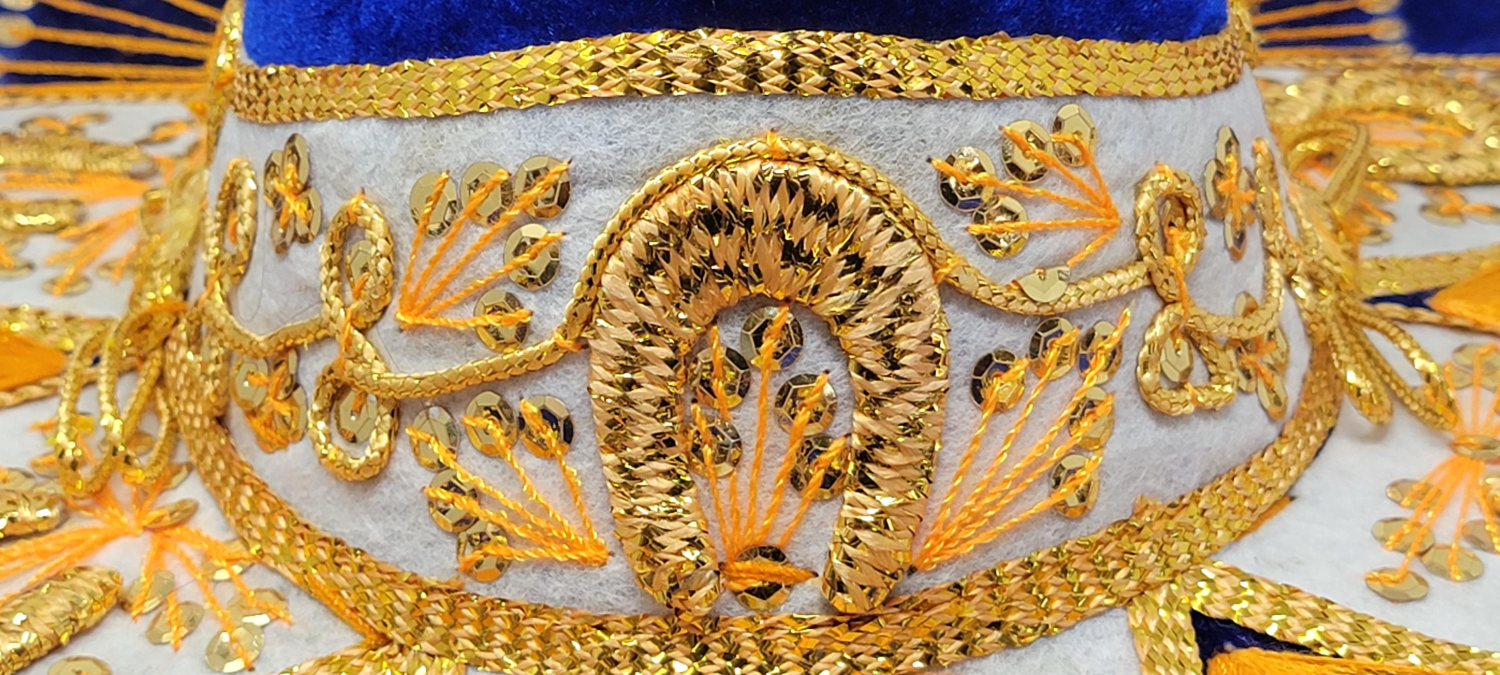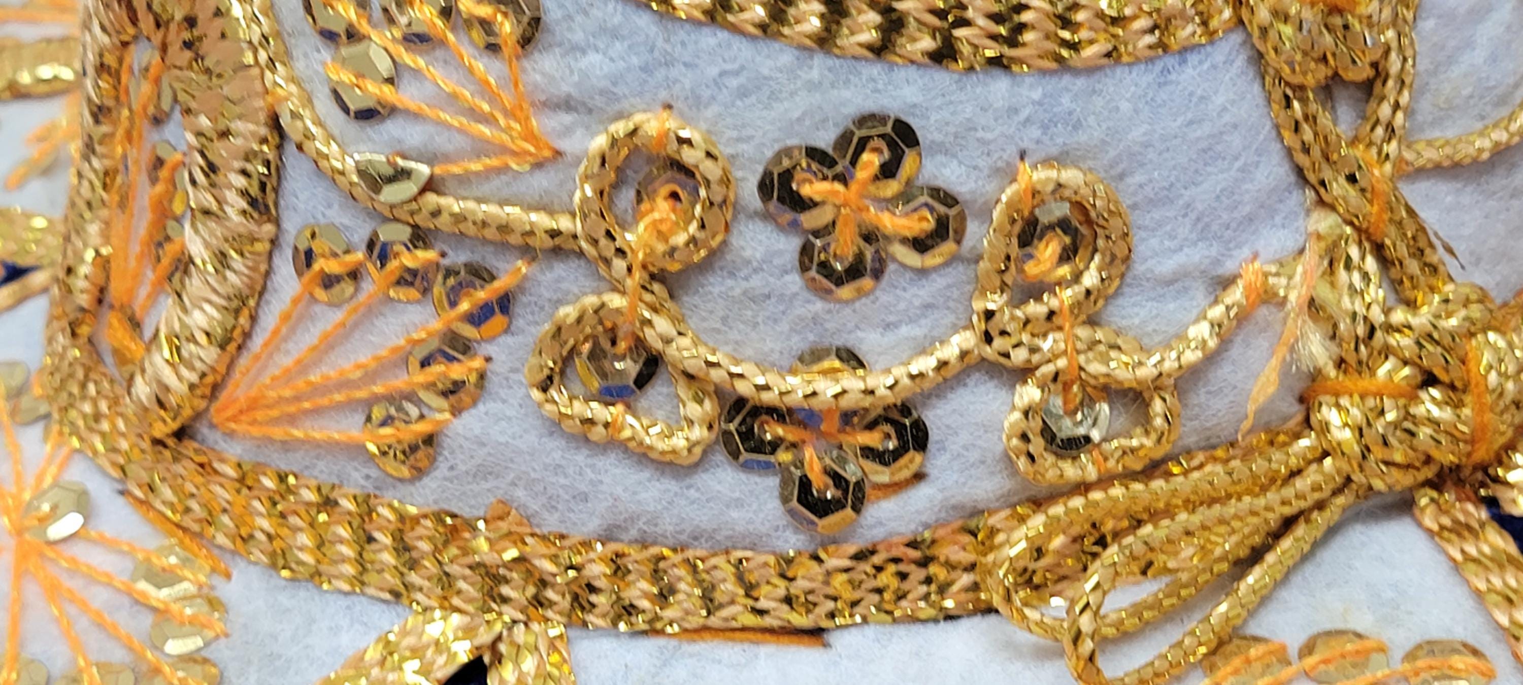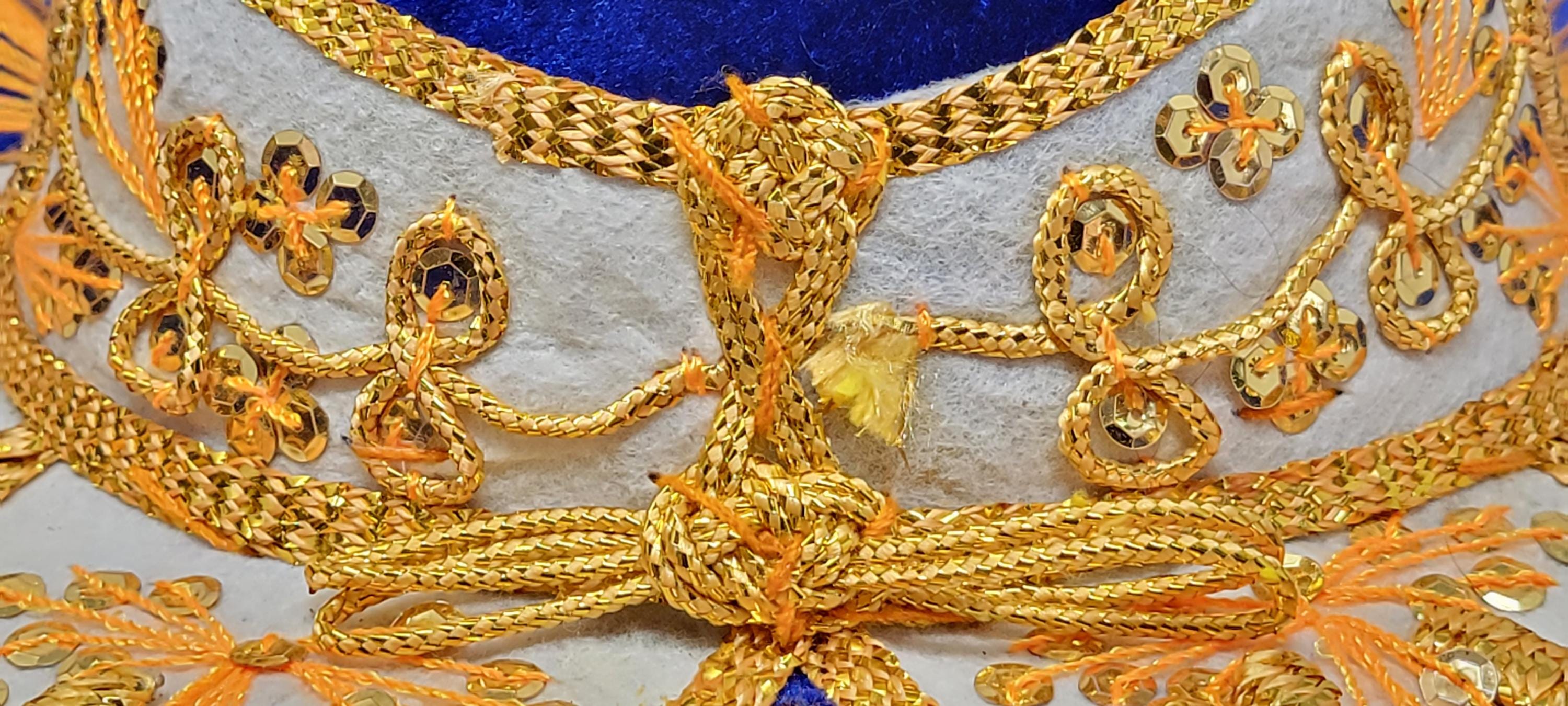 The sombrero is finished with a touch of golden trim, adding a touch of sparkle and luxury. The overall effect is a stunning piece that is both stylish and authentic.