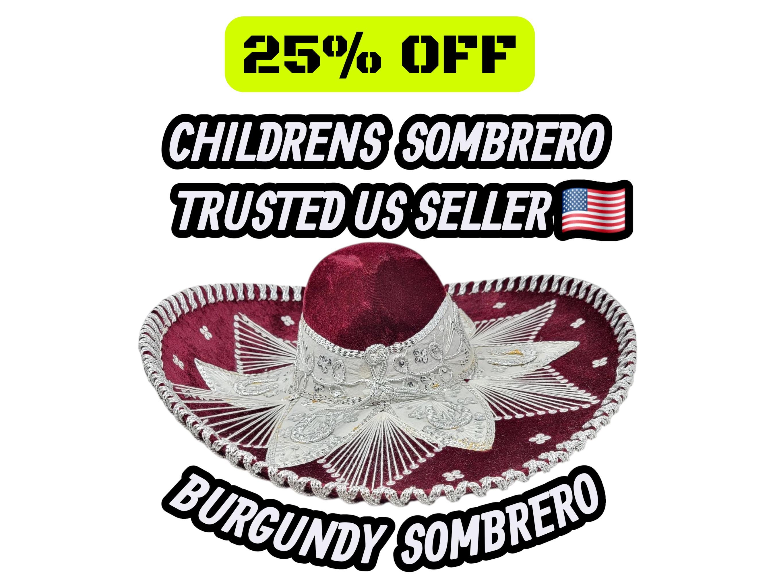 Burgundy Charro Sombrero: Adult Mexican Fiesta Hat with Silver Trim