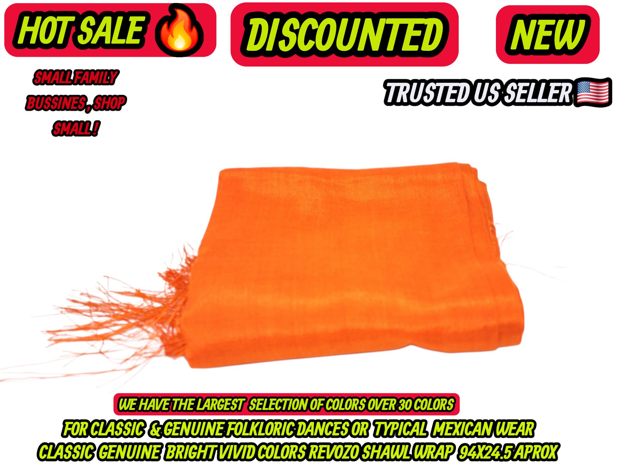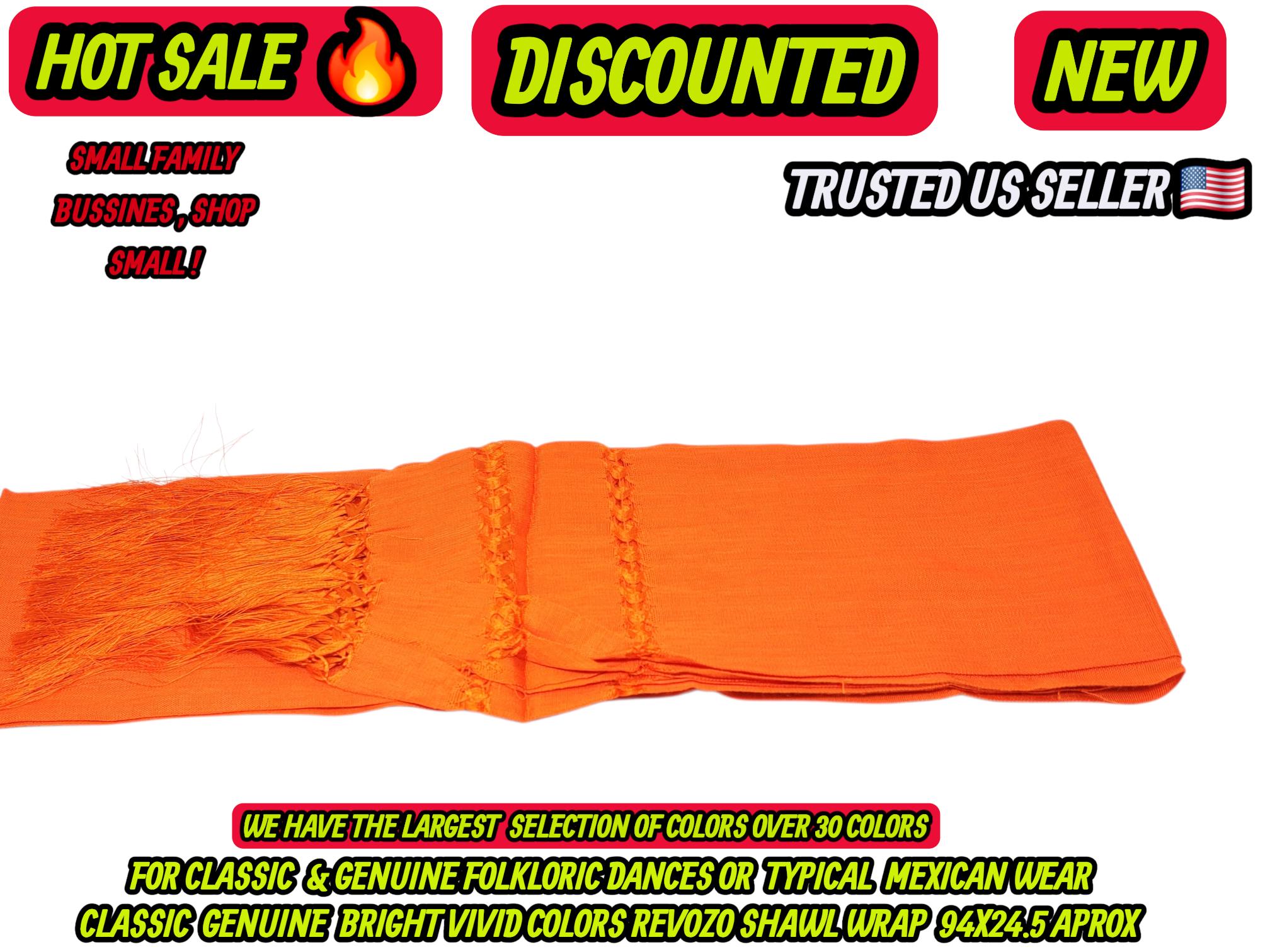 Orange Mexican Rebozo Shawl: Artisela Silk Fringed Scarf (94" x 24.5")