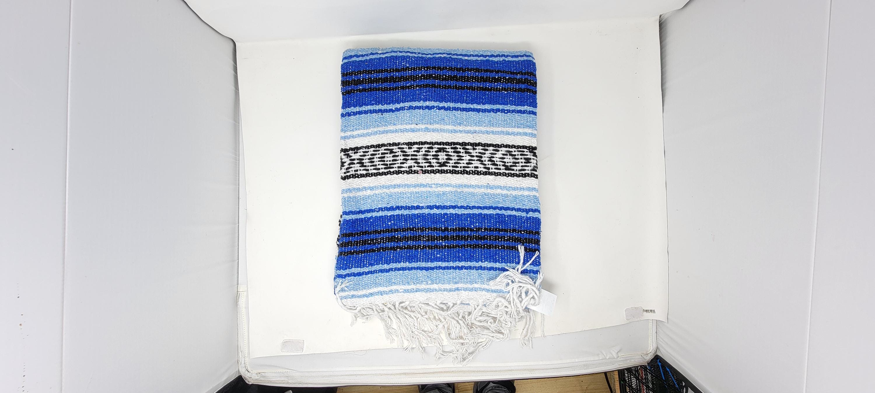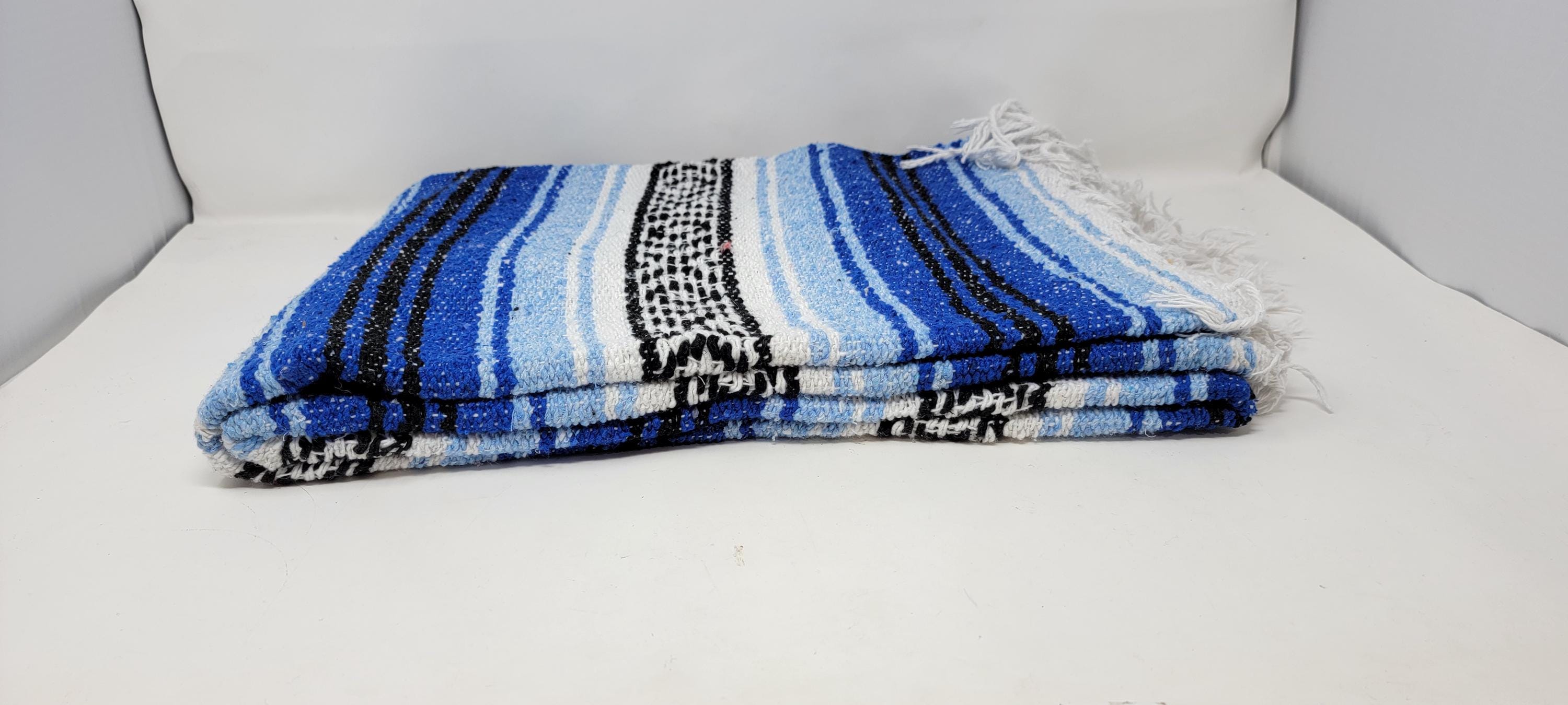 gorgeous blue tones colors blanket made in mexico by hand , the most popular mexican blanket in the market , super cozy , super soft ,