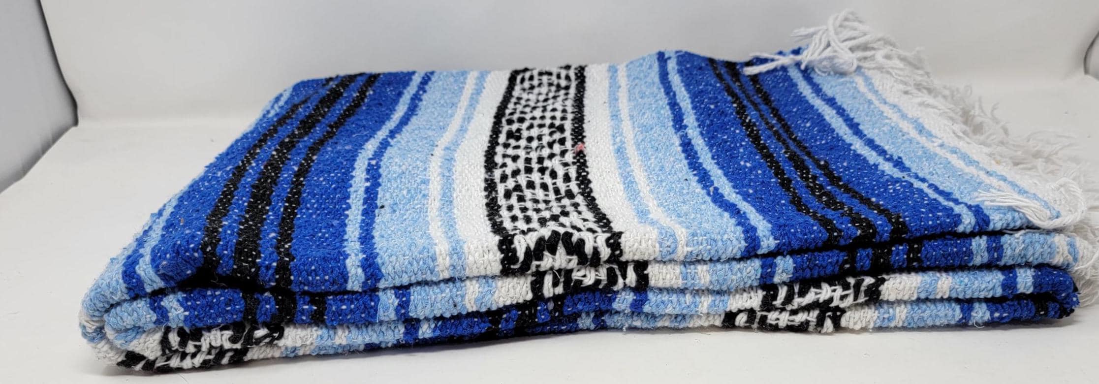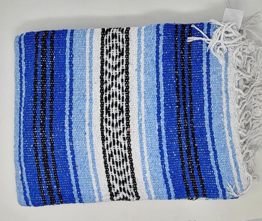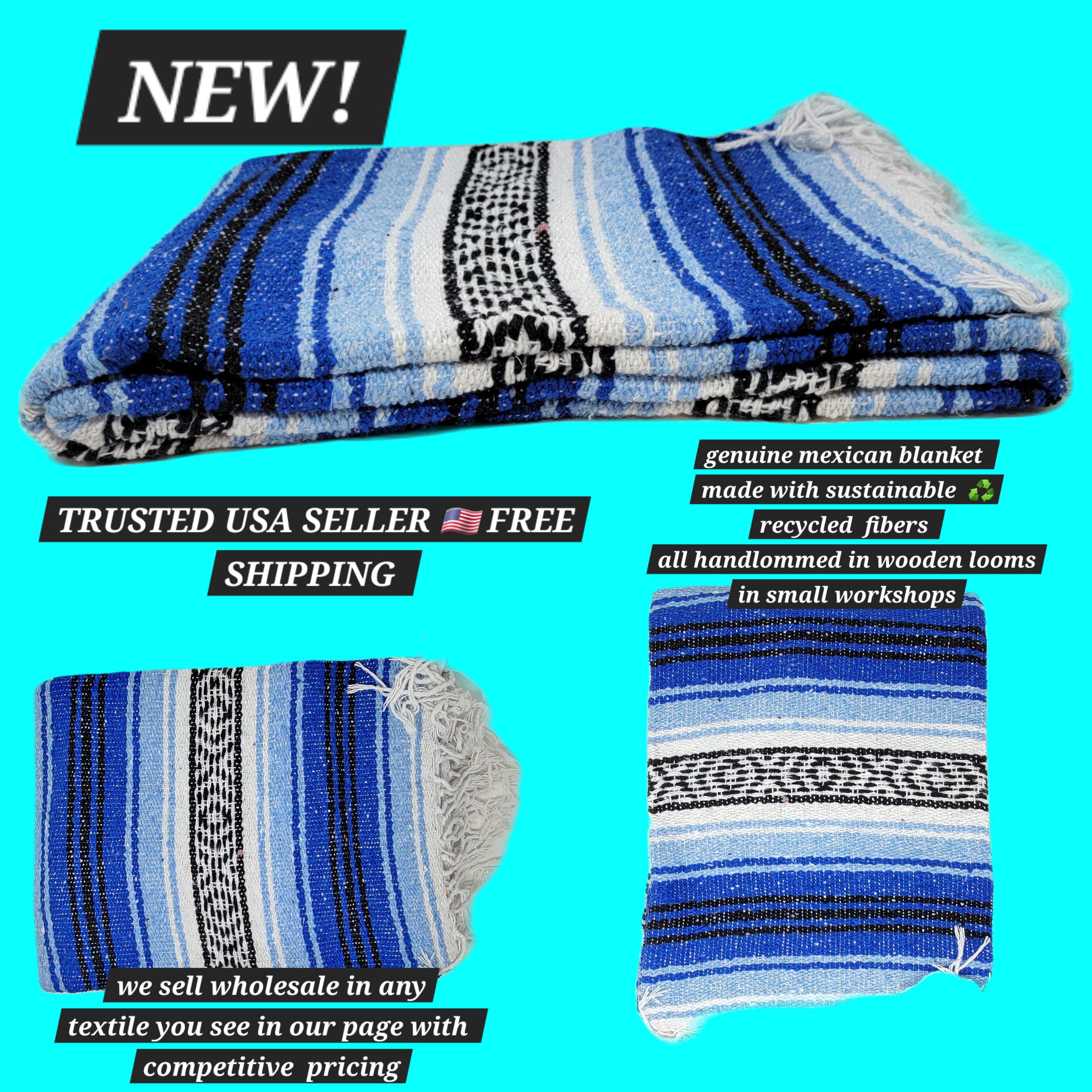 gorgeous blue tones colors blanket made in mexico by hand , the most popular mexican blanket in the market , super cozy , super soft ,